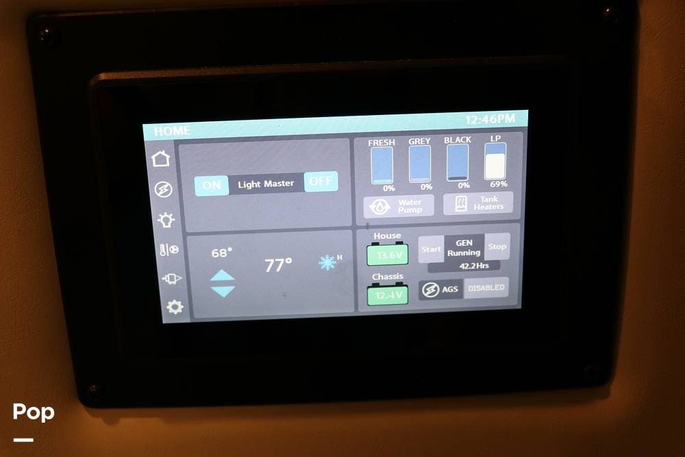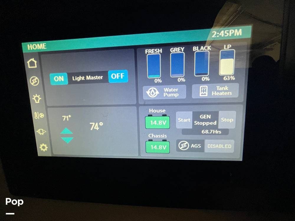 This RV is equipped with a Solar system that keeps the battery charged, and it also charges the battery when driving down the road. The 3200-watt Diesel Generator also has an auto-start feature that allows you to program when you want the generator to come on during the day or night.