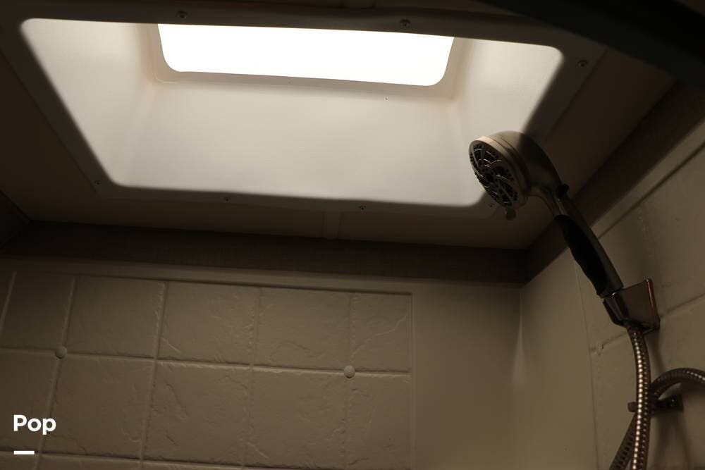 The rear bathroom has a large 24-in x 36-in shower with a large skylight overhead for lots of natural light in the bathroom - the sink with a large medicine cabinet overhead and additional storage below is to the left of the toilet. This unit has a tankless water heater - so you never have to worry about running out of hot water!