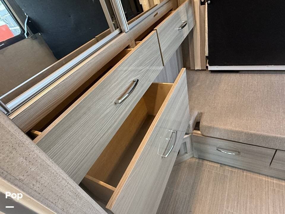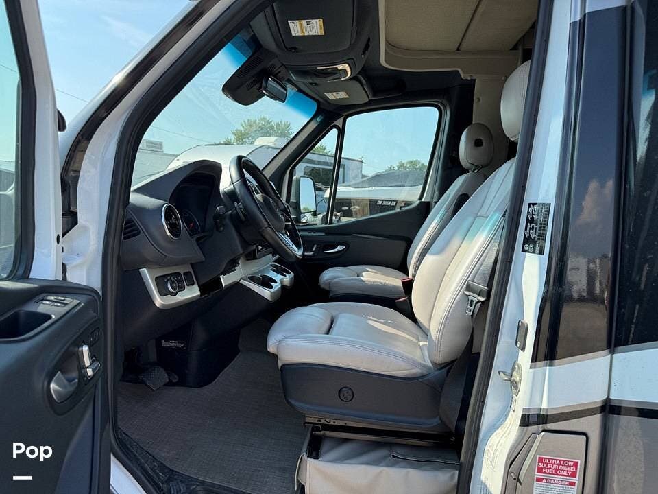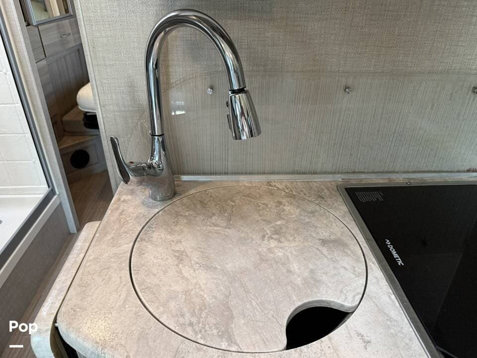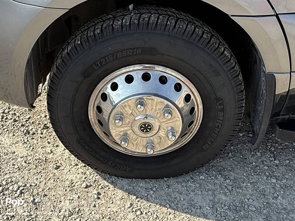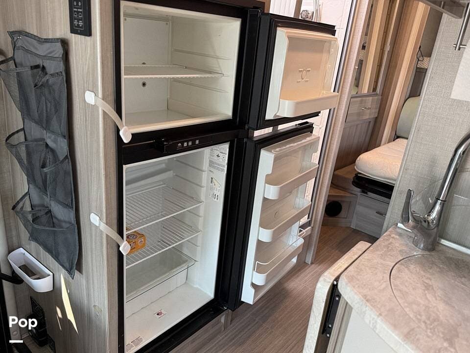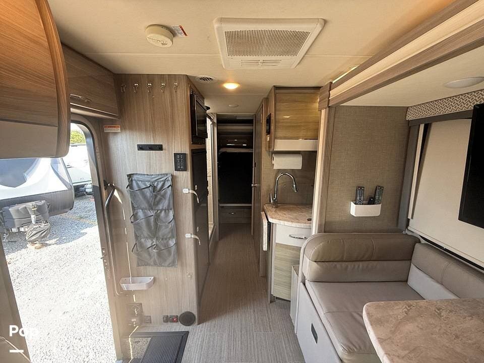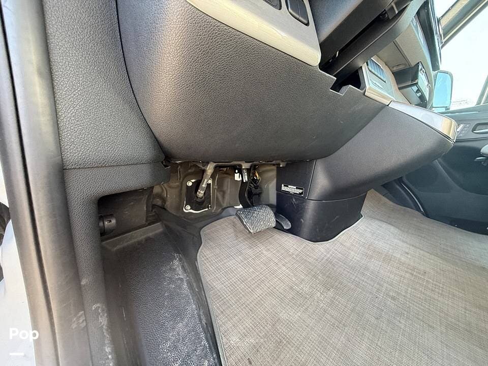 This RV features a 24.5-gallon fuel tank and advanced driving aids, including lane-keeping assist and a backup camera, with additional features such as adaptive cruise control and navigation available depending on the configuration.