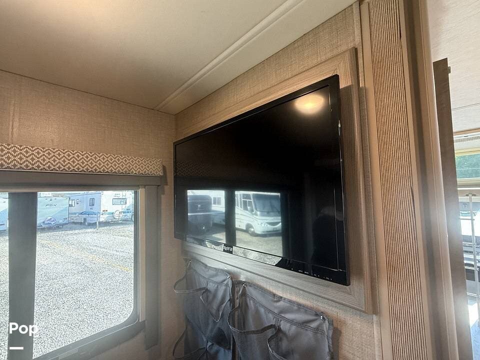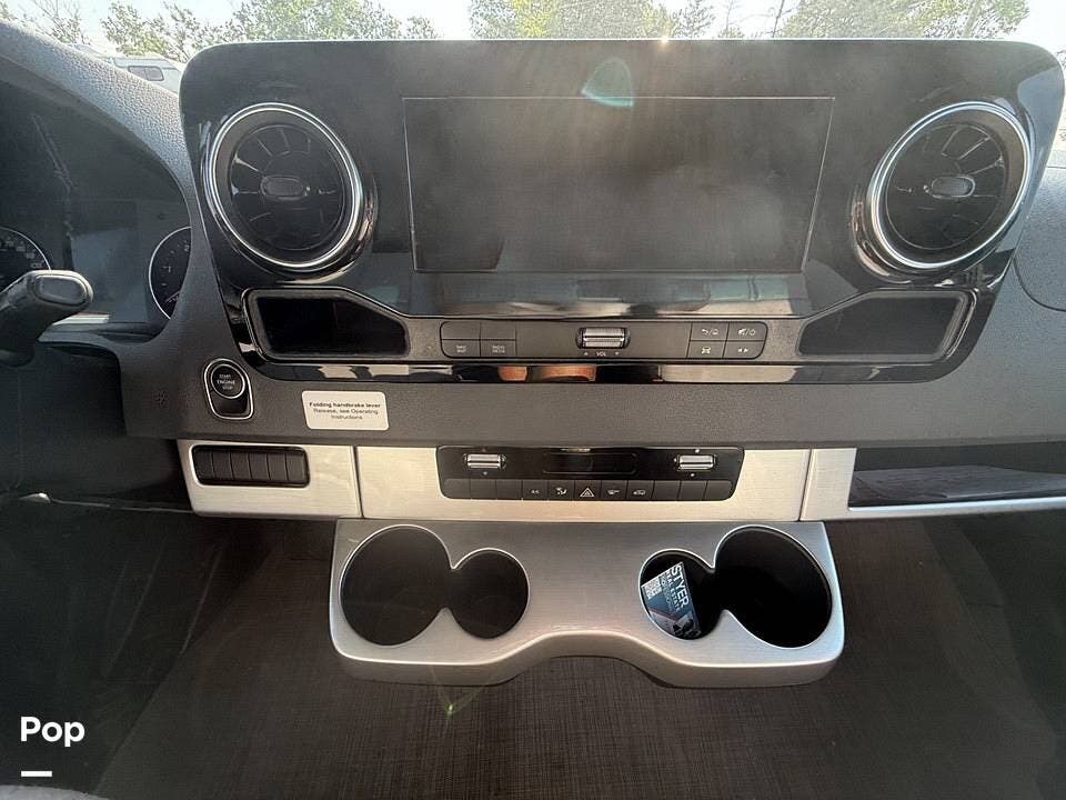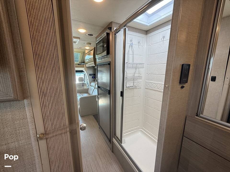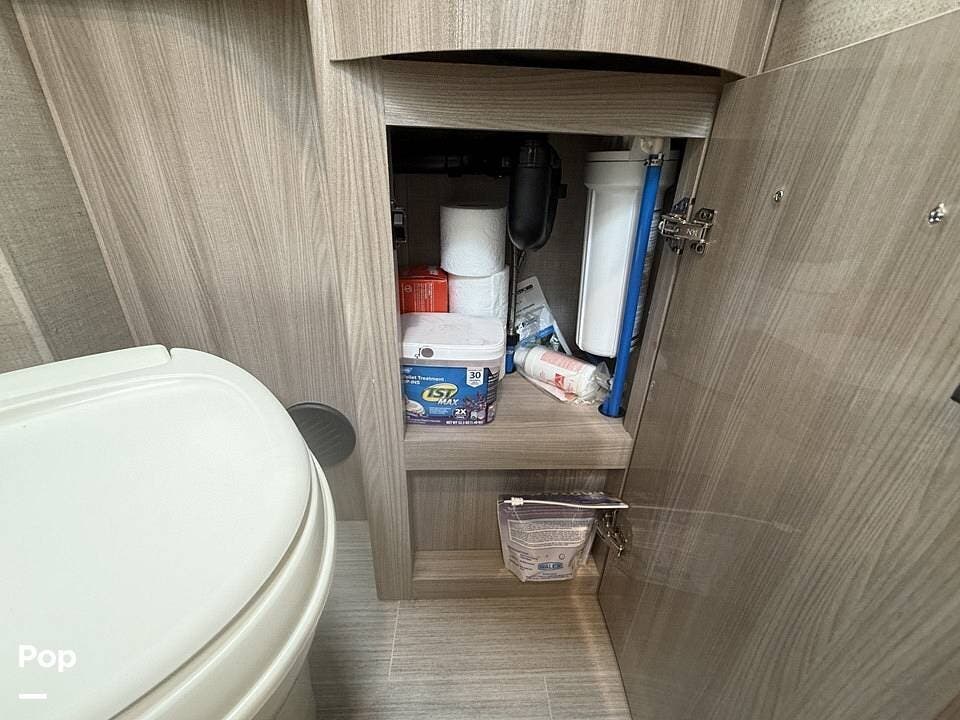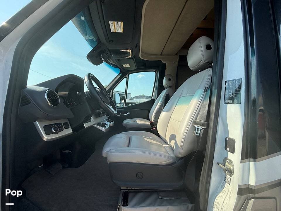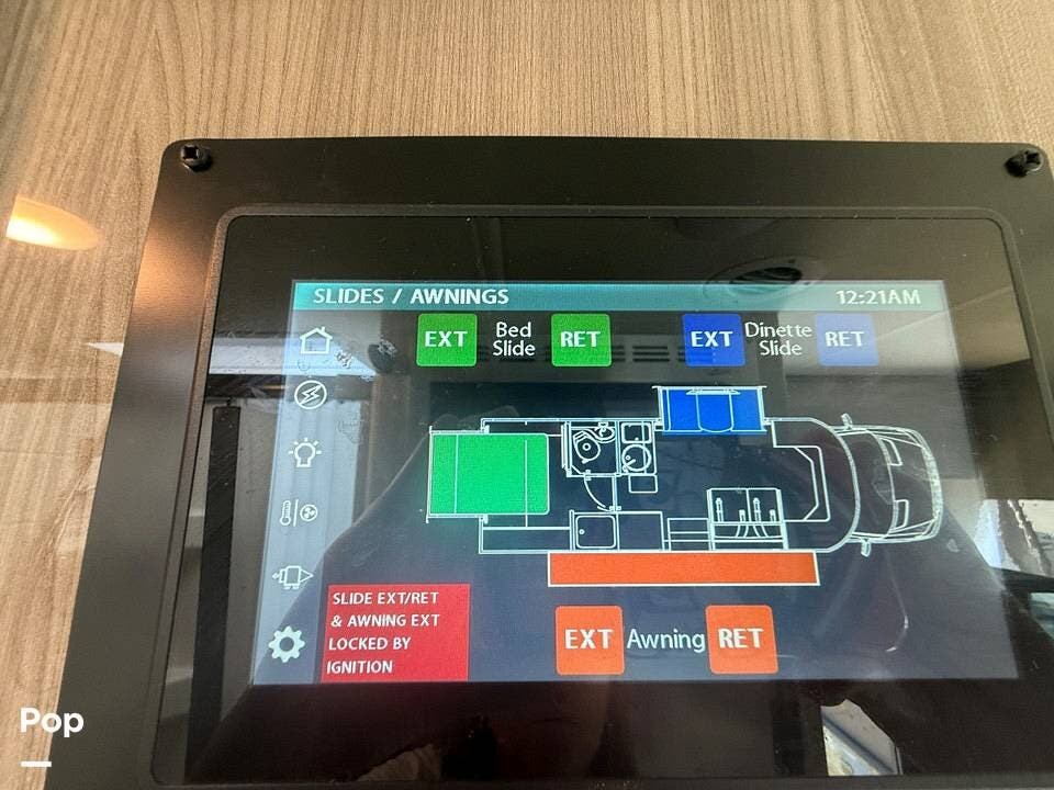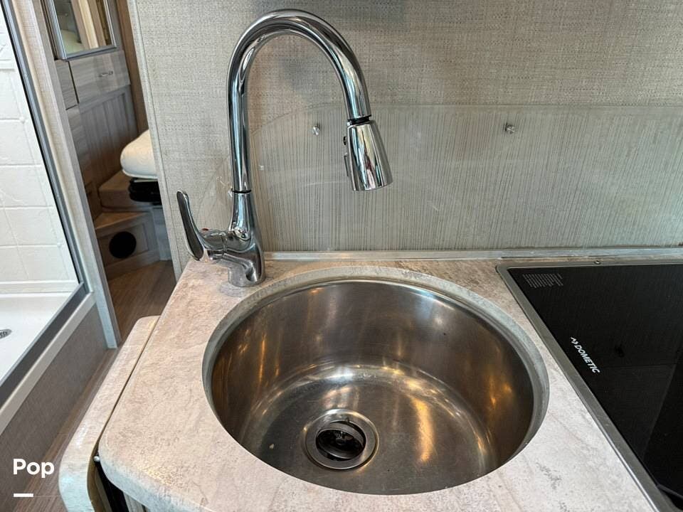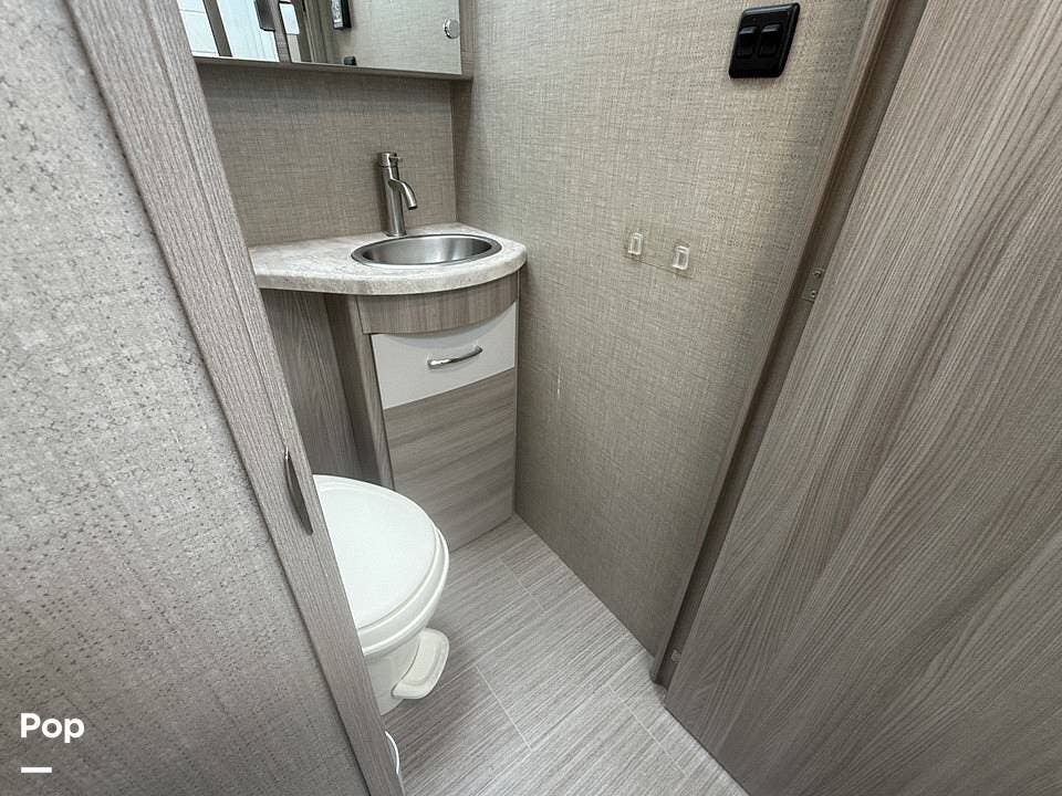 This RV features a 24.5-gallon fuel tank and advanced driving aids, including lane-keeping assist and a backup camera, with additional features such as adaptive cruise control and navigation available depending on the configuration.