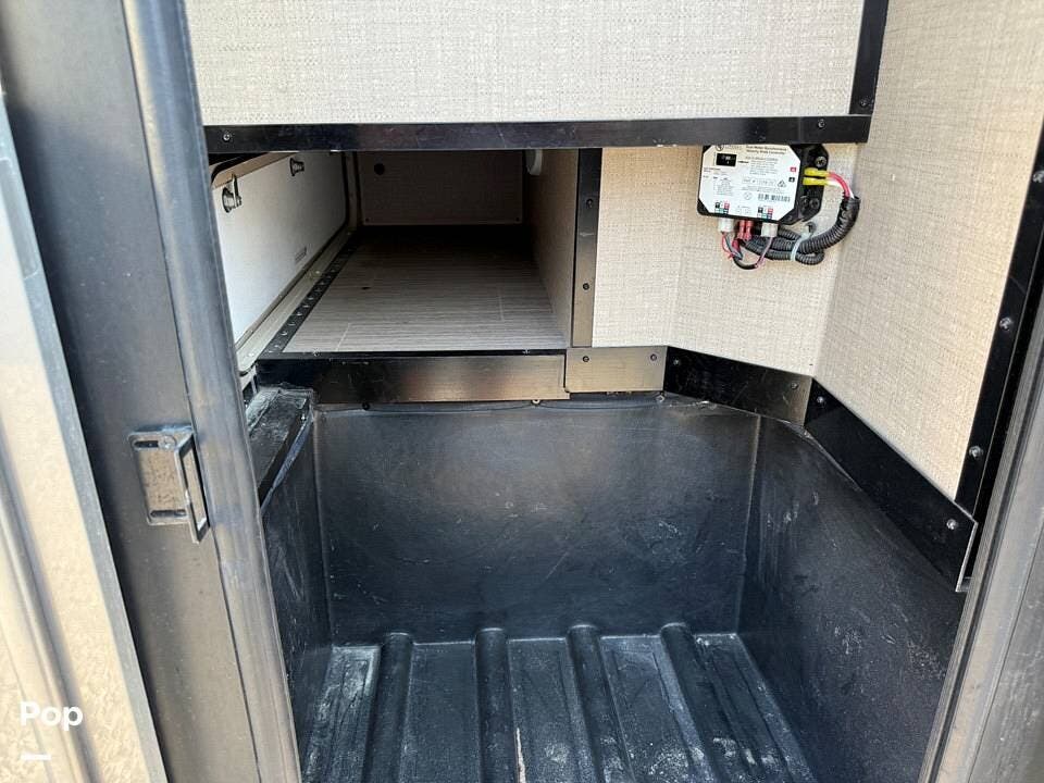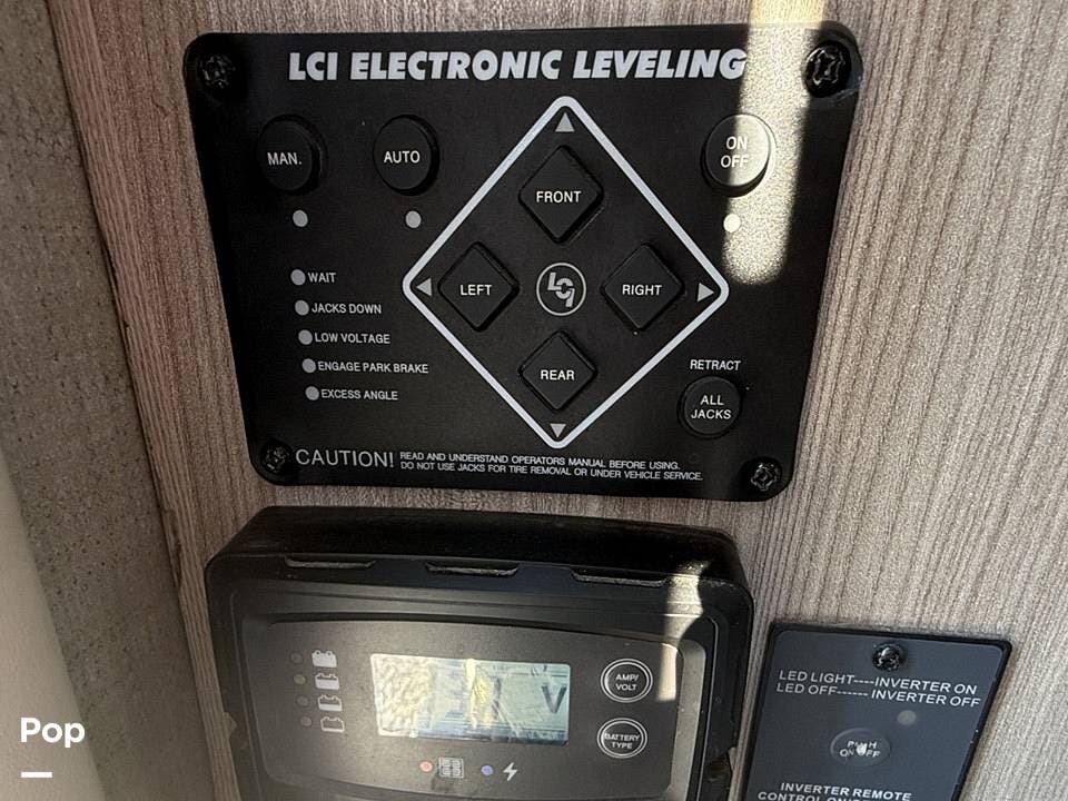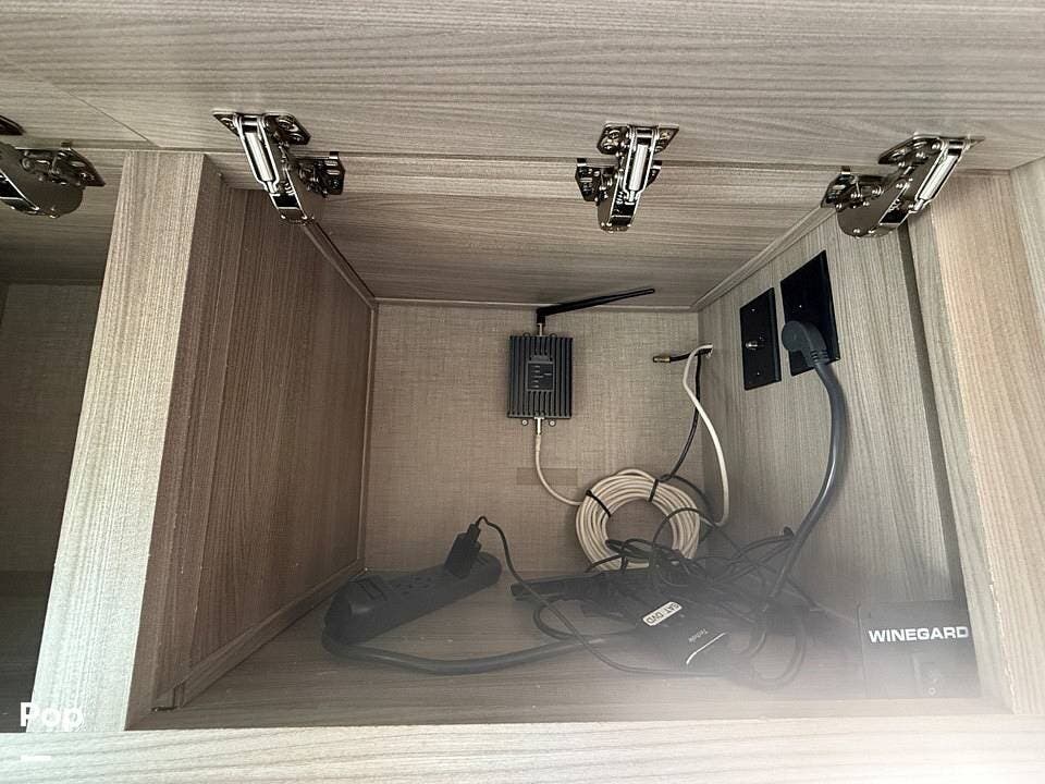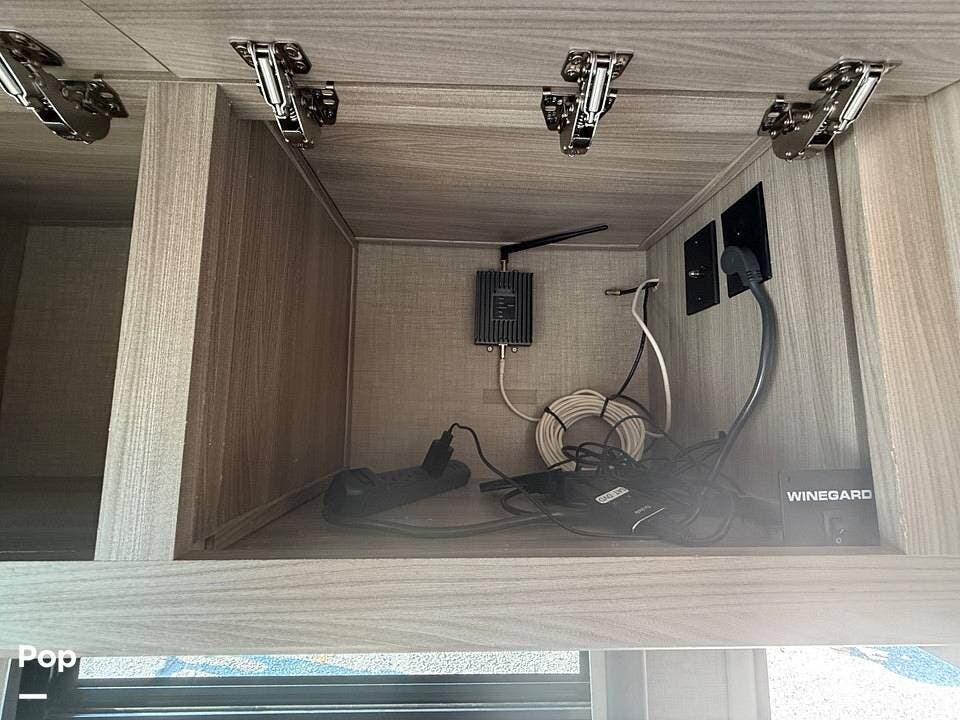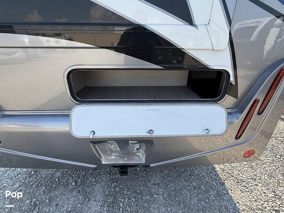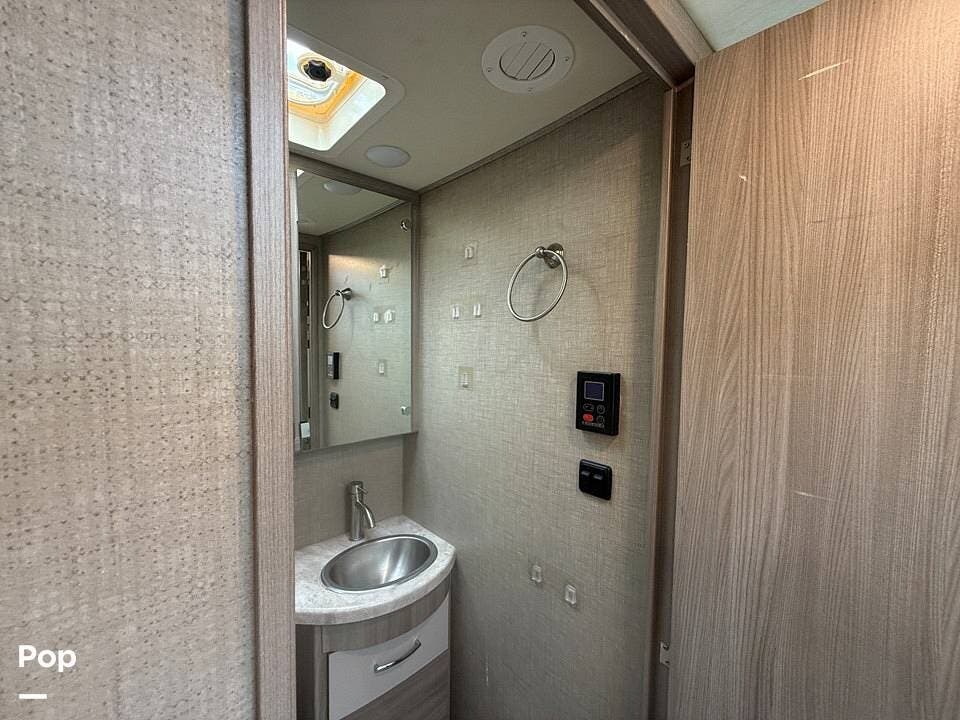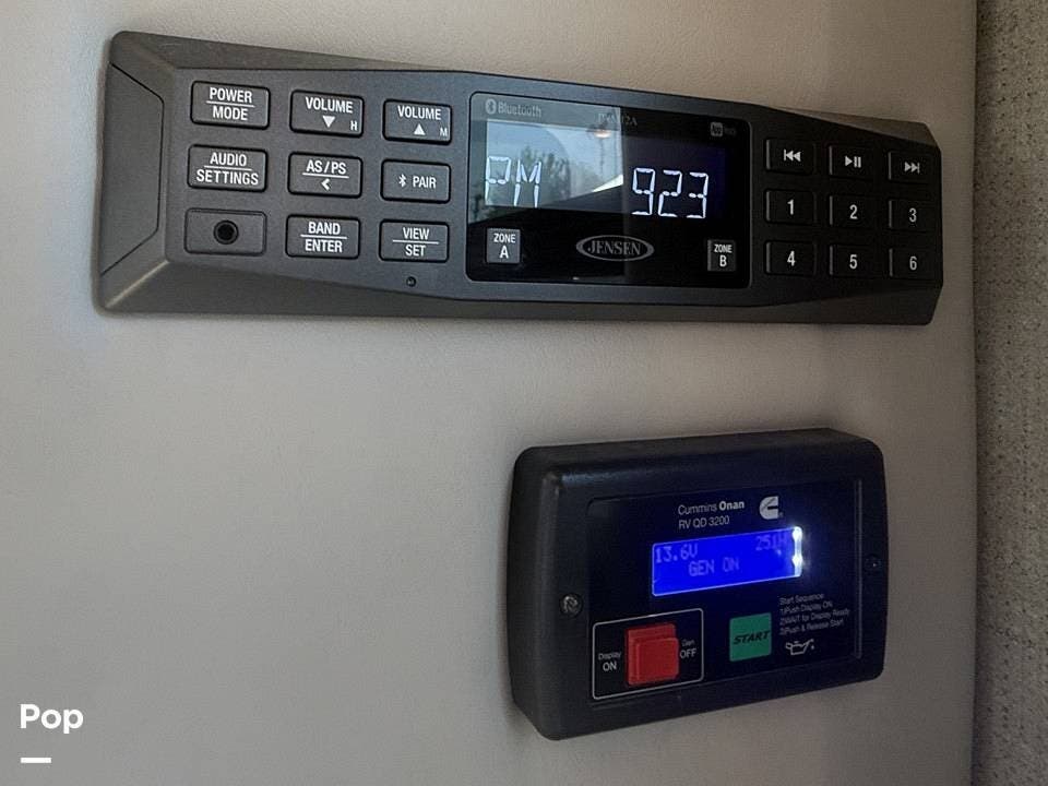 This RV features a 24.5-gallon fuel tank and advanced driving aids, including lane-keeping assist and a backup camera, with additional features such as adaptive cruise control and navigation available depending on the configuration.