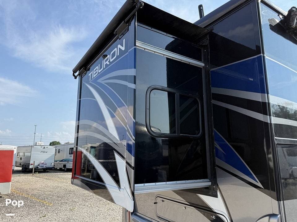 Designed for extended stays and off-grid travel, this Tiburon includes a 30-gallon freshwater tank, 38-gallon grey and black tanks, a 68-pound LP tank, and a tankless water heater for endless hot showers wherever you roam.