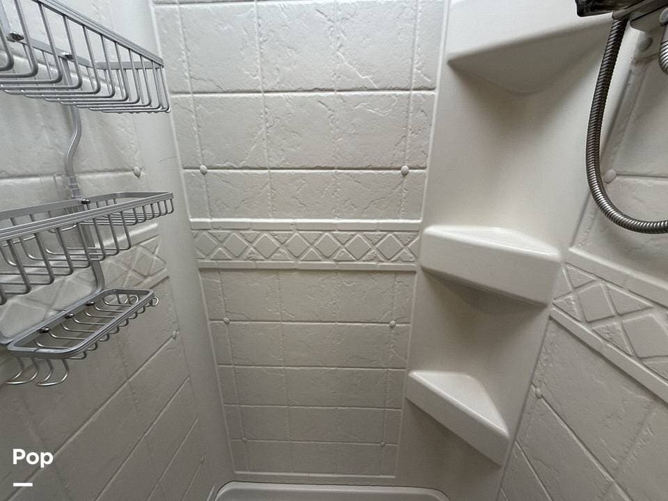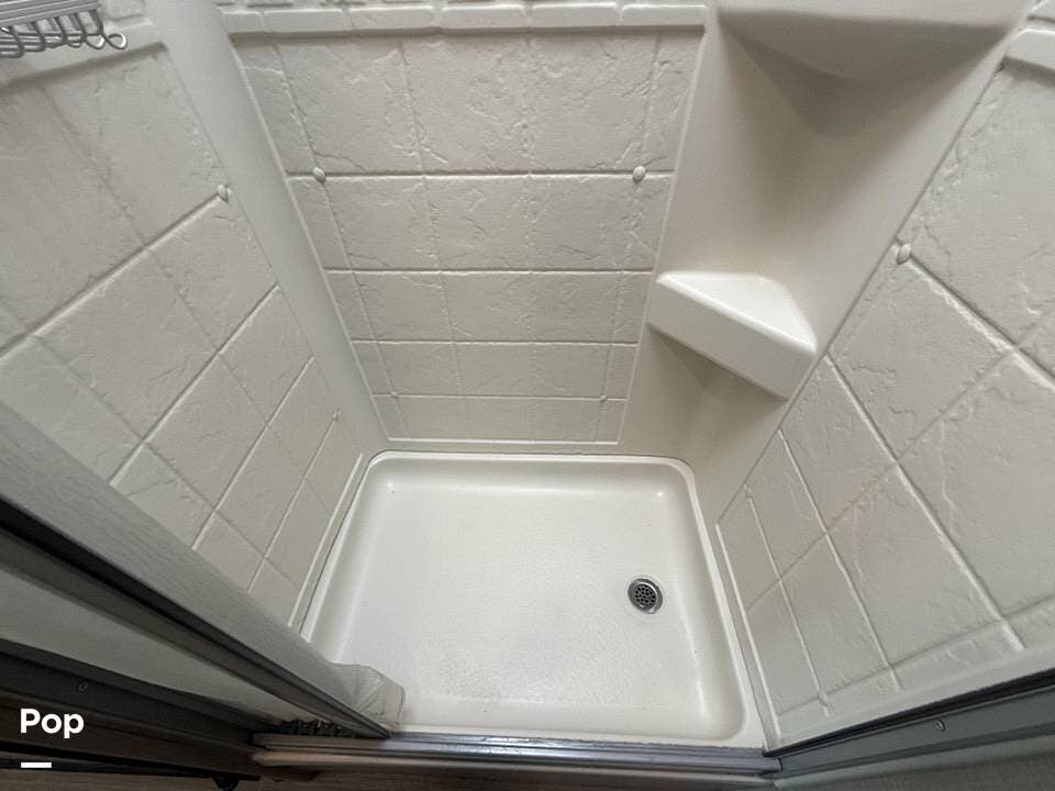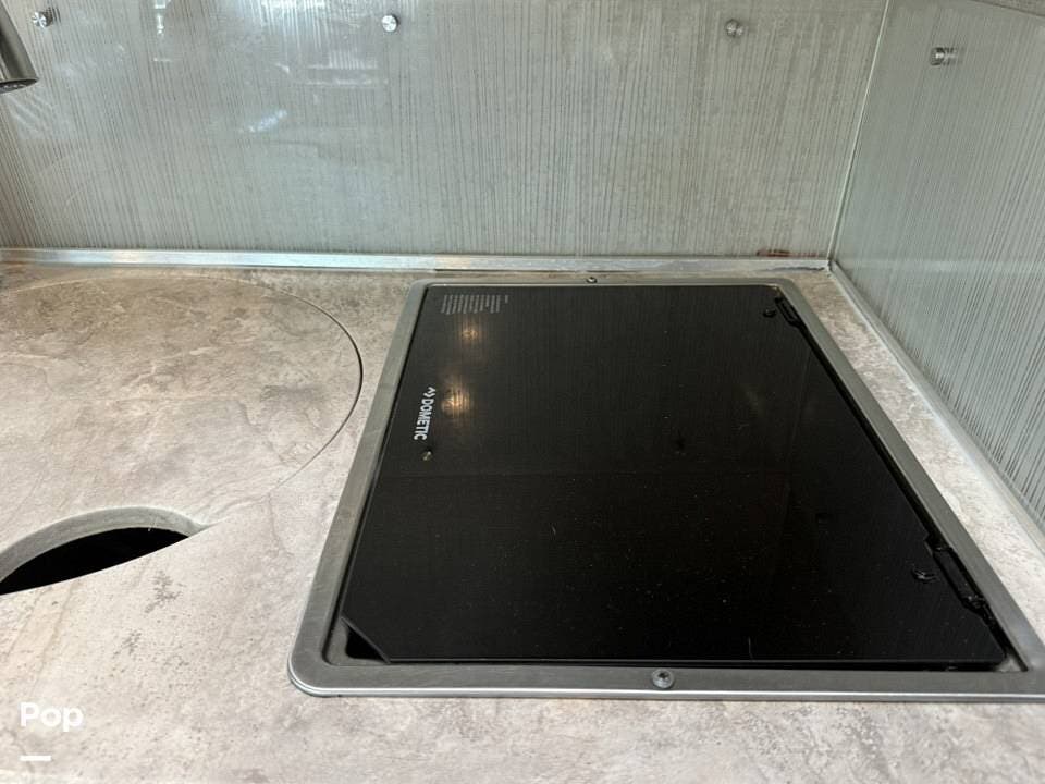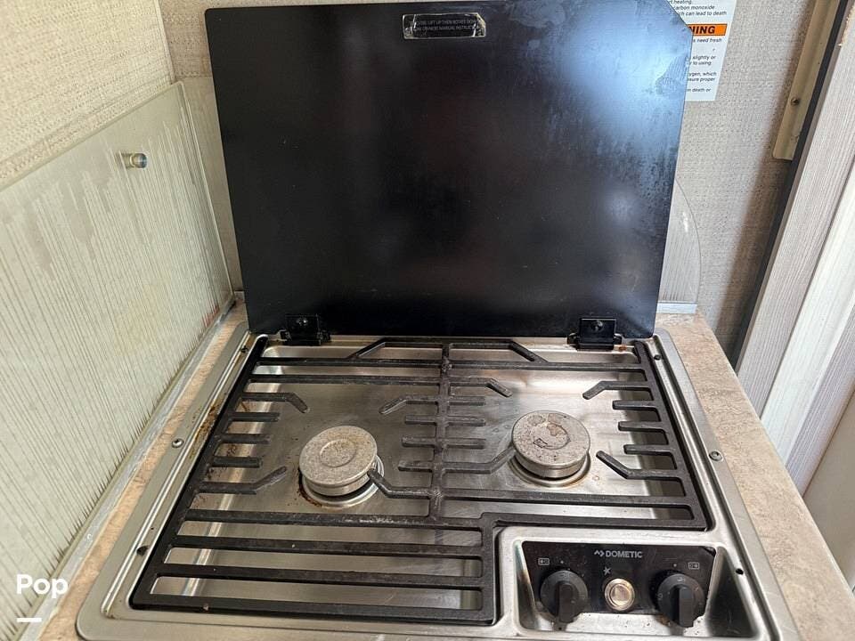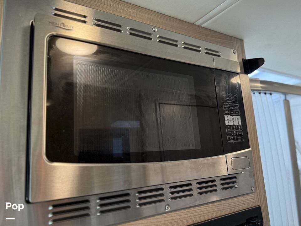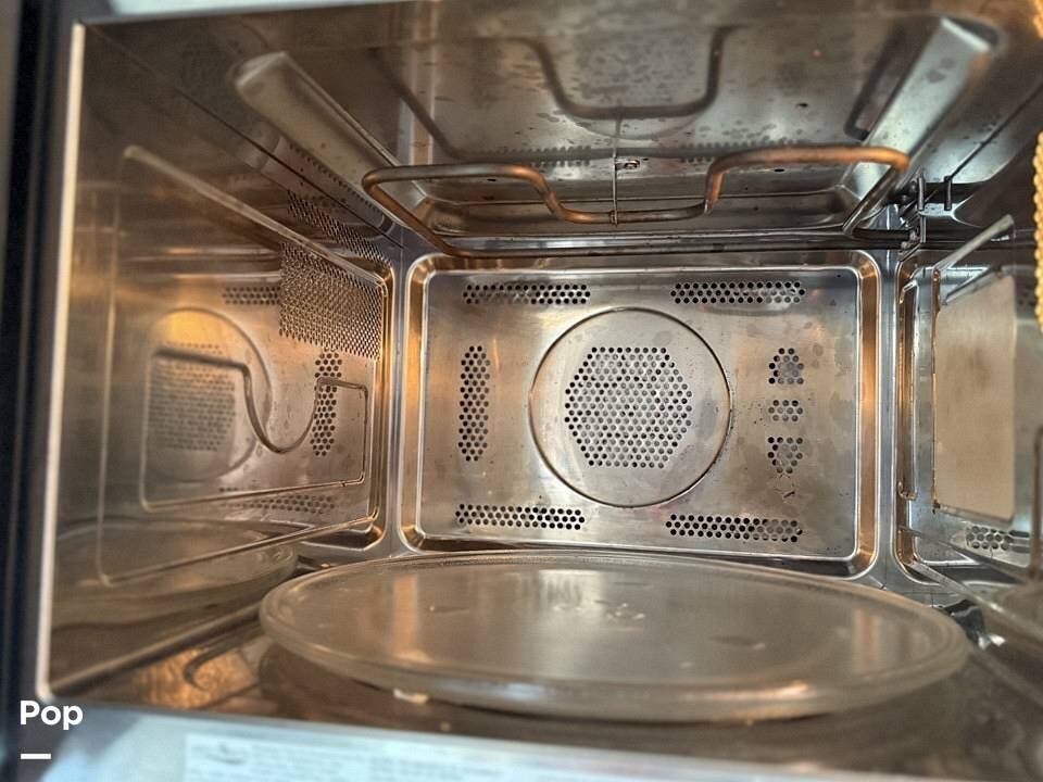 A full bathroom typically includes a shower, toilet, and vanity, while the modern kitchen features a two-burner gas cooktop, convection microwave, and gas/electric refrigerator, making it easy to enjoy home-cooked meals on the go.