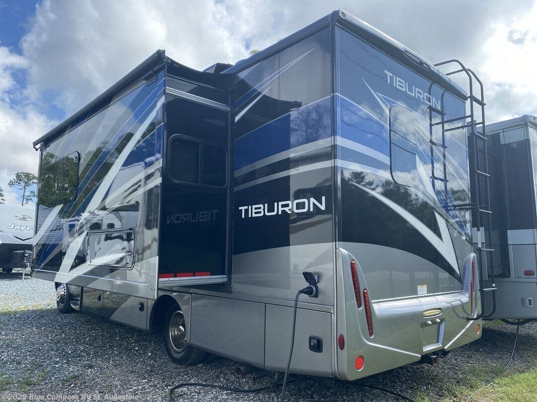 This Tiburon Sprinter Class C diesel motorhome will provide you with endless opportunities to travel in luxury and style! A rear bathroom with a 24" x 36" shower and large linen closet will give you a place to clean up throughout all of your adventures, and a large slide will provide extra living space for you and your friends while you play cards at the 70" Dream Dinette or watch a movie on the 32" LED TV. Since this coach comes with a 60" x 75" Murphy bed, you can choose to have the 67" sofa in place during the day when you need an extra place to sit down and relax.