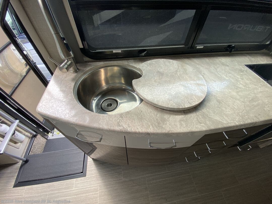As soon as you snatch up the Thor Motor Coach Tiburon Sprinter Class C diesel motorhome, you'll wonder why you didn't do so sooner! These coaches allow you to travel freely while you continue to enjoy the comforts that home provides. The Rapid Camp+ multiplex wiring system gives you the ability to control and monitor the electrical functions of your RV, like the awning, lights, and tank levels. Some other electrical features that are sure to wow you are the Onan RV QG 3600 LP generator, the Winegard ConnecT 2.0 Wi-Fi/4G/TV antenna, the whole-coach water filtration system, the tankless water heater, and the 100W solar charging system with power controller. The cab is also comfortable and accommodating with its swivel/heated/adjustable cab chairs and its 10.25" multimedia dash radio with Bluetooth, navigation, and SiriusXM so that you can just enjoy your time traveling to your next pit stop.