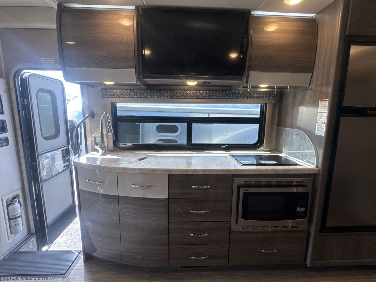 This Tiburon Sprinter Class C diesel motorhome will provide you with endless opportunities to travel in luxury and style! A rear bathroom with a 24" x 36" shower and large linen closet will give you a place to clean up throughout all of your adventures, and a large slide will provide extra living space for you and your friends while you play cards at the 70" Dream Dinette or watch a movie on the 32" LED TV. Since this coach comes with a 60" x 75" Murphy bed, you can choose to have the 67" sofa in place during the day when you need an extra place to sit down and relax.