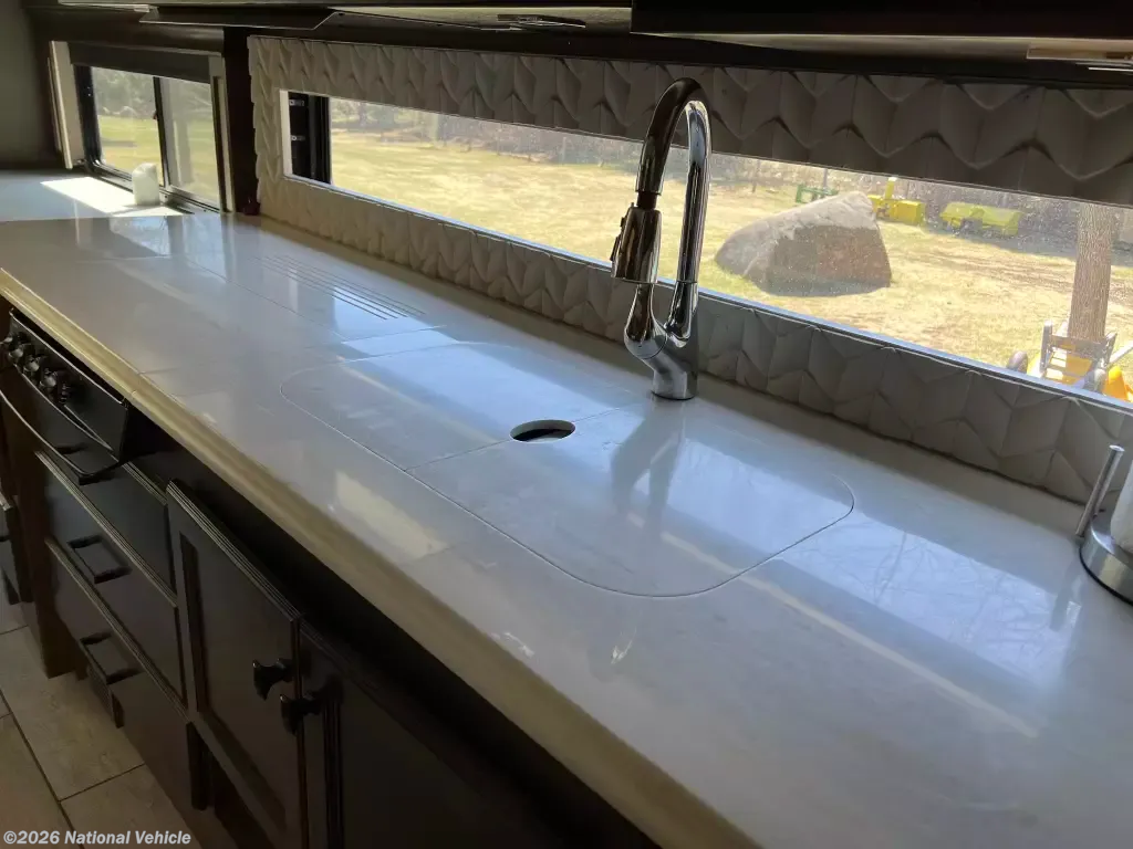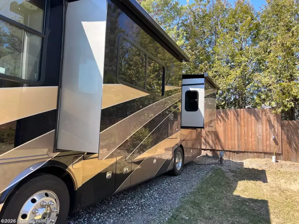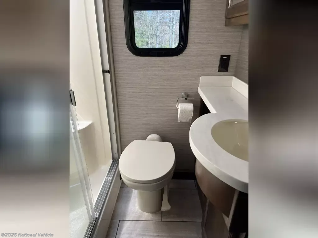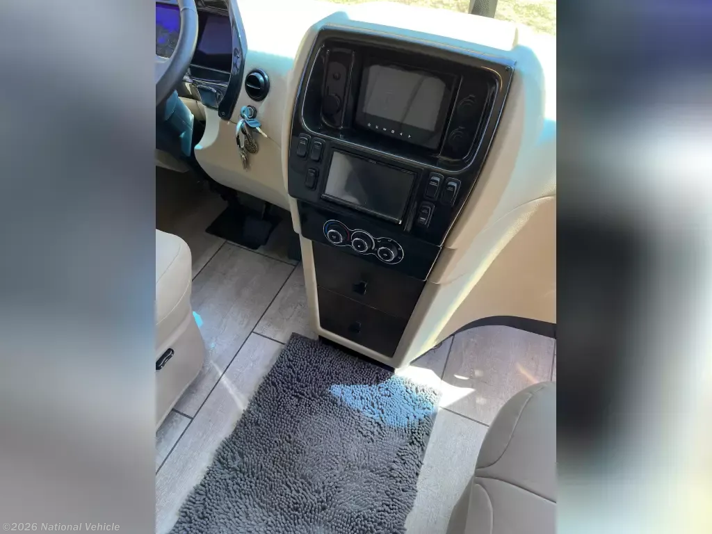Pack your bags and load up into this motorhome for a luxurious adventure! This compact yet comfortable coach delivers an enjoyable nimble ride atop smooth air ride suspension, propelling you ahead thanks to a quiet yet robust diesel engine. The rear private bedroom has a queen bed slide with nightstands, a bank of drawers next to a TV, and a wardrobe that is prepped to add a washer and dryer so you can have clean clothes throughout your entire trip. The full bathroom has a shower with a seat to freshen up in each morning and has an upgraded Nautilus Shower Door system. The kitchen area has a three-burner cooktop to enjoy your meals in the table top off long counter & 2 folding chairs. The residential refrigerator has ample room for storage for a short or long trip. The upgraded LG TV is remarkable for watching your favorite show while keeping warm with a fireplace below. If the weather is enjoyable outside head outdoors to watch the exterior for a relaxing evening.
