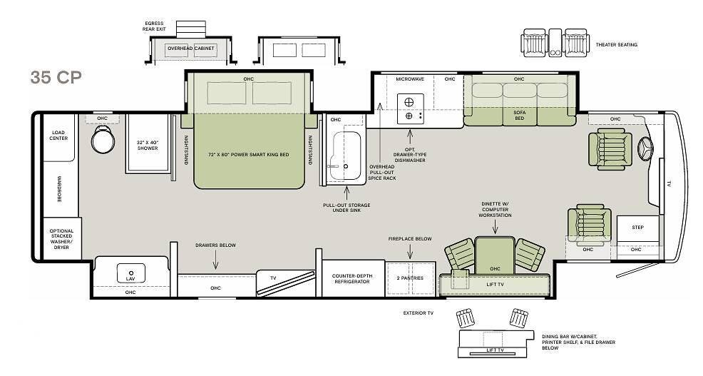 This is a premium compact coach with a luxurious Allegro Bus style. The 35CP is for those who appreciate the finer things in their home away from home. This elegant coach is the perfect traveling companion on the road, offering a quiet, controlled ride, a driver-oriented cockpit, and a generous towing capacity.