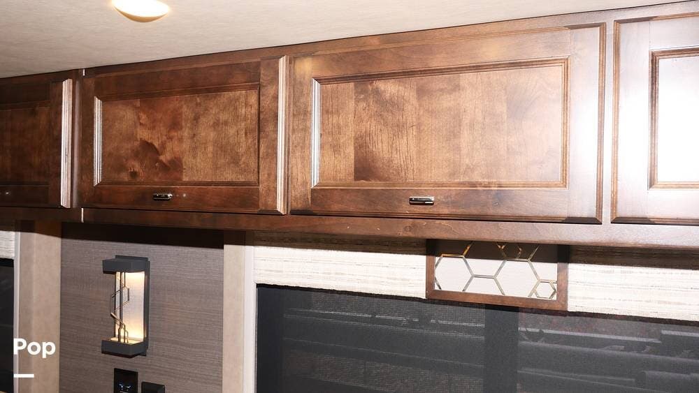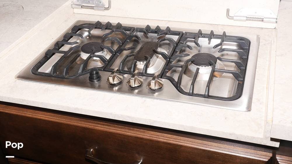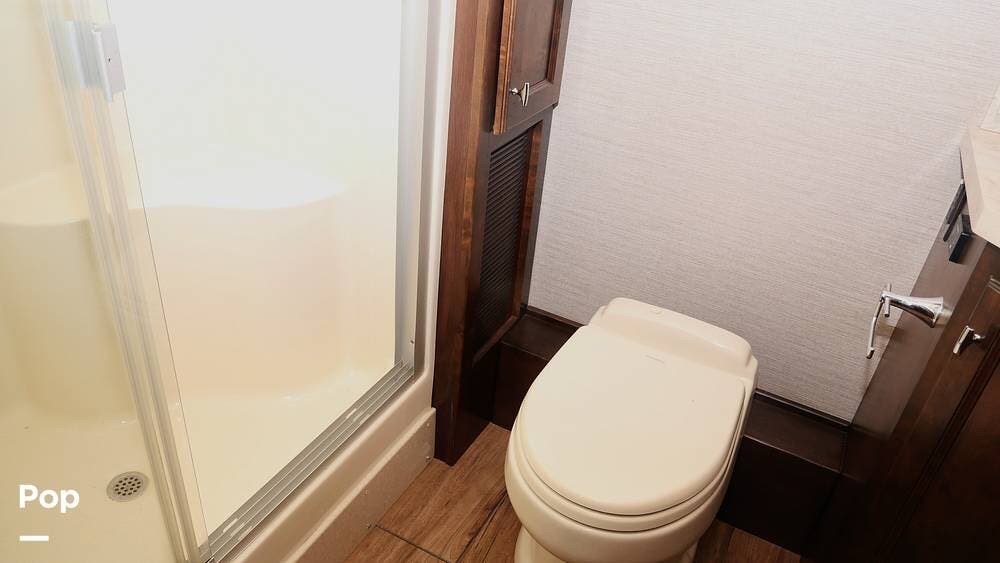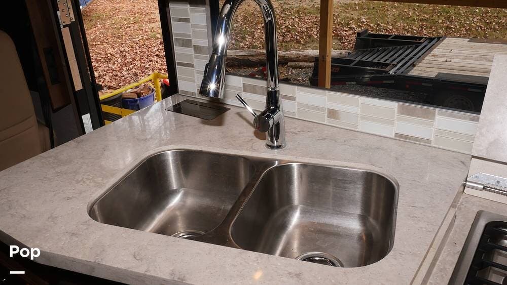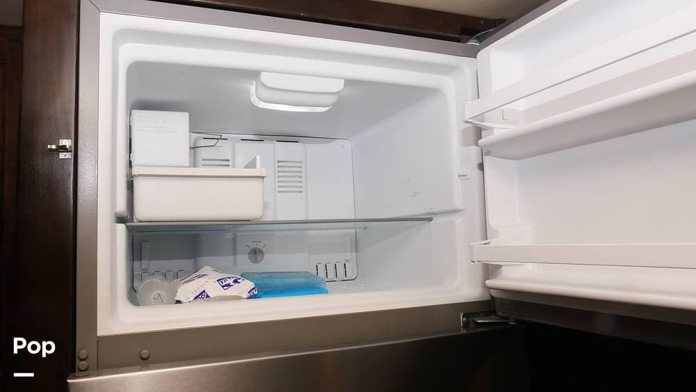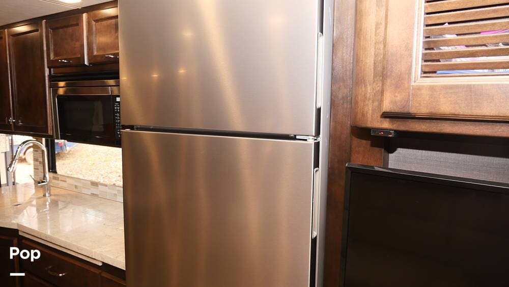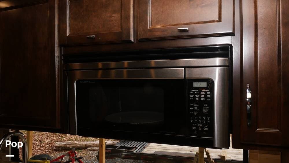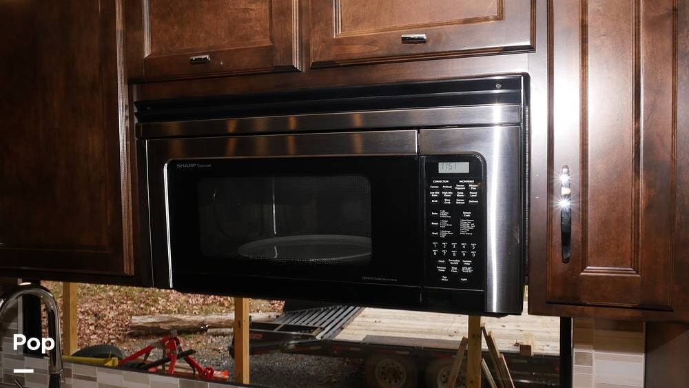 There's also a booth dinette-sleeper for dining, relaxing, and accommodating extra guests. Add the optional drop-down overhead bunk, and you can bring the whole family! The chef will love the full kitchen with task lighting, a smart convection microwave with an air fryer, and a 20 cu. ft. stainless steel residential refrigerator with a top freezer.