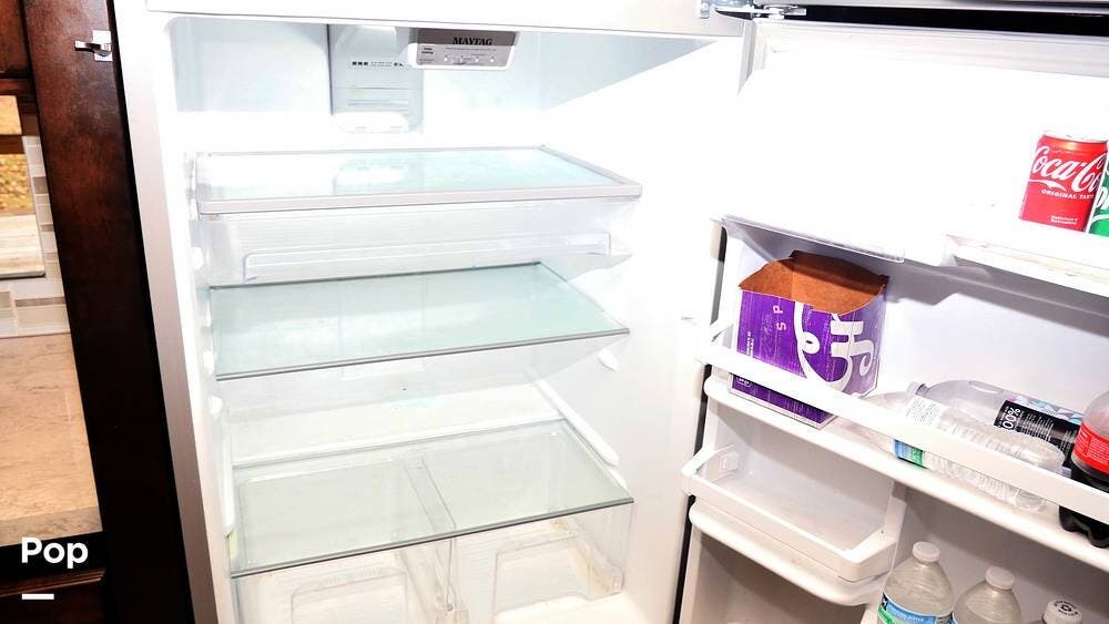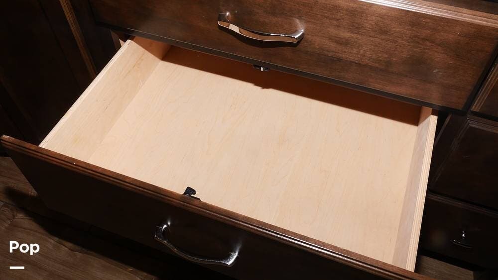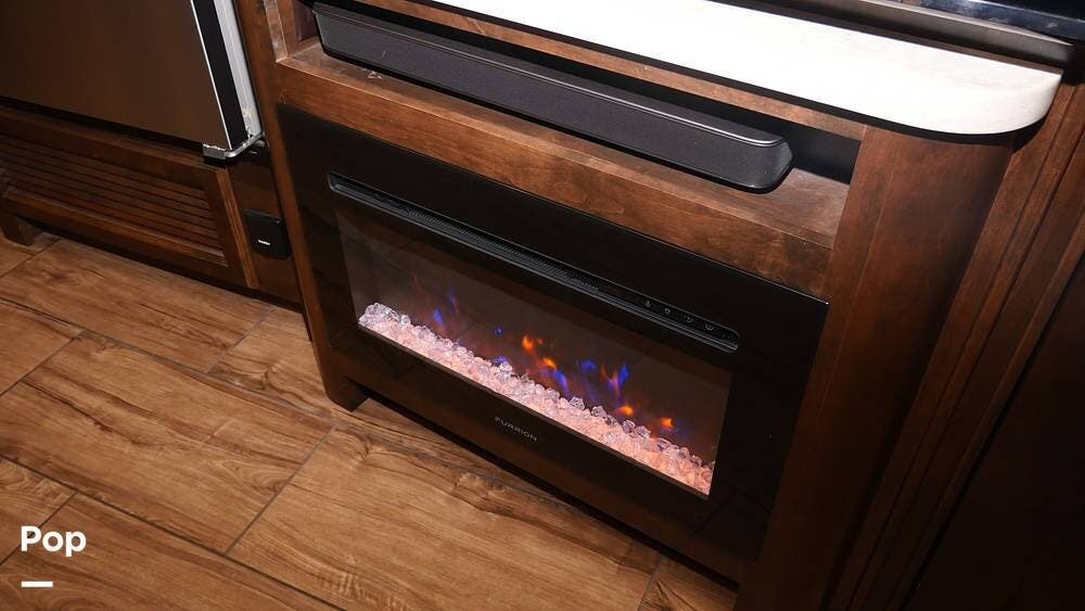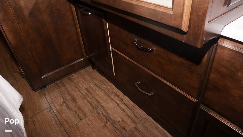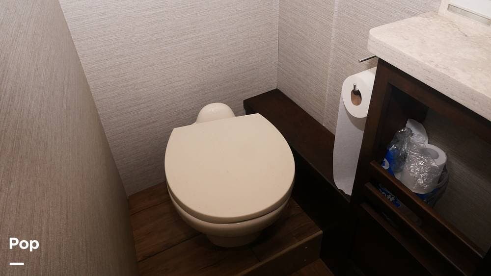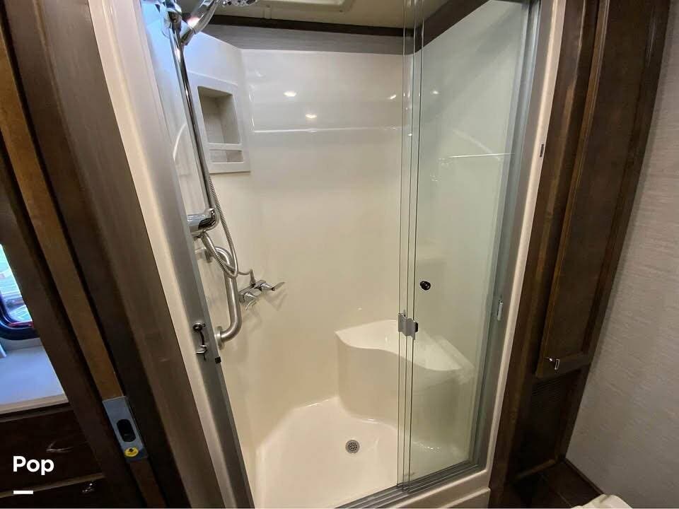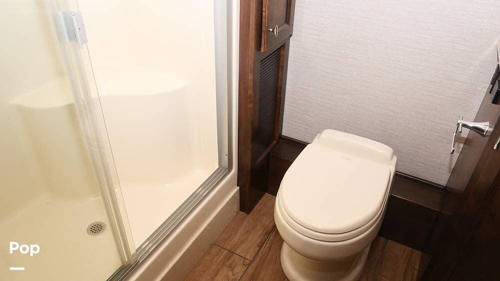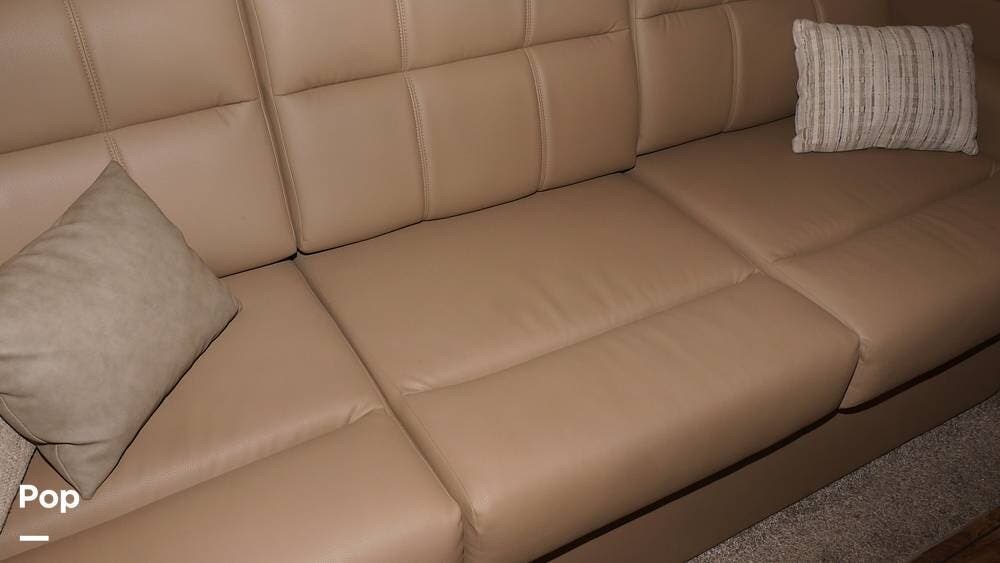 There's also a booth dinette-sleeper for dining, relaxing, and accommodating extra guests. Add the optional drop-down overhead bunk, and you can bring the whole family! The chef will love the full kitchen with task lighting, a smart convection microwave with an air fryer, and a 20 cu. ft. stainless steel residential refrigerator with a top freezer.