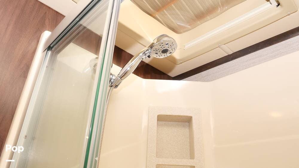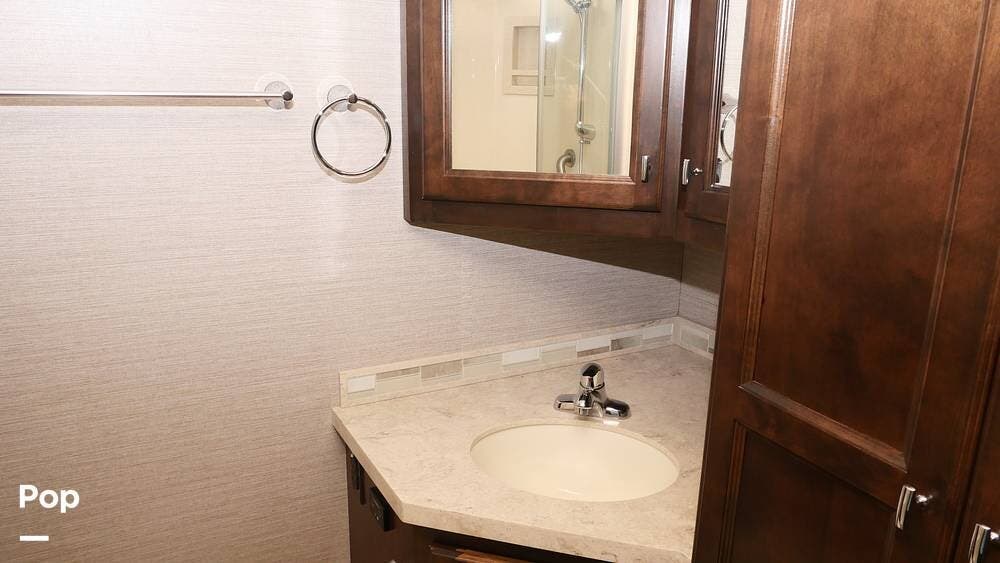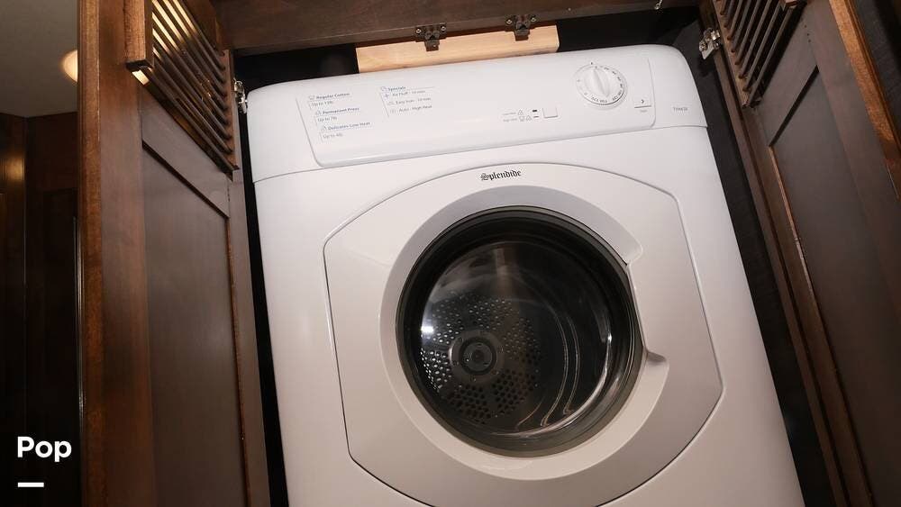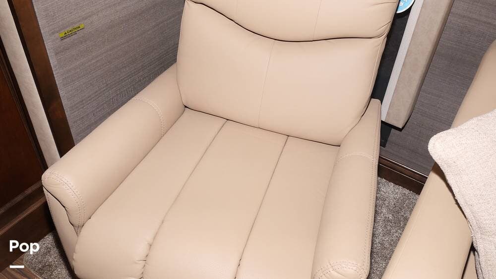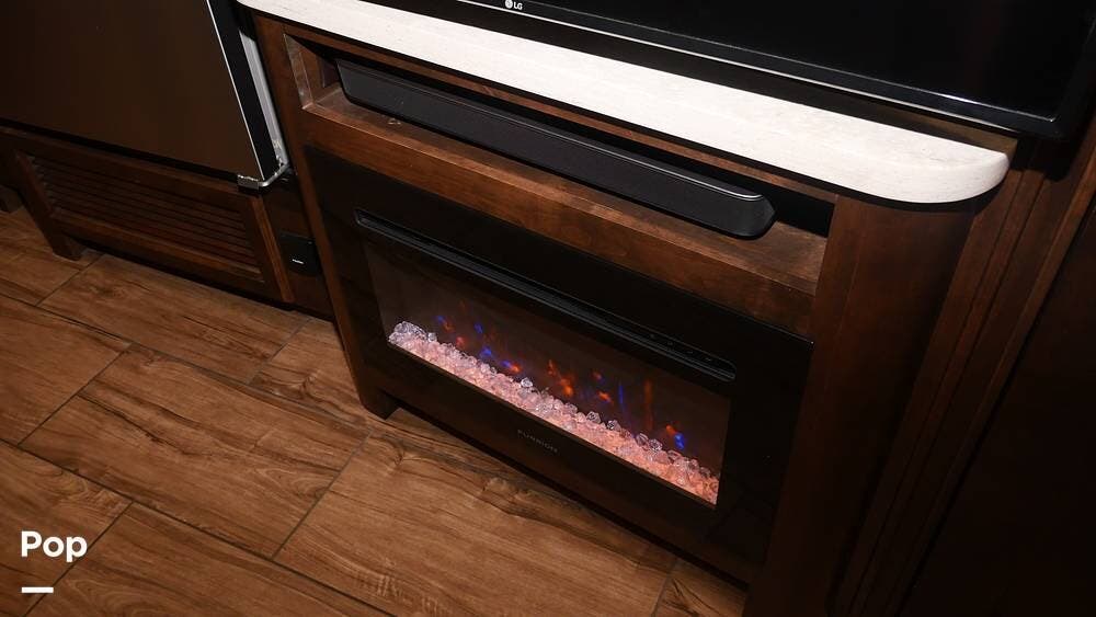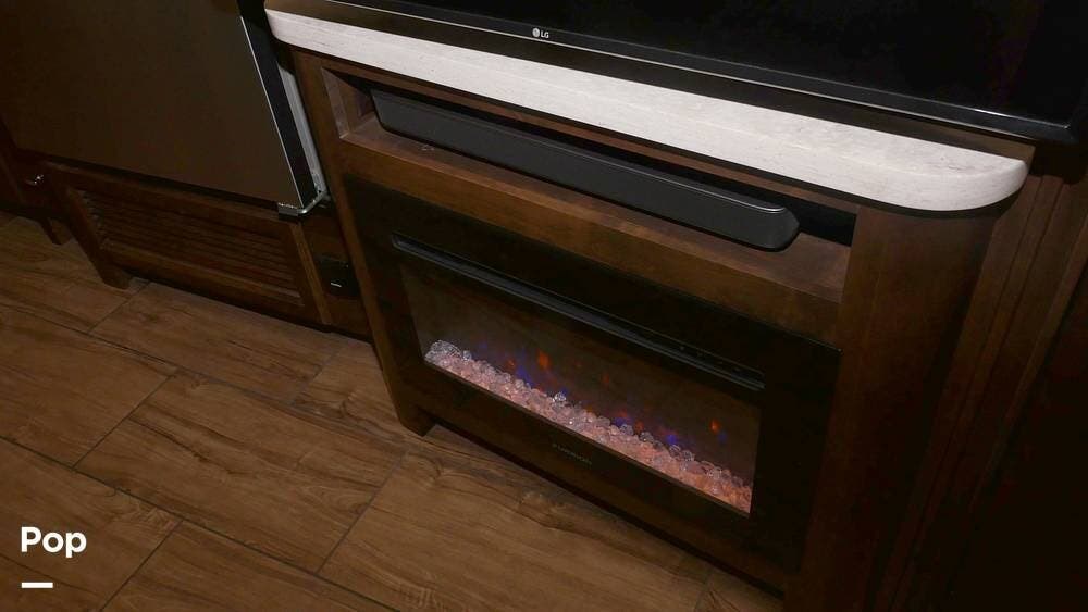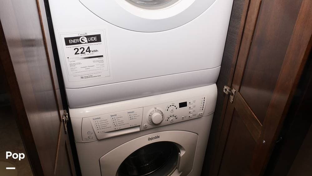 This motorhome is a great choice for your travels, featuring a full rear bathroom with a shower, overhead storage, and the option for a stacked washer and dryer - perfect for extending your trips with clean clothes! After a day on the road, unwind in the recliner or on the flip-and-fold sofa bed, across from the living room TV (with an optional fireplace below).