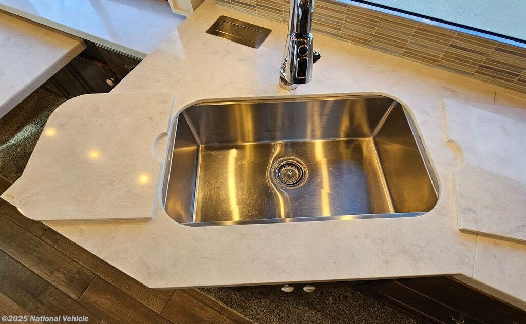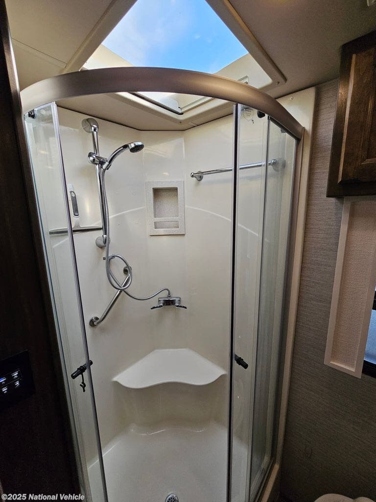 When you have this Allegro RED Class A diesel motorhome, you'll never miss home while you're out adventuring because home will be right there with you! The interior is full of space and comfort with its 7' ceiling and two sets of opposing slides, and that space is packed full of accommodating features, like a sofa bed, booth dinette, exceptional kitchen, private bedroom, and full bathroom. This coach also has top-notch entertainment features with its three flat-panel TVs, and the bathroom offers you a skylight and LED light above the molded one-piece fiberglass shower.