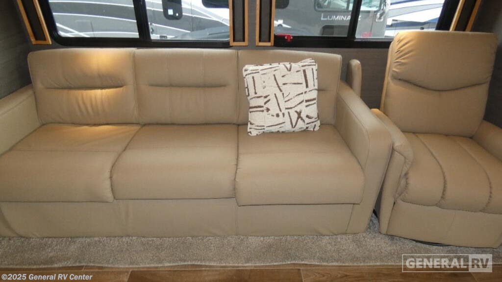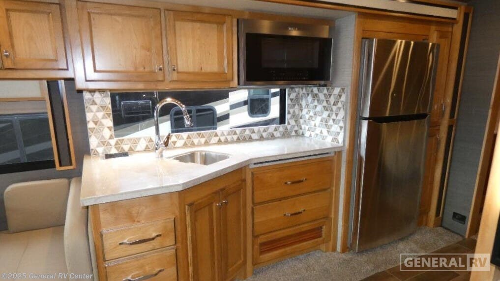 Experience the open road like never before with the 2021 Tiffin Allegro RED 33 AA. This luxurious diesel pusher combines comfort and style, offering ample space for up to seven travelers. The thoughtfully designed floorplan features a front living area with a cozy sofa bed and a booth dinette, perfect for both relaxation and entertaining guests. The center kitchen is equipped with a full-size electric refrigerator and a three-burner cooktop, ensuring you can prepare delicious meals with ease. The powered retractable awning extends your living space outdoors, providing the perfect spot to enjoy the fresh air. Retreat to the rear bedroom where you'll find a choice of a queen or king bed, ensuring restful nights on the road. The cleverly designed bathroom provides convenience with its shower and lavatory. With a robust Cummins I6 Diesel Pusher engine, 360 horsepower, and a towing capacity of 10,000 pounds, this RV is ready for any adventure you can dream up. Visit your nearest General RV dealership to explore this incredible motorhome and start your journey today!