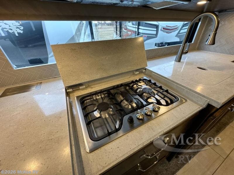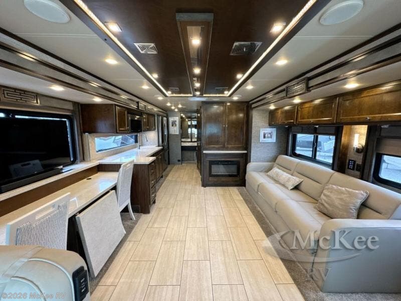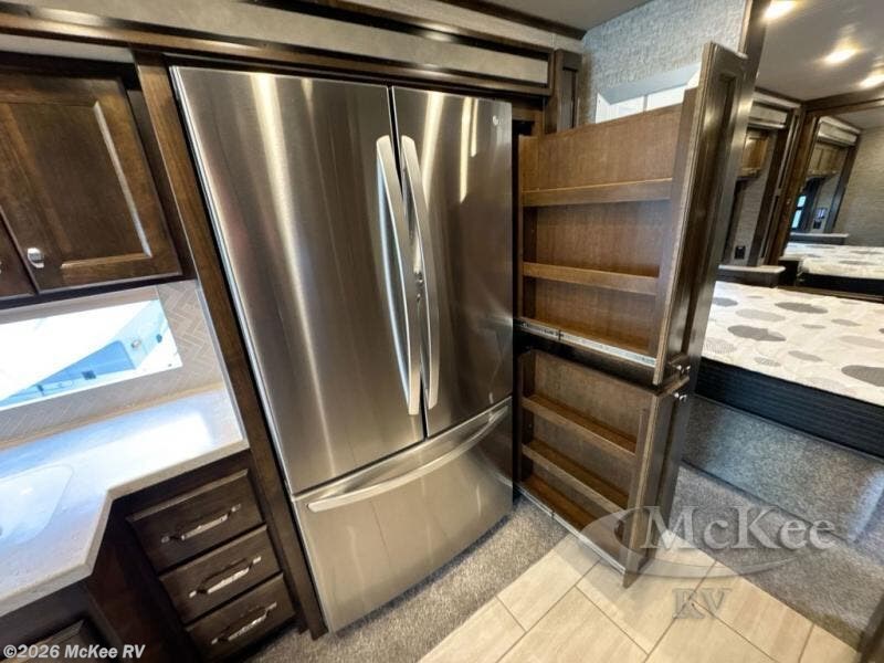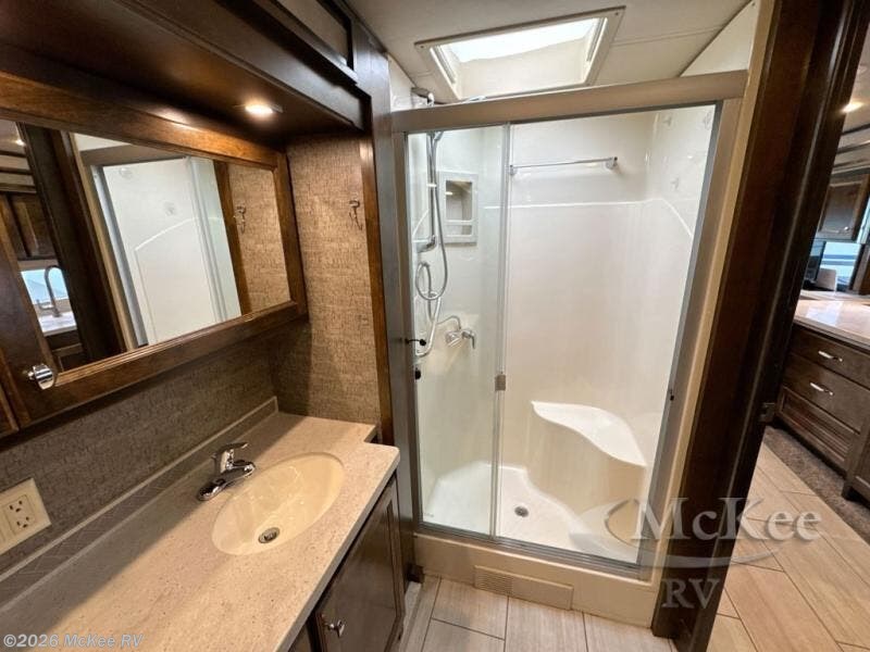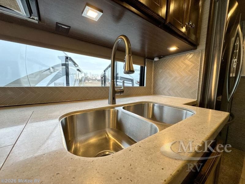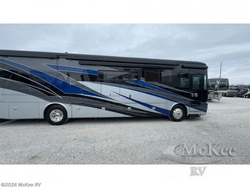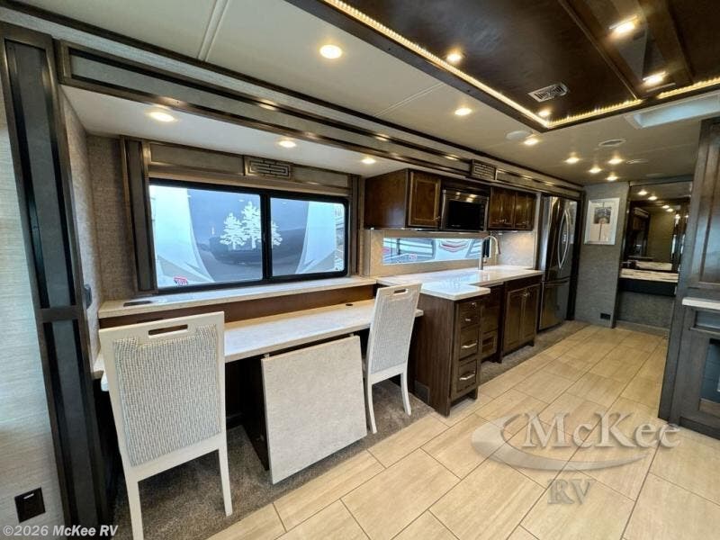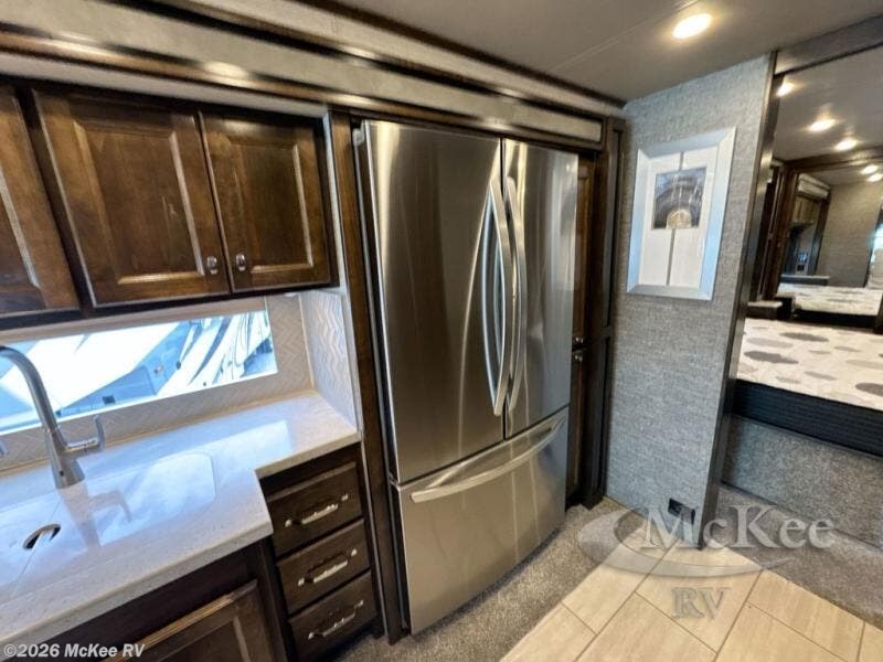 You have to see just how beautiful and upscale this Allegro RED Class A diesel motorhome is! This coach is stunning with its handcrafted cabinetry and stylish décor, and the 7' ceiling and four slides really open up the entire coach to make it feel spacious. This coach is decked out with four flat-panel TVs so that you can watch your favorite show from just about anywhere, and the dual-entry bathroom is extremely convenient with its dual-sink vanity. The second entry on the bathroom leads right into the bedroom so that you can have discreet access when you wake up in the morning, and the kitchen is certainly going to be a favorite feature with its residential refrigerator and convection microwave. Plus, the expand-an-island adds extra countertop space when you need to prep meals!
