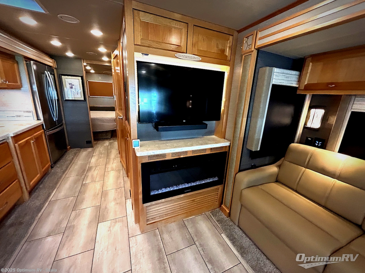 There are plenty of standard features and options to make this motorhome exactly what you want! From the optional drop down bunk over the front Ultraleather power driver and passenger seats and the optional dinette with a computer workstation that can be replaced for the booth dinette to the optional washer and dryer area inside the bathroom. You can even choose to add the optional fireplace below the flat panel TV for even more comfort as you relax on the sofa bed slide out. The rear private bedroom comes standard with a 60" x 80" queen-size memory foam mattress but if you want something bigger then you can switch it out for the optional king-size mattress instead. Yet you might decide the RV is perfect just as it comes!