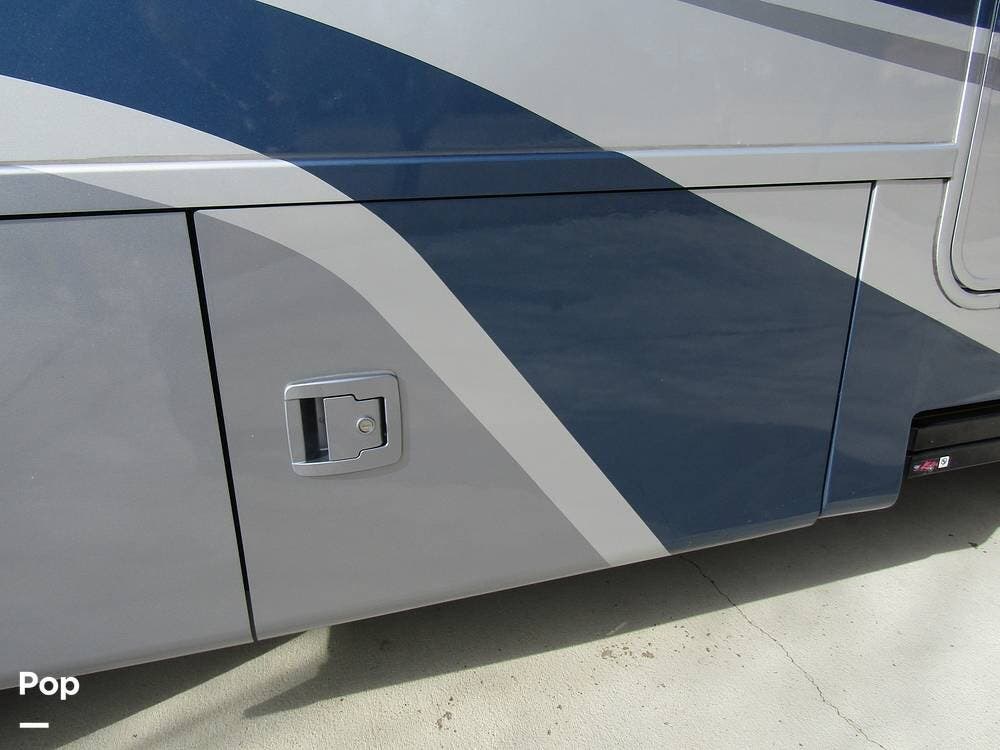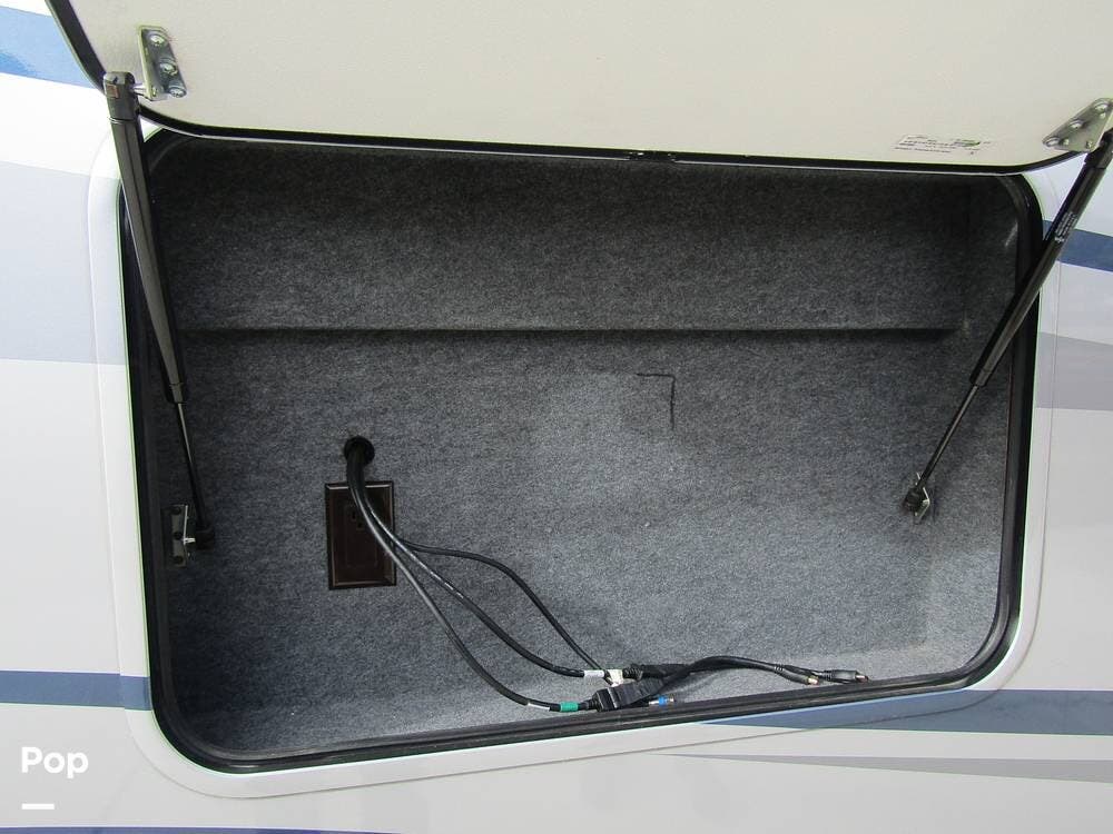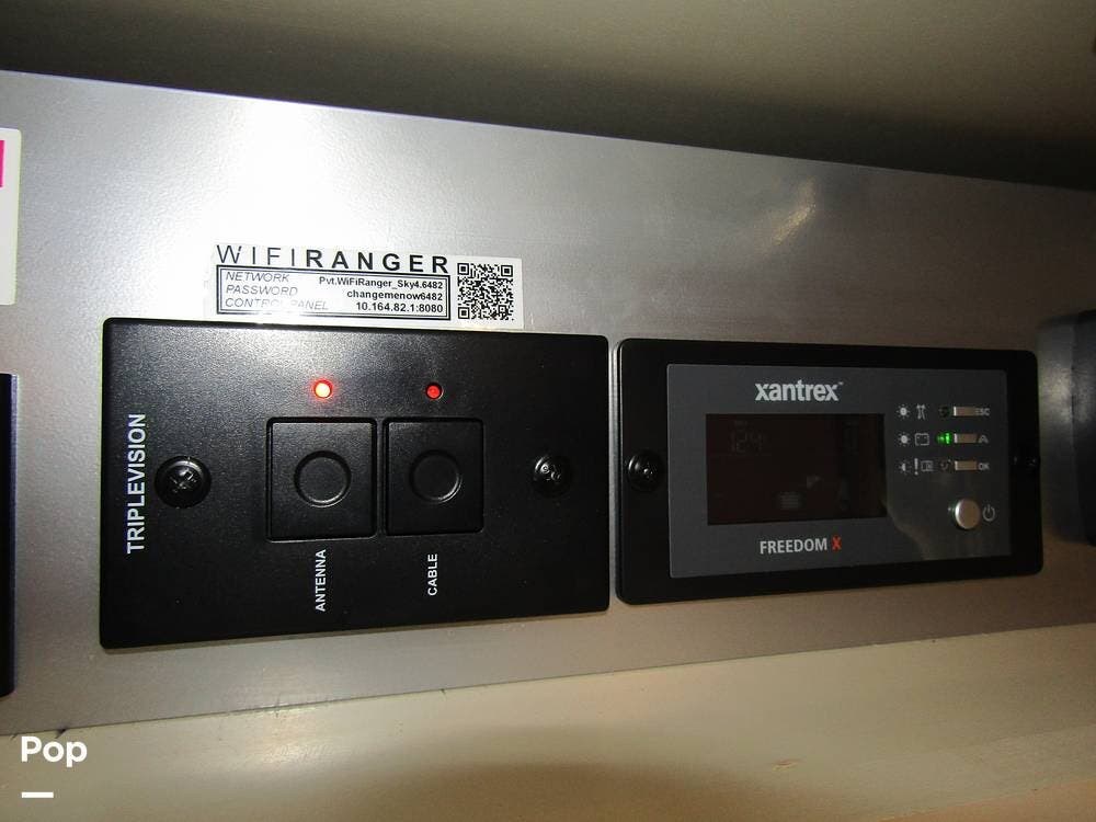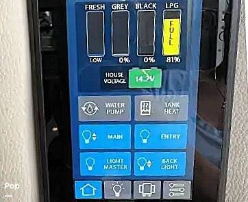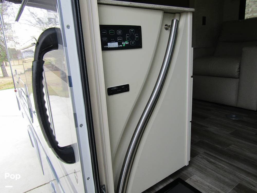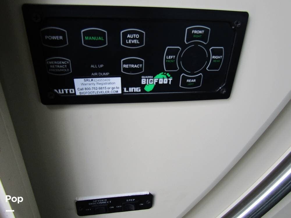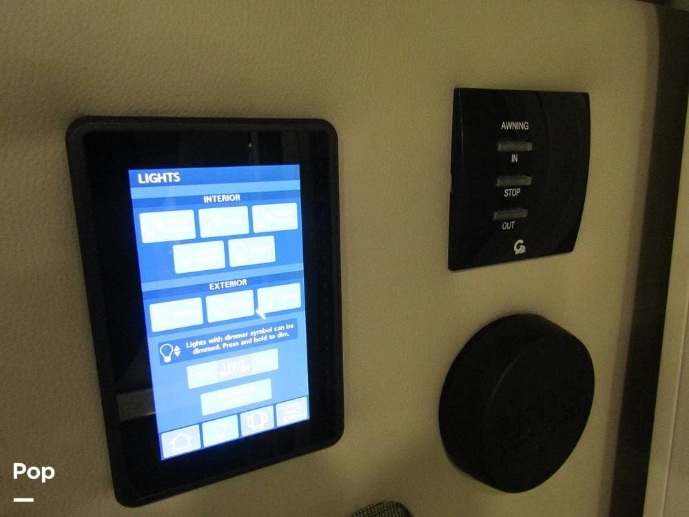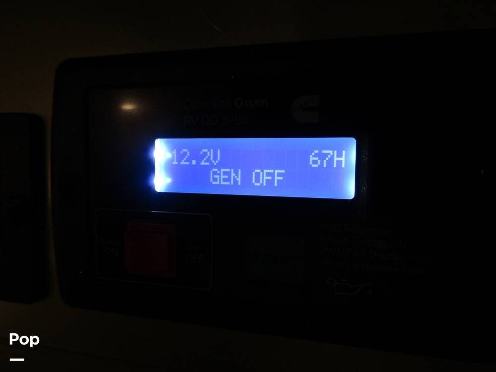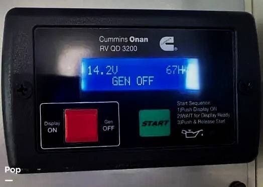 From first glance, it's easy to tell how well she's been cared for, and externally, it features Auto-leveling, an ONAN 3.2 kW generator, aluminum wheels, a solar panel, lockable, pre-wired external TV storage, a power patio awning with gull-wing-type extension, rear and side-view cameras, plus lots of storage space for all your camping gear.