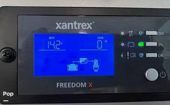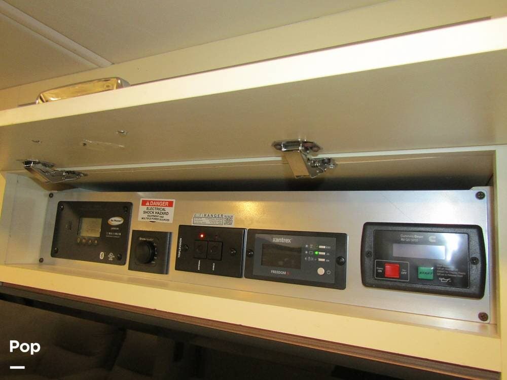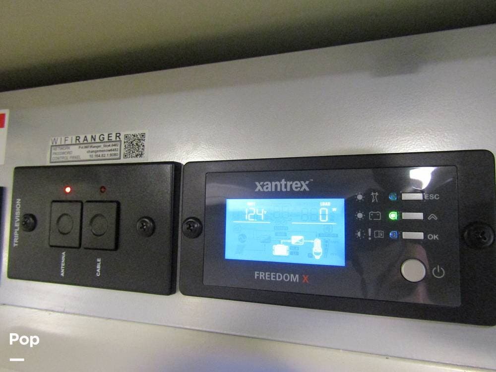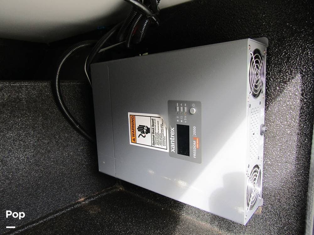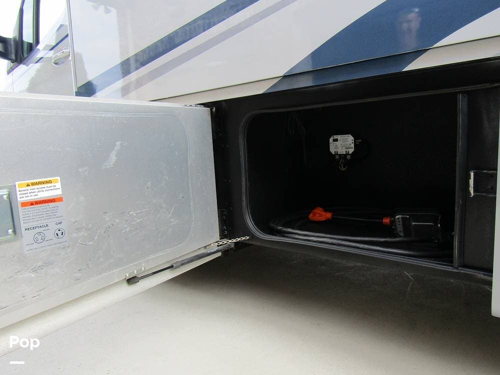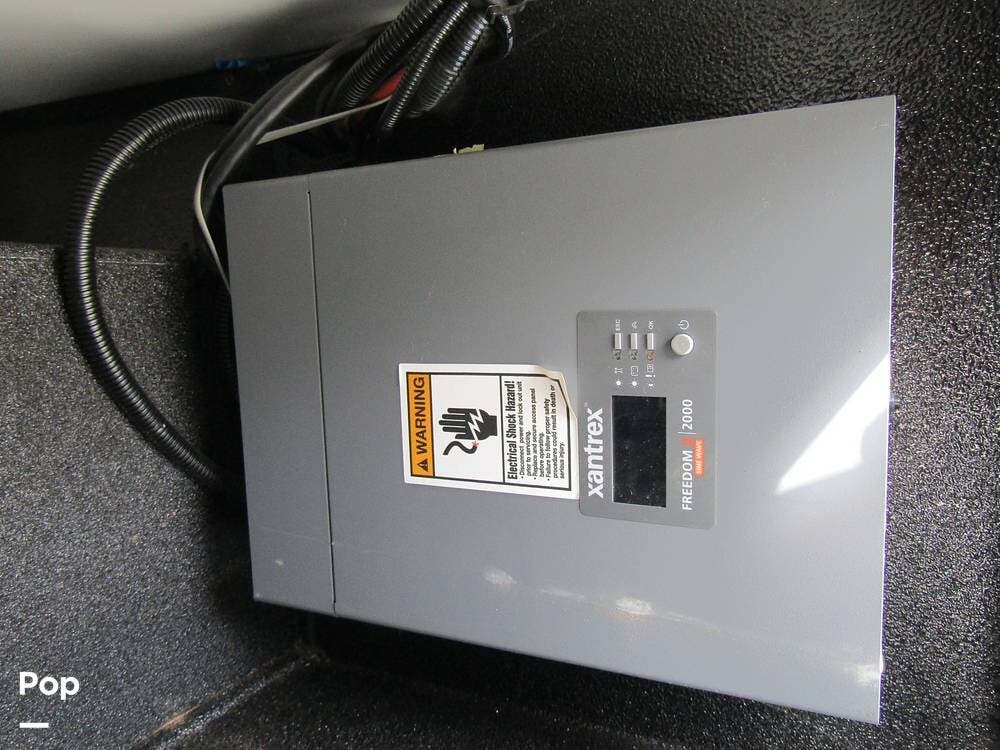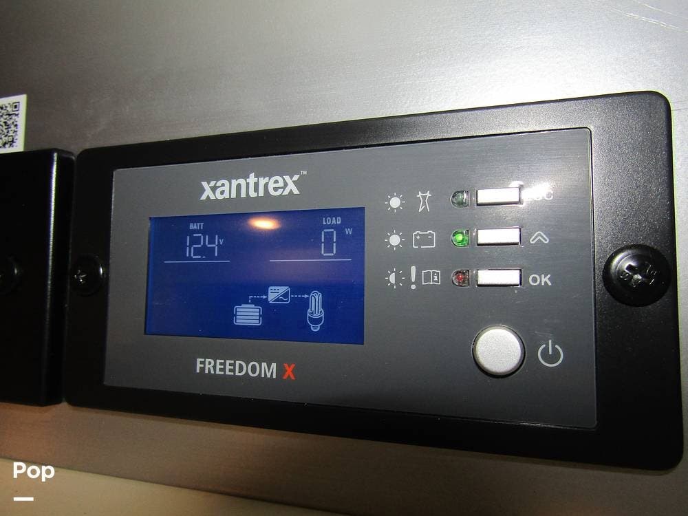 From first glance, it's easy to tell how well she's been cared for, and externally, it features Auto-leveling, an ONAN 3.2 kW generator, aluminum wheels, a solar panel, lockable, pre-wired external TV storage, a power patio awning with gull-wing-type extension, rear and side-view cameras, plus lots of storage space for all your camping gear.