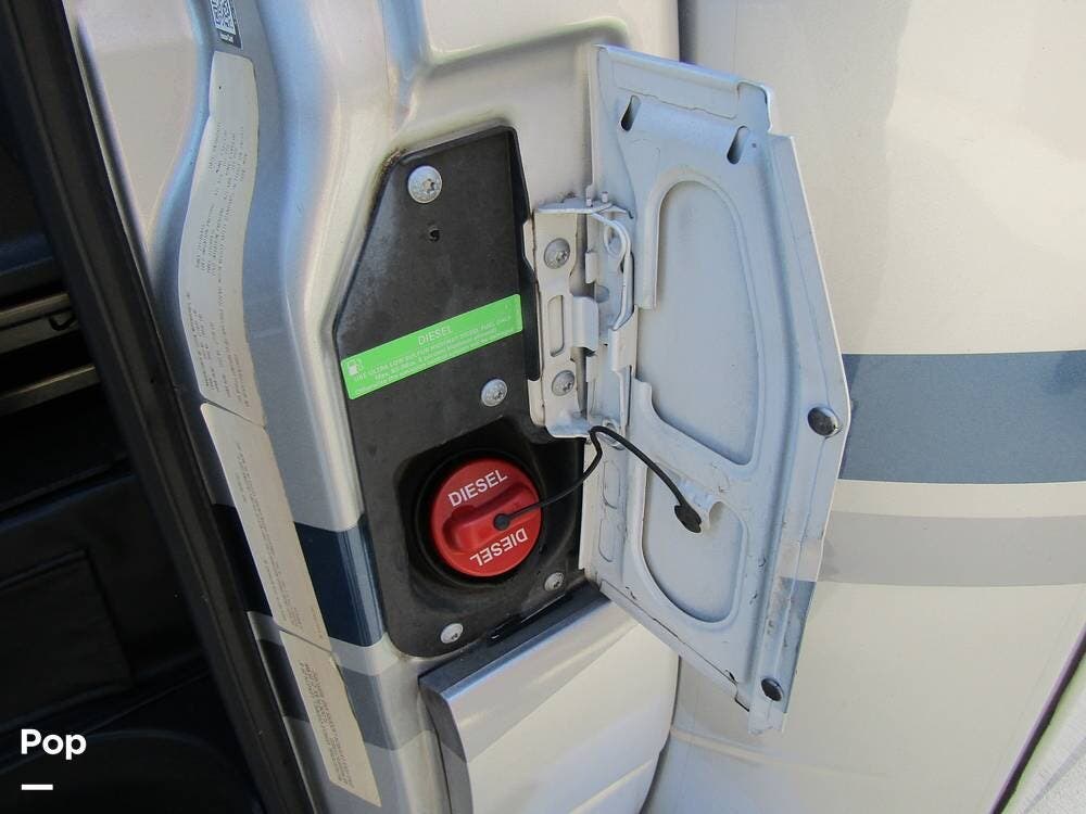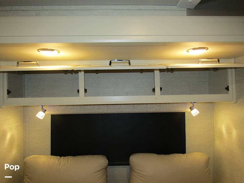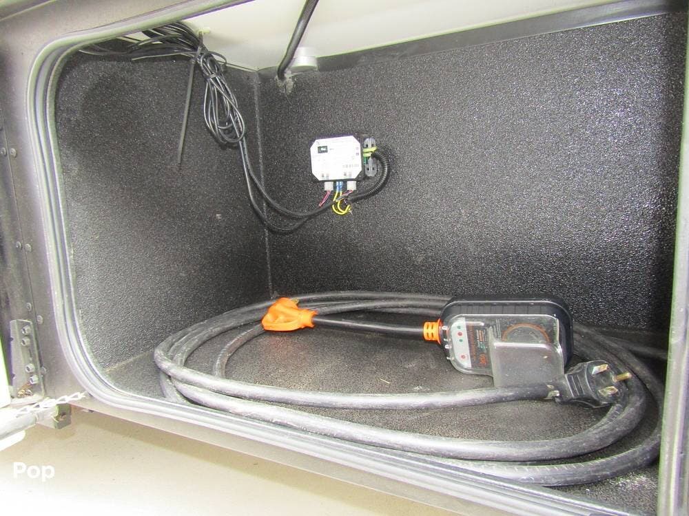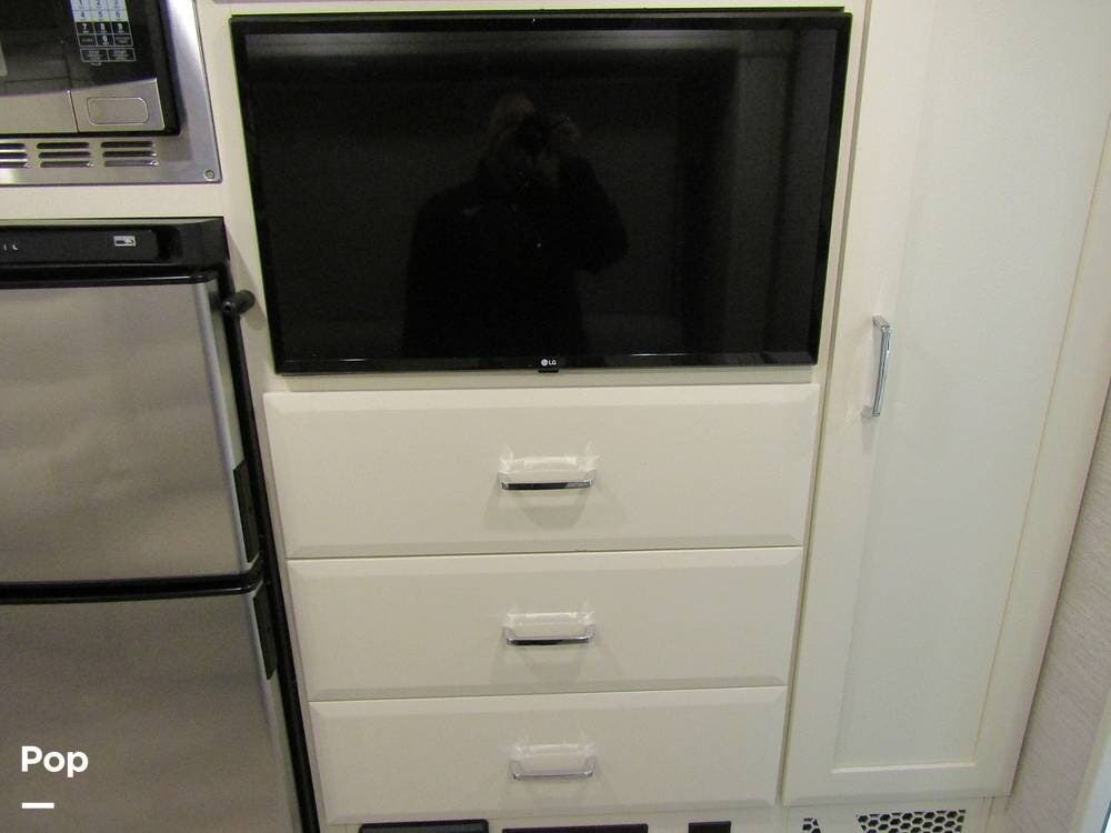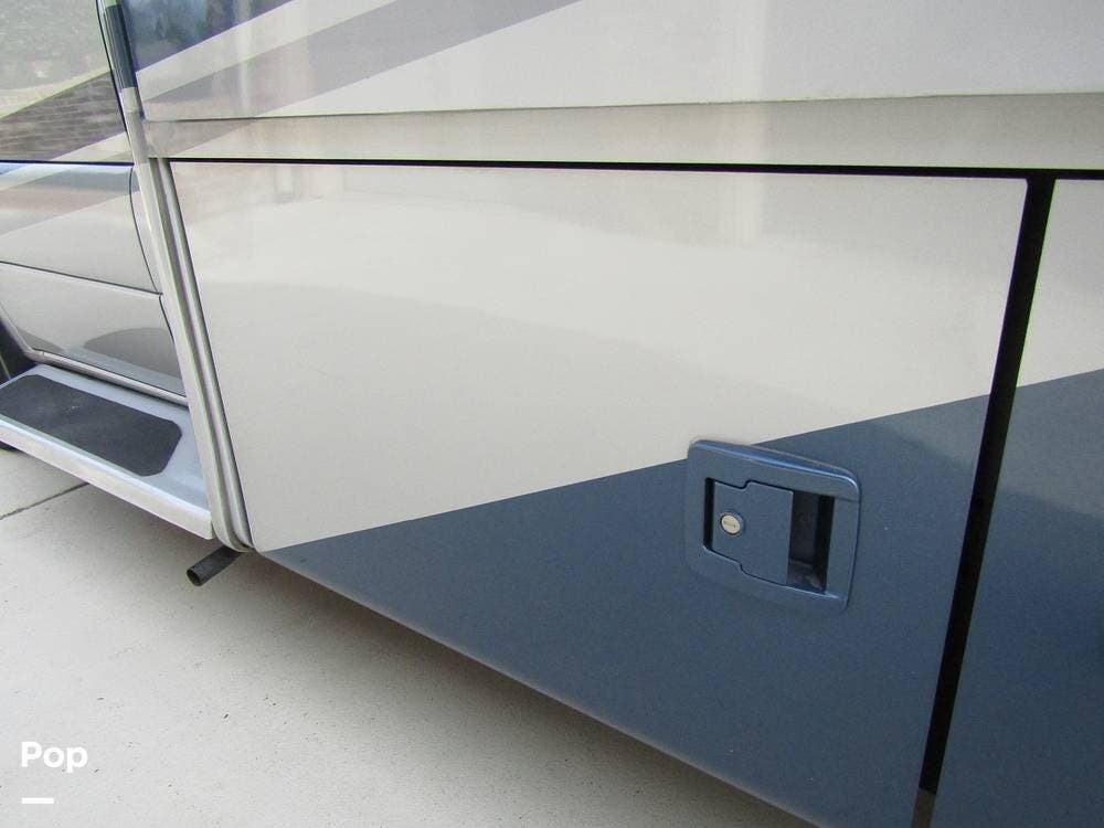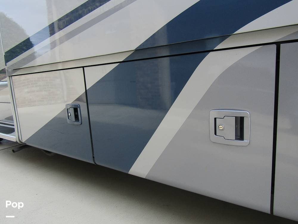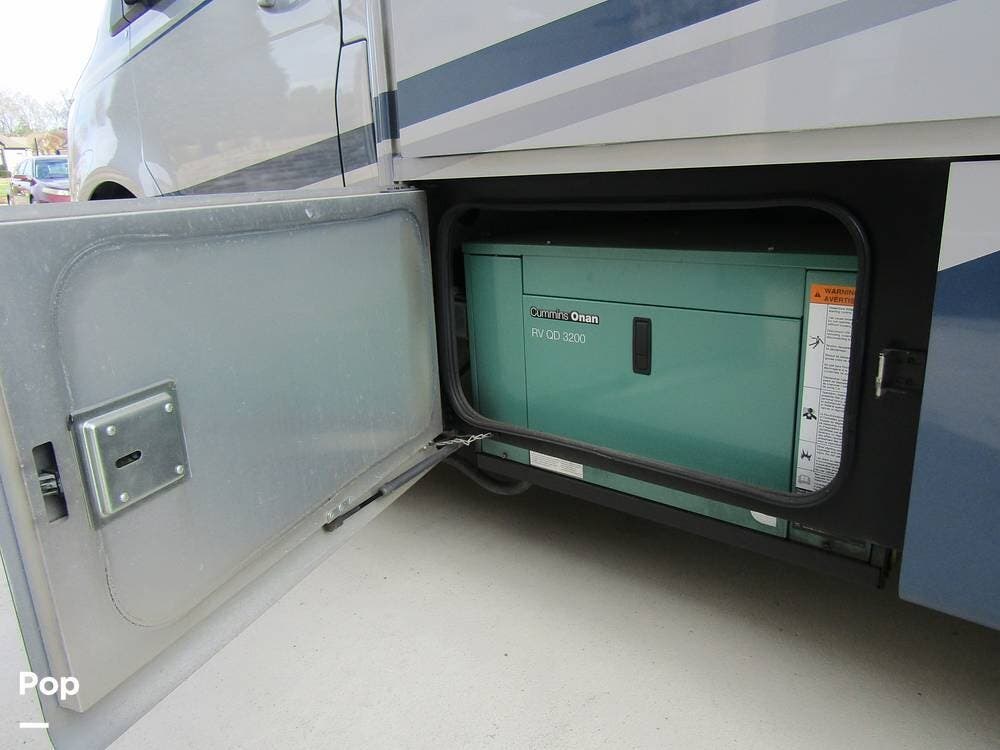 From first glance, it's easy to tell how well she's been cared for, and externally, it features Auto-leveling, an ONAN 3.2 kW generator, aluminum wheels, a solar panel, lockable, pre-wired external TV storage, a power patio awning with gull-wing-type extension, rear and side-view cameras, plus lots of storage space for all your camping gear.