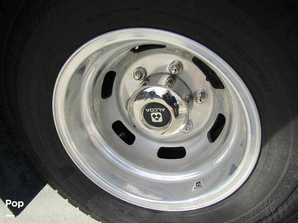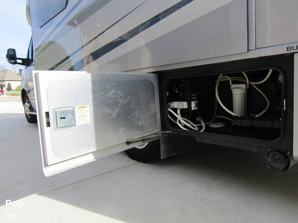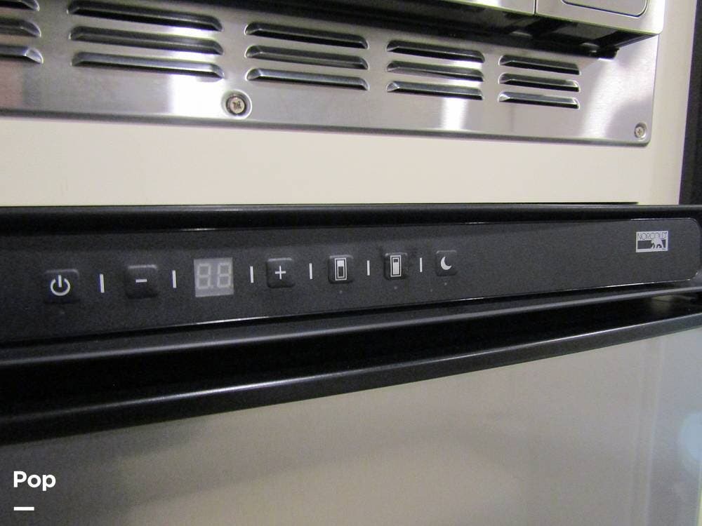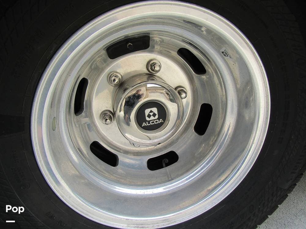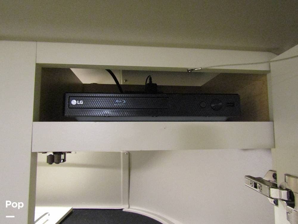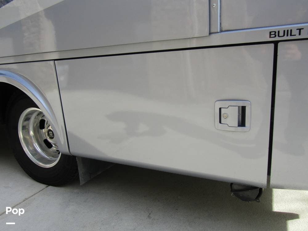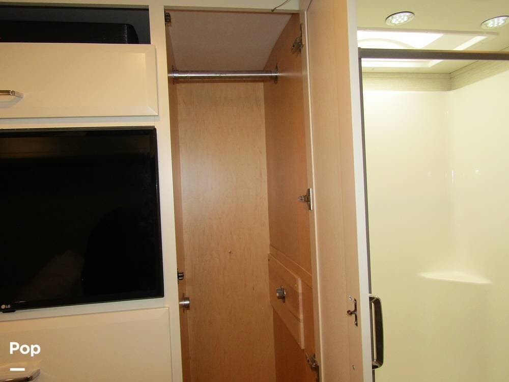 From first glance, it's easy to tell how well she's been cared for, and externally, it features Auto-leveling, an ONAN 3.2 kW generator, aluminum wheels, a solar panel, lockable, pre-wired external TV storage, a power patio awning with gull-wing-type extension, rear and side-view cameras, plus lots of storage space for all your camping gear.