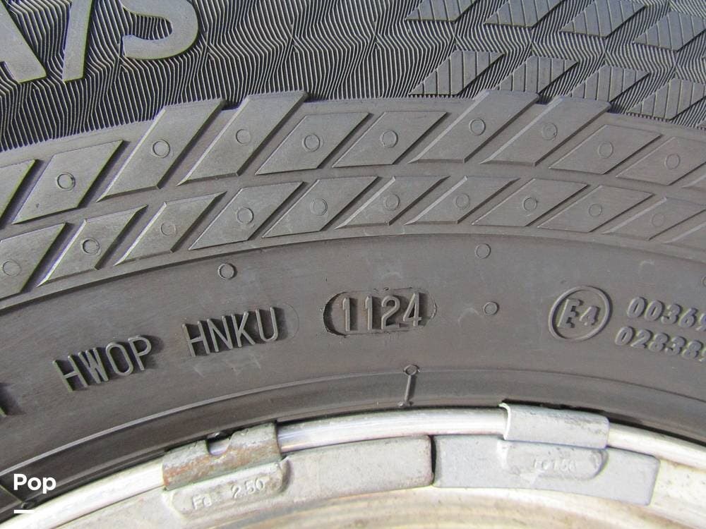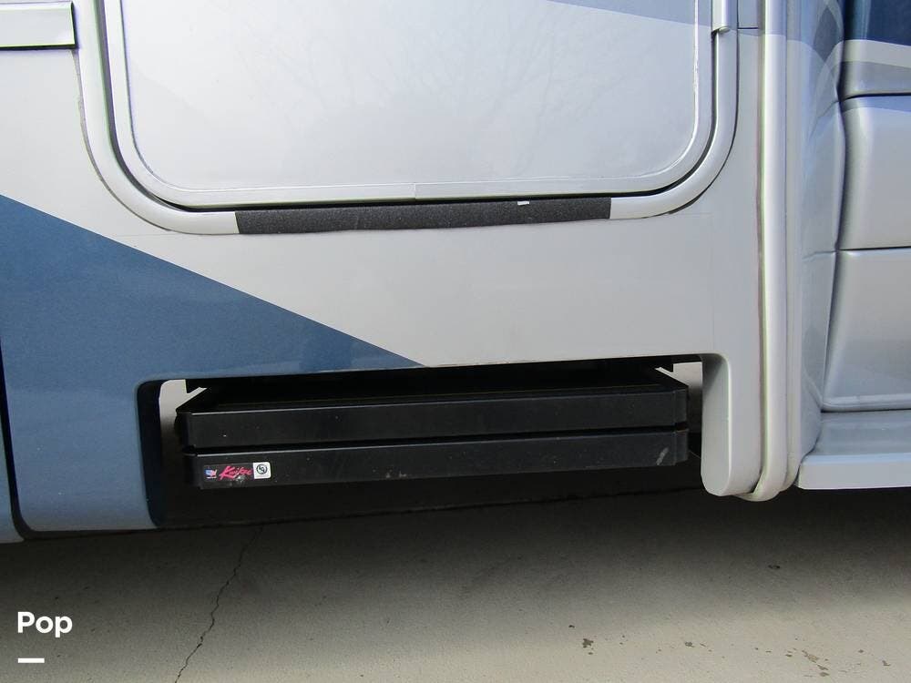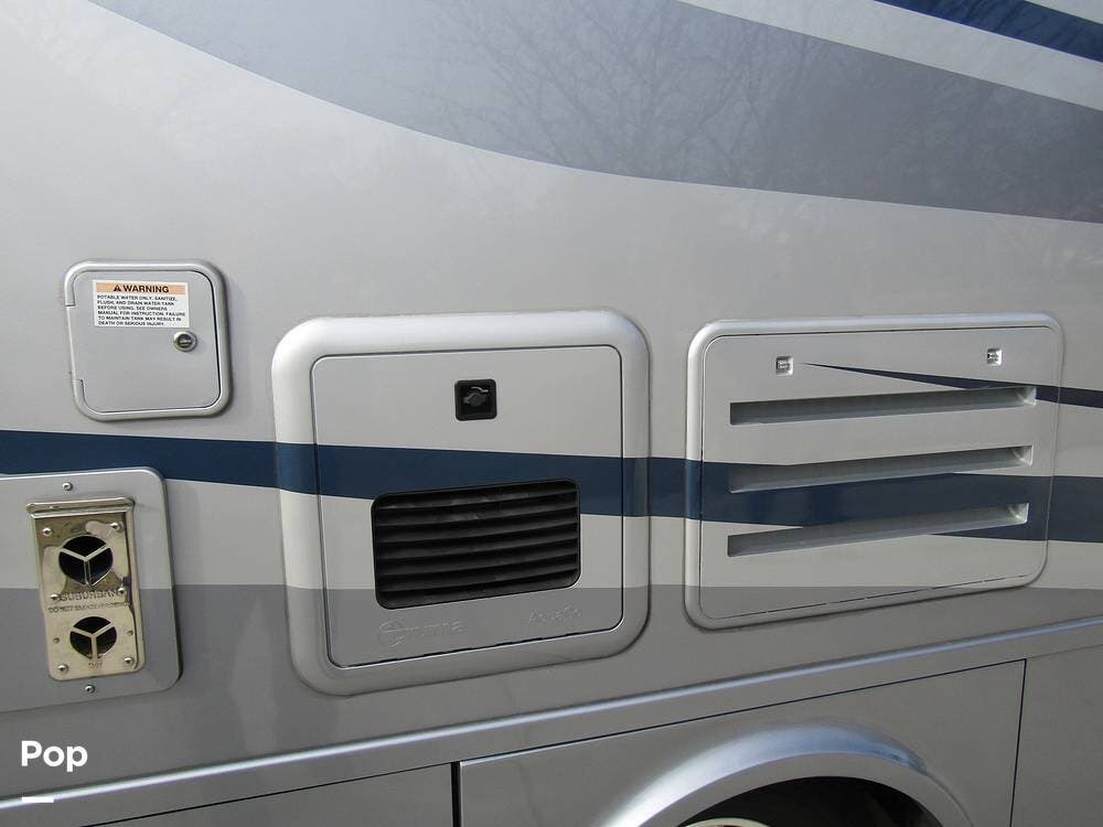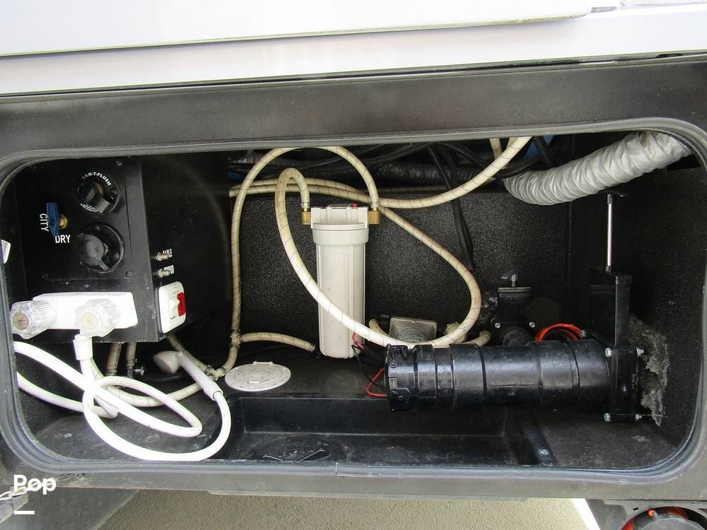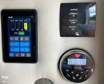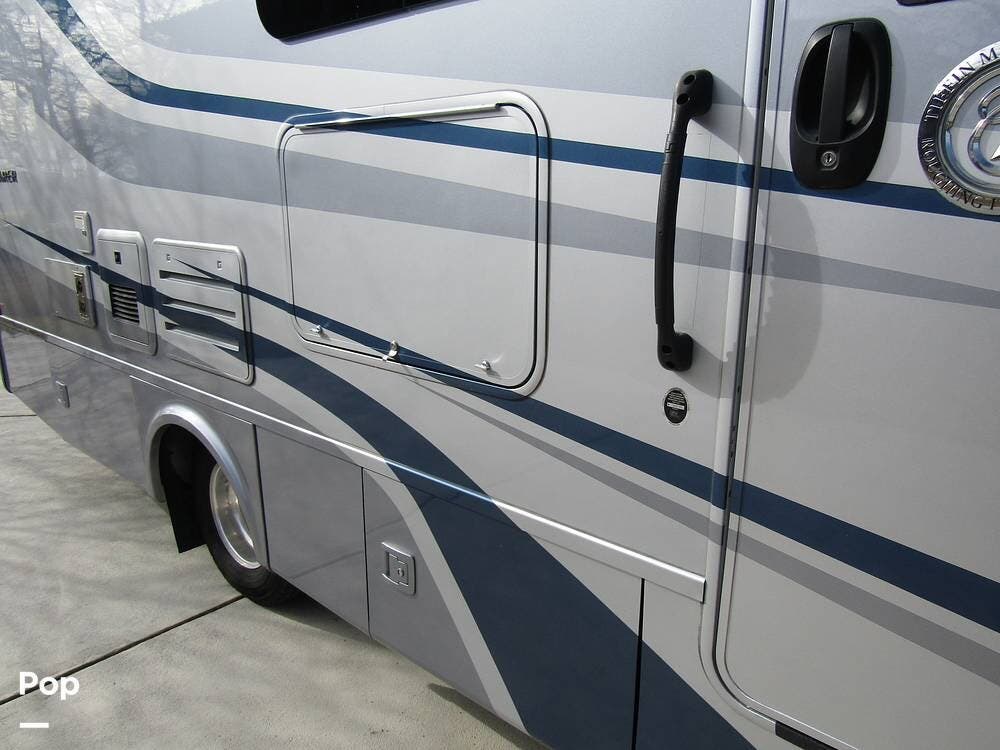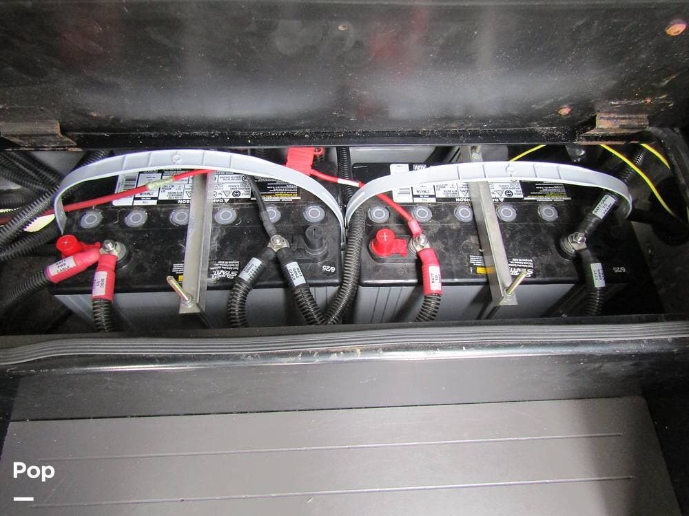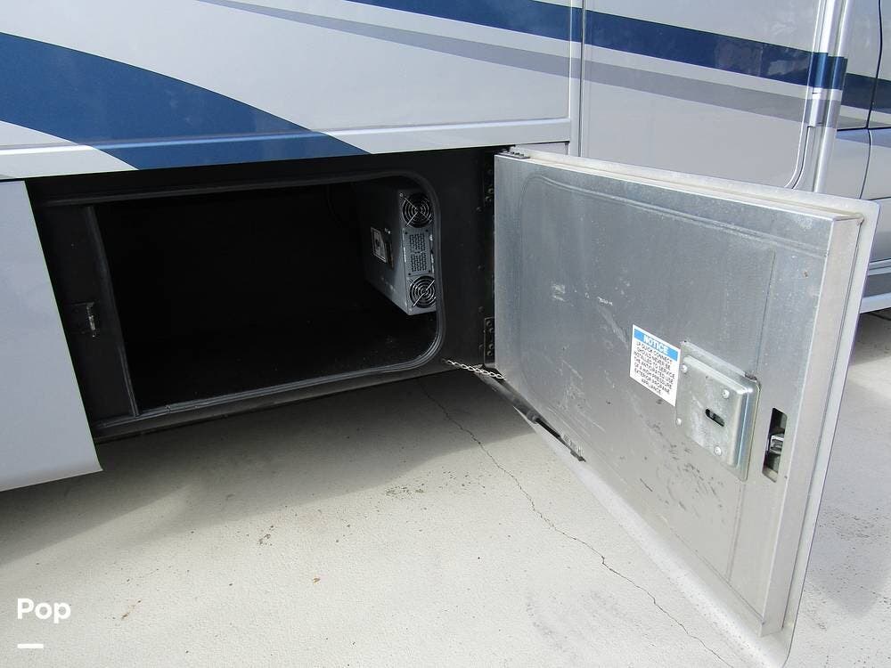 From first glance, it's easy to tell how well she's been cared for, and externally, it features Auto-leveling, an ONAN 3.2 kW generator, aluminum wheels, a solar panel, lockable, pre-wired external TV storage, a power patio awning with gull-wing-type extension, rear and side-view cameras, plus lots of storage space for all your camping gear.