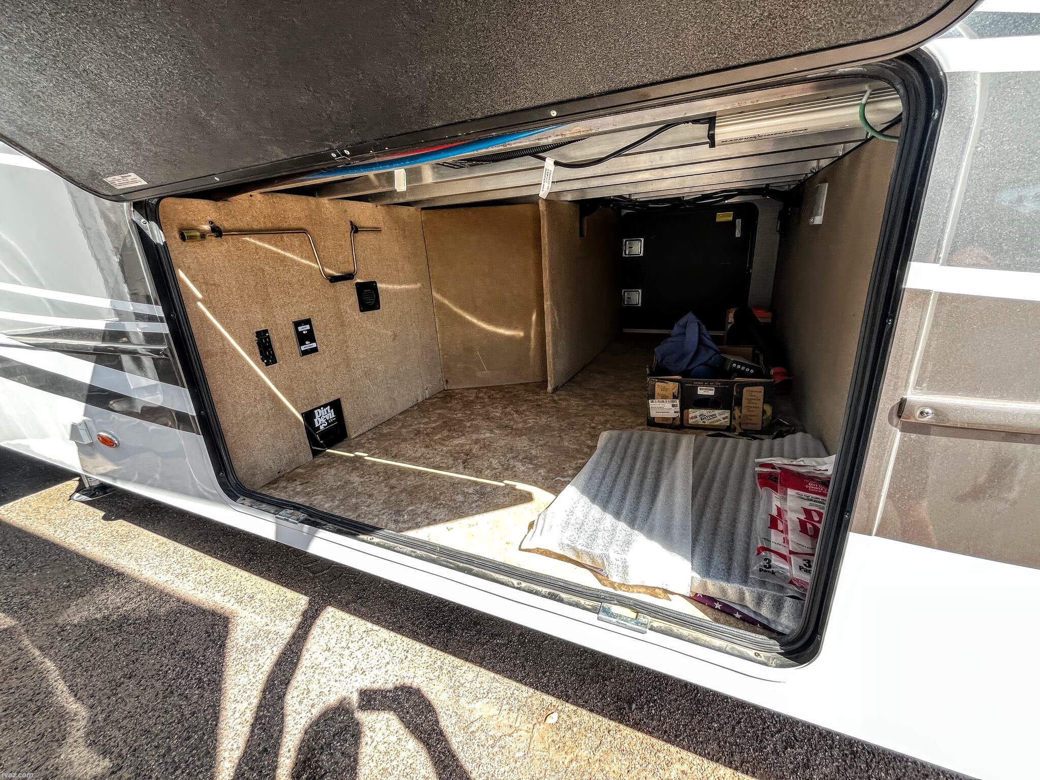 Automatic Leveling Jacks, Black Tank Flush, Enclosed Underbelly, Exterior Speakers, External Shower, Fiberglass Sidewalls, Full Body Paint, Heated Underbelly, Ladder, Leveling Jacks, Pass Thru Storage, Power Awning, Power Roof Vent, Screen Door, Skylight, Slideout, Slide-out Awning, Tinted Windows -