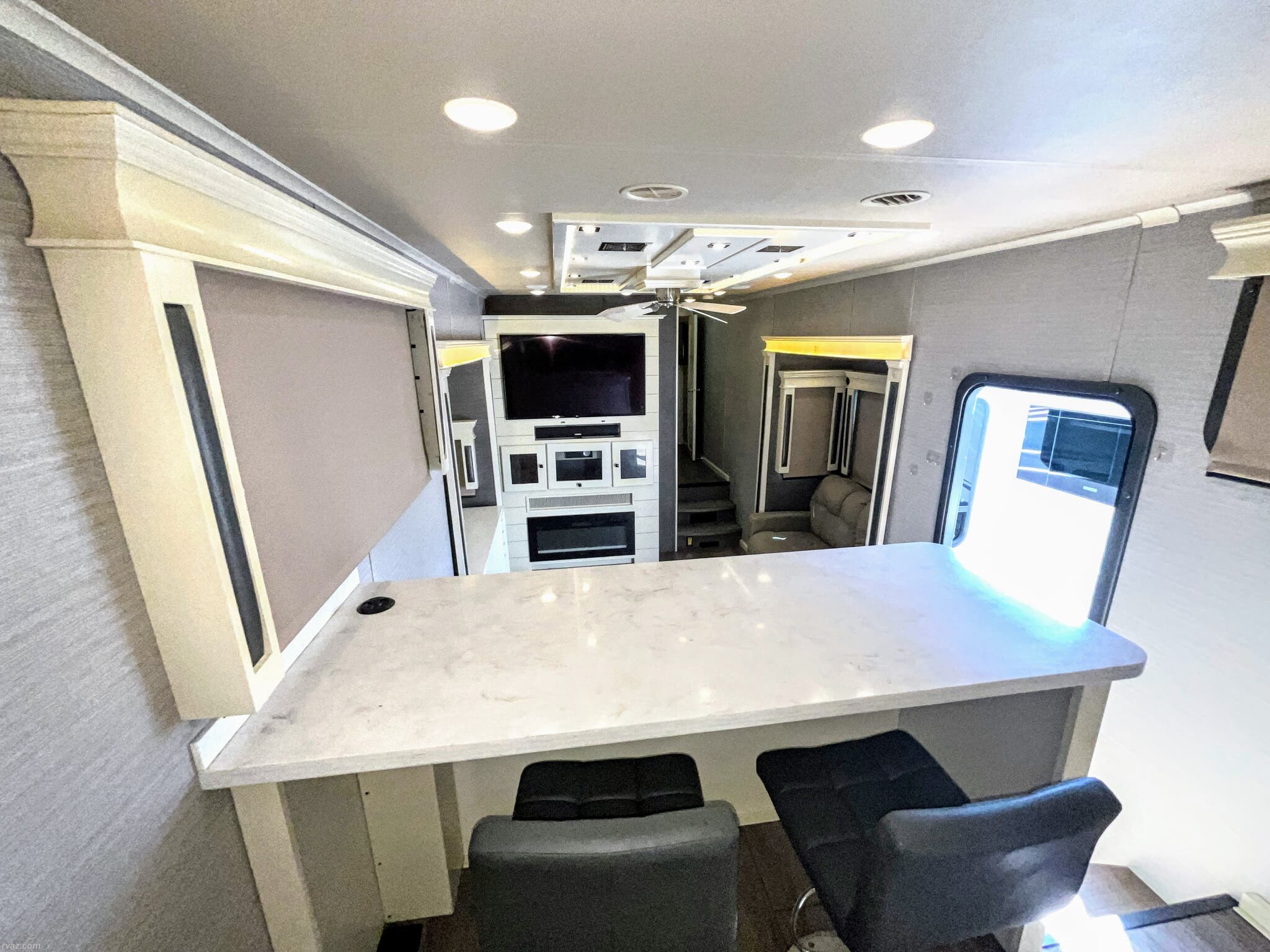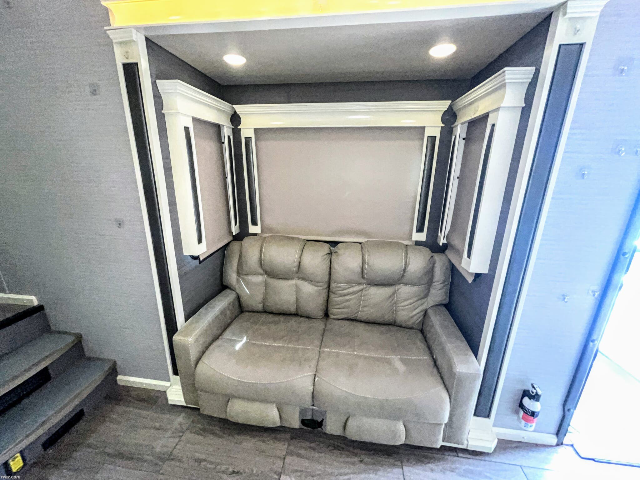 This fifth wheel doesn’t just offer space; it offers organized space. With 5 slide-outs, you can expand your living space at the push of a button. The clever layout optimizes functionality, making it suitable for both family gatherings and romantic getaways alike.