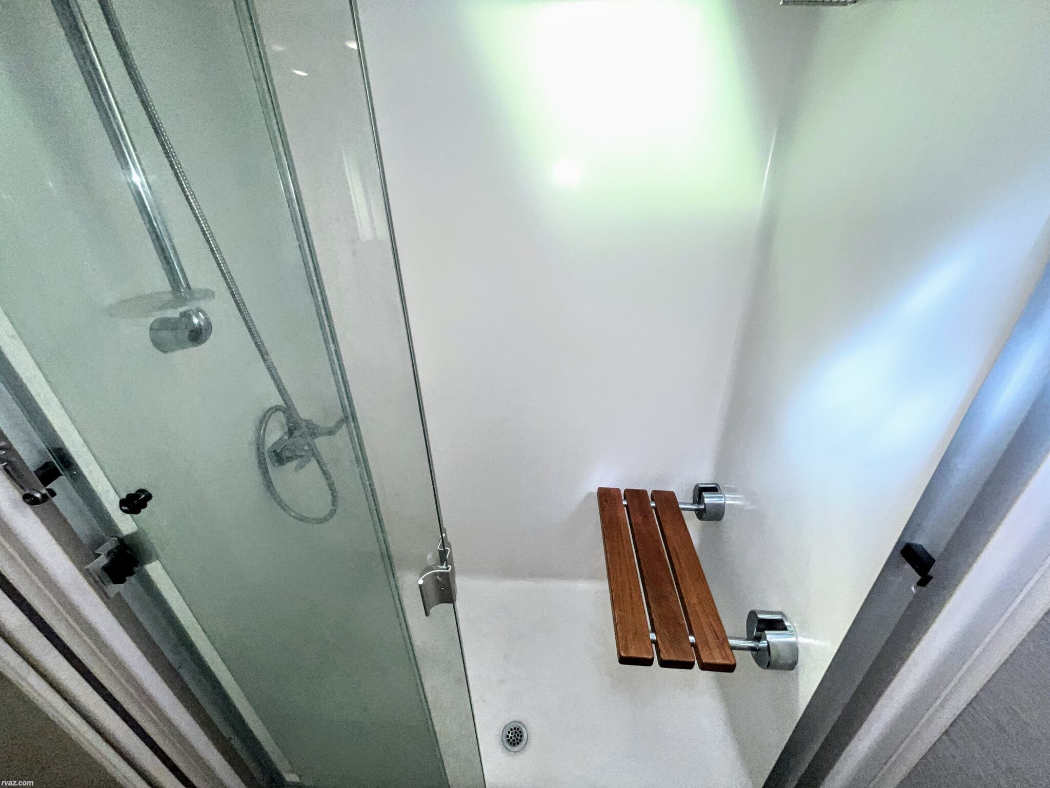Ceiling Fan, Central Vacuum, Fireplace, Free Standing Dinette w/Chairs, King Size Bed, Medicine Cabinet, Non-Smoking Unit, Overhead Cabinetry, Rocker Recliner(s), Roof Vents, Self Contained, Shower, Toilet -