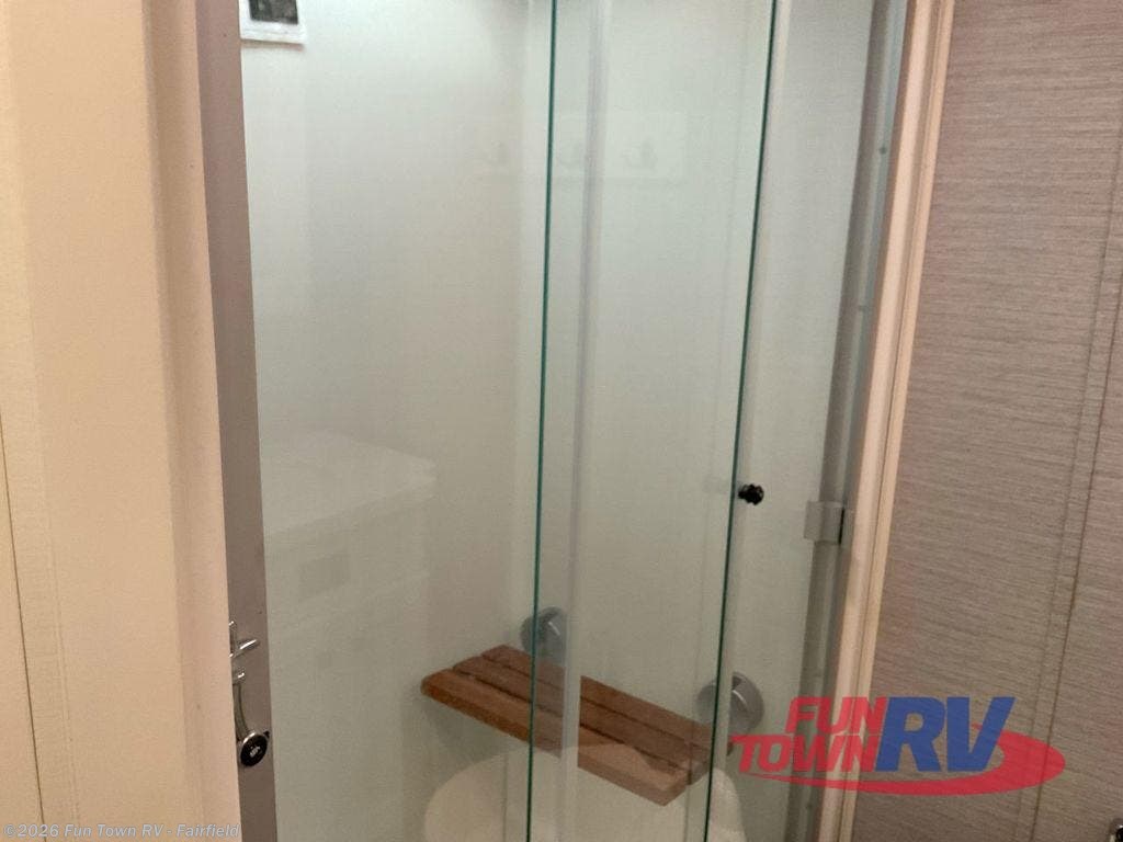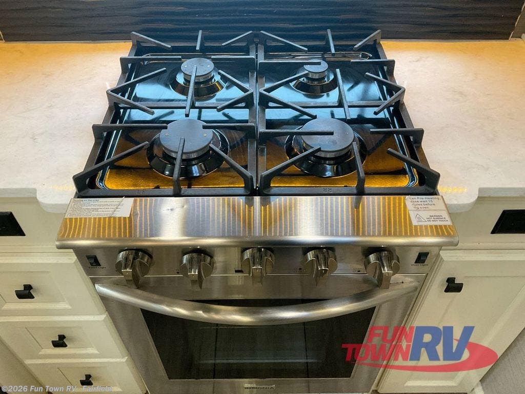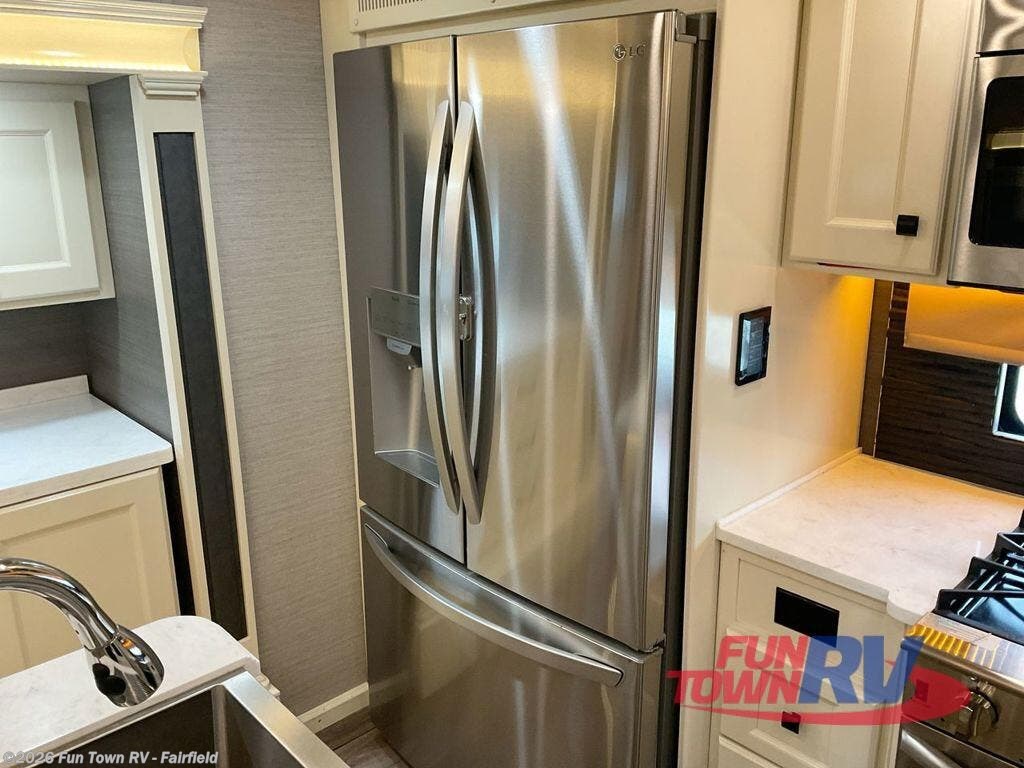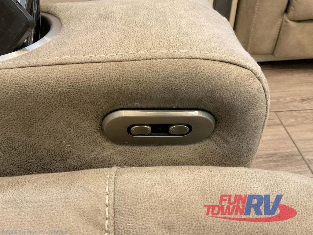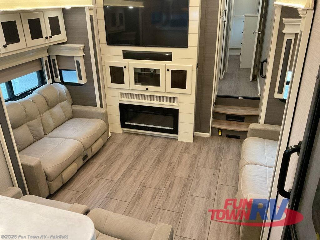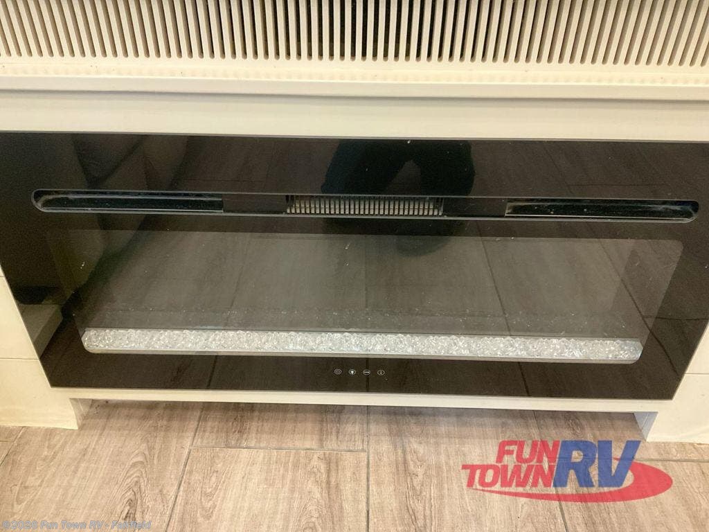 You will thoroughly enjoy every minute spent in this luxurious fifth wheel. Each room is packed with high-end features, such as a Chef Collection oven and cooktop, a residential refrigerator, a 40" fireplace, and a spacious 48" x 30" shower with a seat. While the chef of the family is preparing dinner, the kids can color at the bar style dining table that has a great view of the 55" TV. Within the main living area you will find dual tri-fold sofas within the dual opposing slides, plus a 60" theater sofa for complete comfort. Everyone can easily clean up in the spacious full bath that includes dual bath sinks and a medicine cabinet for your necessities, plus there is a hall closet conveniently located just outside the door to grab a clean towel on your way to shower. You and your spouse will fall in love with the front bedroom that includes a slide out king bed, a Hi-Boy dresser with a TV above, a window seat cabinet, and a large front closet with sliding doors to store your clothes. There is even a space to add an optional washer and dryer for your convenience.