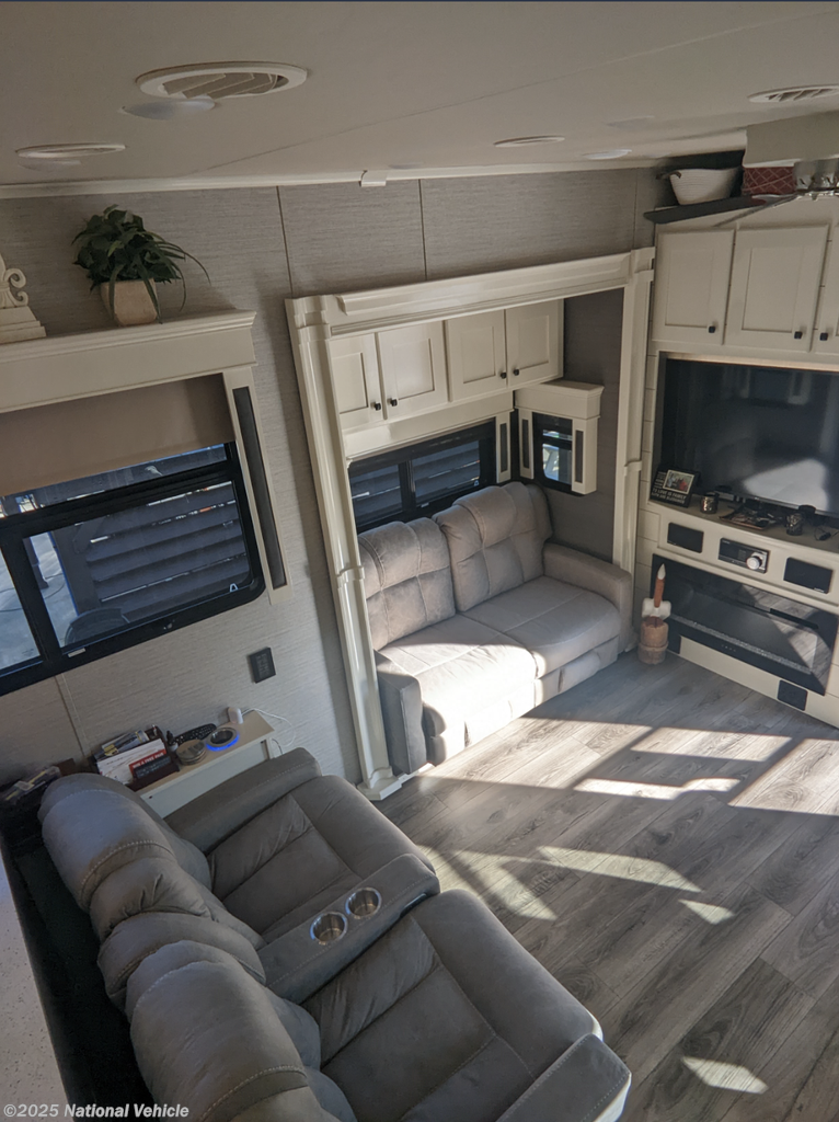 Step into residential luxury with this 2021 Vanleigh Vilano, a high-end fifth wheel designed for full-time living, extended travel, and those who expect premium comfort wherever they roam. At 42' 4", this beautifully crafted coach combines spacious design, elegant finishes, and the superior build quality Vanleigh?backed by Tiffin?has become known for.