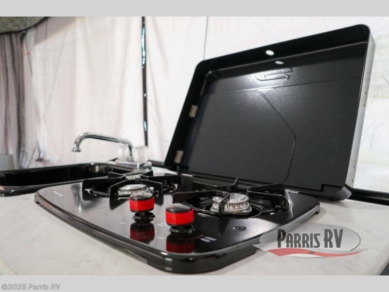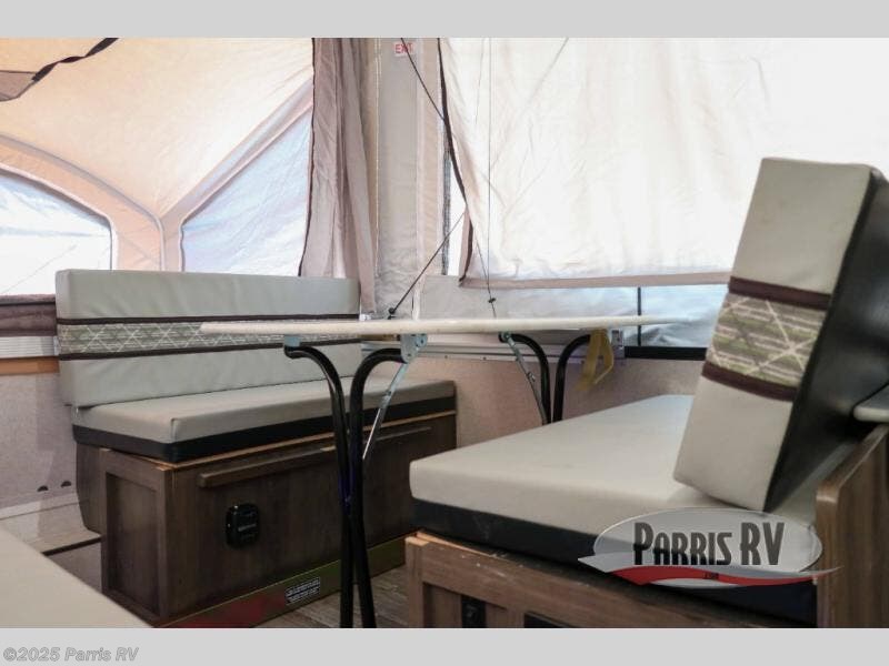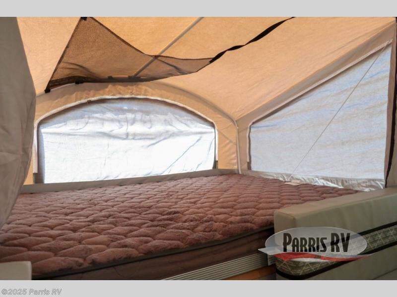 A family of six will love having their own sleeping accommodations at night after exploring outdoors all day! From the king-size tend end bed up front and the queen-size tent end bed in the rear to the dinette table and seating plus gaucho, you can sleep six. The cook will appreciate the E-Z swing galley with drawer, a two-burner high output range to make hot meals and a deep bowl acrylic sink to keep the dishes clean. There is storage found throughout, plus options to choose from such as adding a bathroom package, a 40 or 80 watt Zamp portable solar panel, a "Jack It" bike rack, an optional sliding exterior storage box and more.