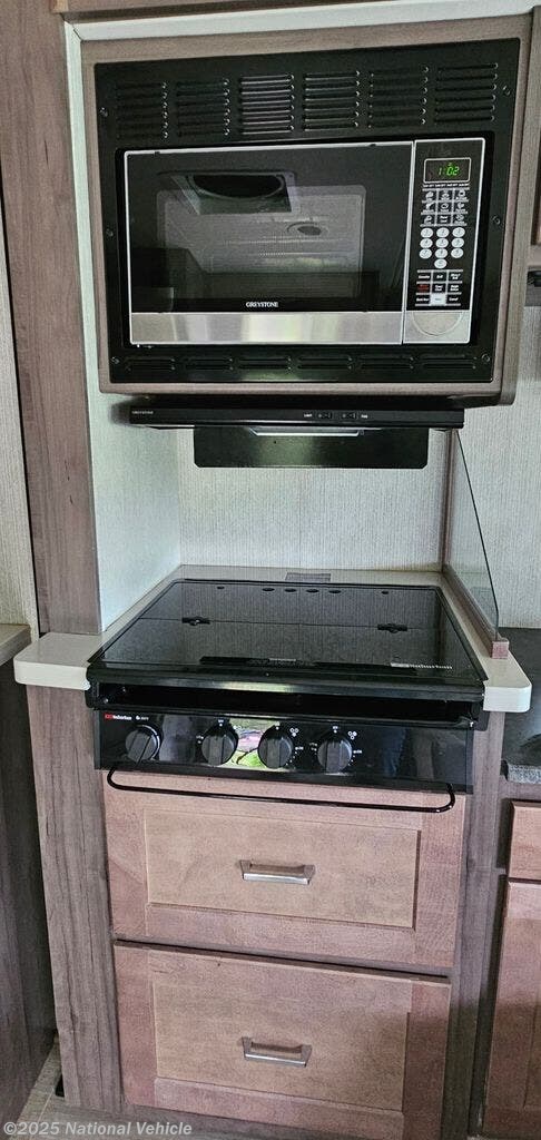 Other premium features include a 5.5kW Onan generator, automatic hydraulic leveling, power awning with LED lighting, dual A/C units, solar prep, exterior entertainment center, and ample basement storage. With sleeping for up to 6 and all the modern comforts of home, this coach is ideal for both weekend trips and extended travel.