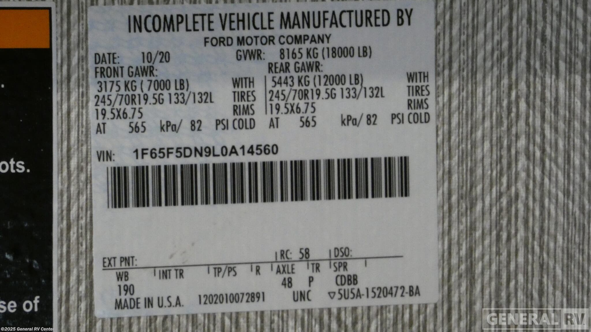 - VIN1F65F5DN9L0A14560