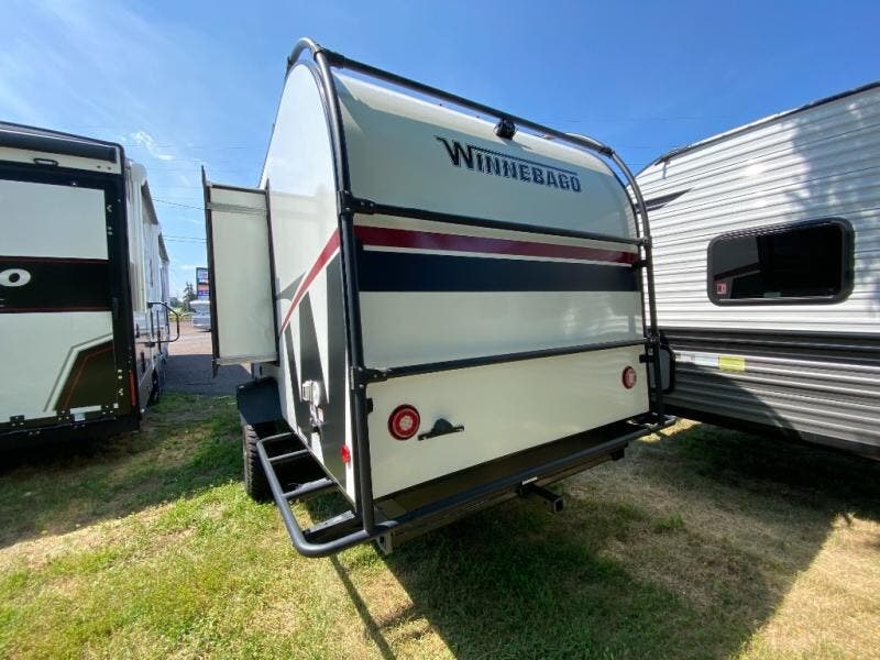 Each one of these Winnebago Industries Towables Hike travel trailers will take you off the beaten path with off-road tires, offset wheels, and robust fenders! The front multi-use gear storage lets you pack in more adventure with space for a battery, LP tanks or adventure gear. Their rugged exoskeleton lets you securely attach a bike or kayak with an exterior powder coated rack system. The exterior fiberglass sidewalls come with an Azdel substrate for an easier tow, and the NXG engineered frame will hold up through all of your adventures. Crank up the tunes with the exterior speakers and relax underneath the power awning with LED lighting!