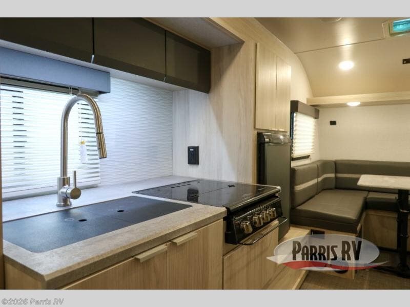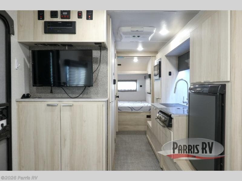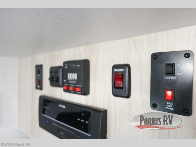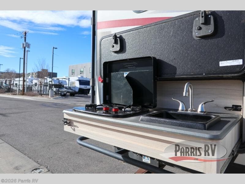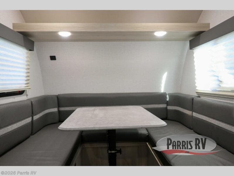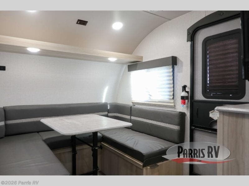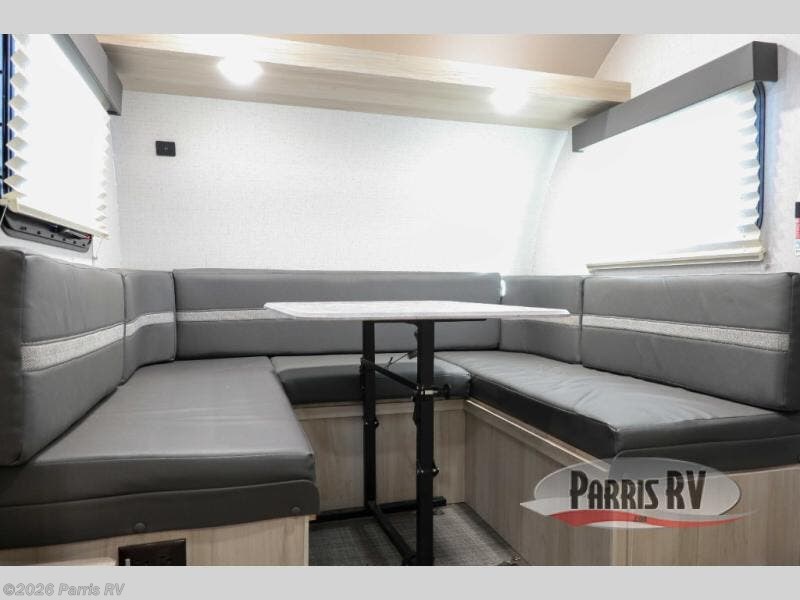 Head out on your greatest adventure with this travel trailer! The rear private bedroom features a sliding door, a RV queen bed, and a wardrobe to hold your clothes. You can start each morning feeling clean and fresh from the full bathroom and across from the bathroom is a storage area to keep your kitchen essentials. There is also a pantry to store your favorite snacks for movie night with the LED TV. The front U-shaped dinette is not only a comfortable place to enjoy your meals at or play games, but can also transform into an extra sleeping space for a guest or two!