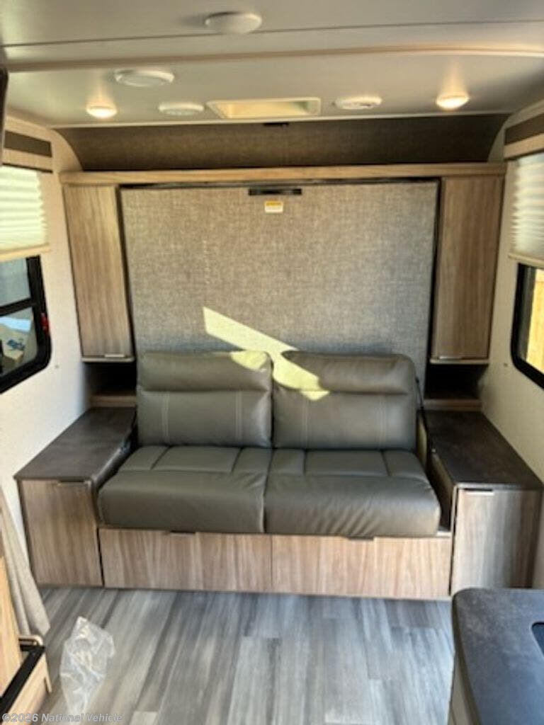 Inside, the 2108DS makes excellent use of every inch of space with a versatile front Murphy bed design. During the day, enjoy a comfortable sofa and open living area, then at night simply fold down the Murphy bed for a spacious sleeping area. The large slide-out creates additional room inside, while the roomy dinette offers a great place to dine, relax, or convert into extra sleeping space for guests. This floorplan comfortably sleeps up to four.