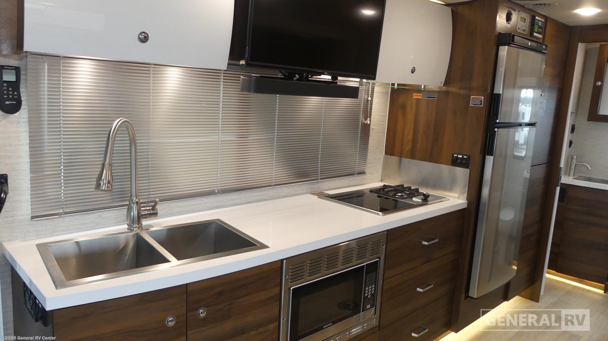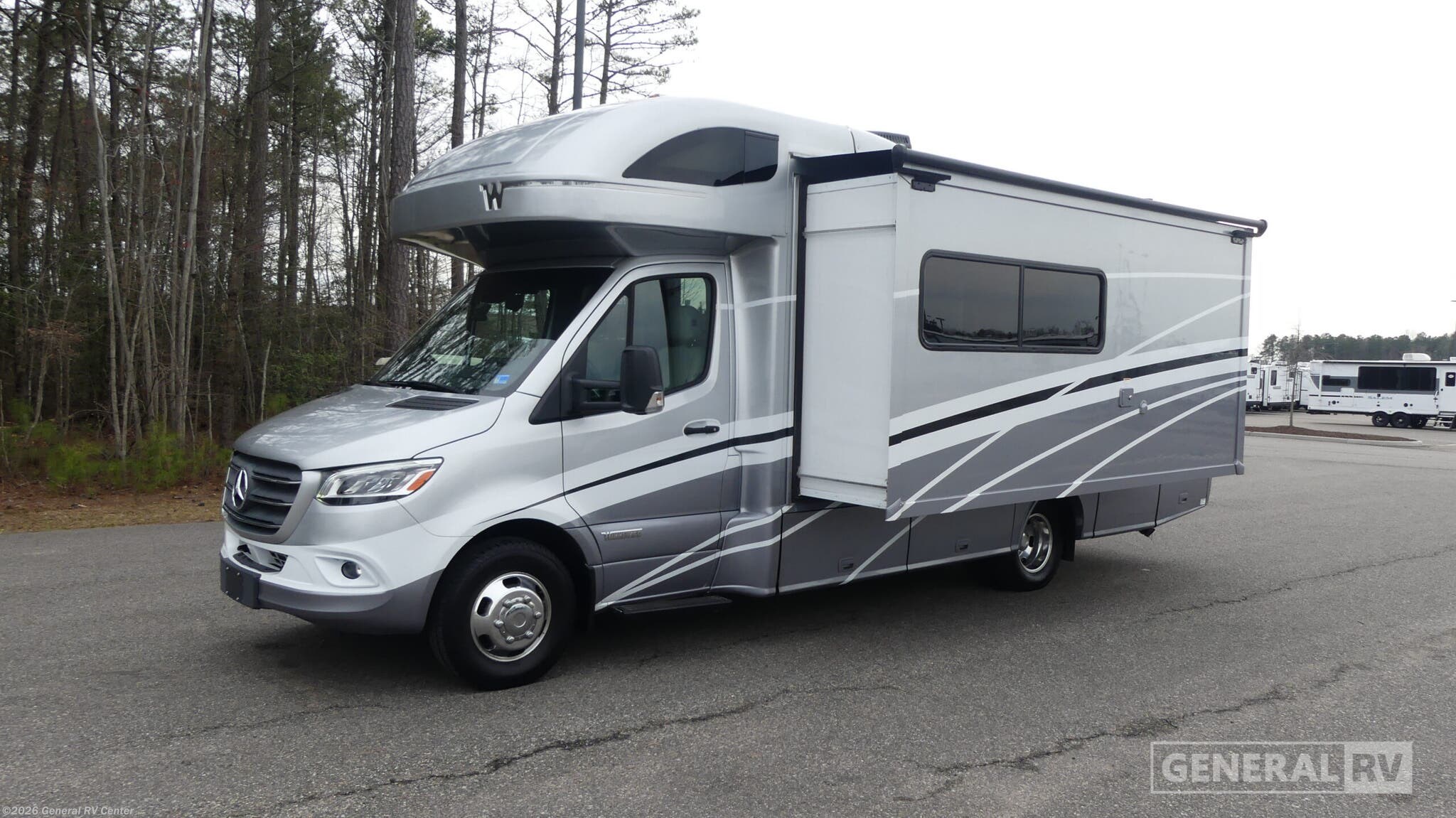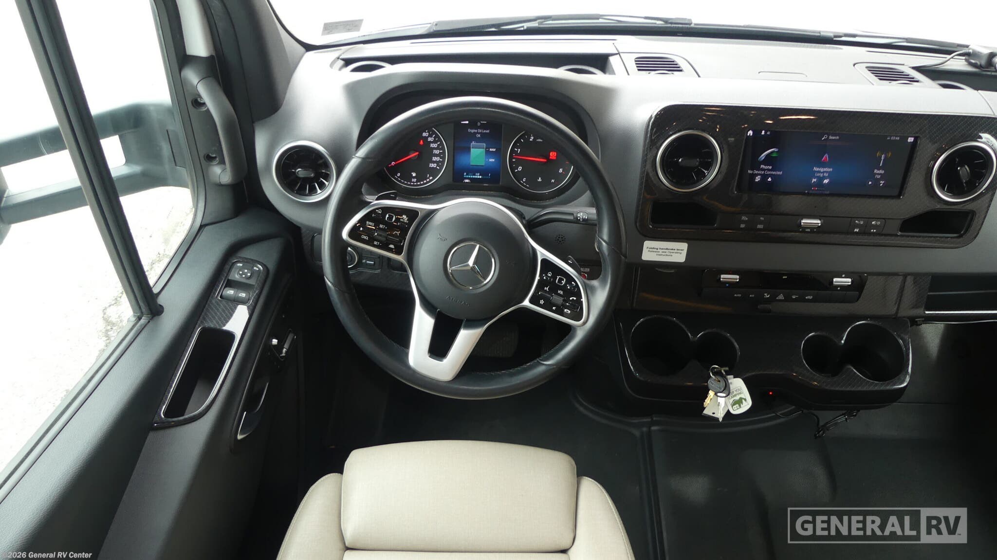 Experience the road like never before with the 2021 Winnebago Navion 24D. Crafted on a robust Mercedes-Benz Sprinter chassis, this RV combines luxury with performance, making every journey a delight. Its sleek 25.5-foot frame houses a world of comfort, featuring a spacious interior with a clever layout that maximizes every inch. The centerpiece is a versatile Murphy Bed that easily transforms the living area into a restful retreat. Complemented by a cozy U-shaped dinette and a cabover bunk, it comfortably sleeps up to six, perfect for family adventures or a getaway with friends. The Navion 24D is designed for modern living on the move. A full-size refrigerator and two-burner cooktop make meal preparations a breeze, while the convection cooking option adds versatility. The center kitchen and front living area create a welcoming space for dining and relaxation, with a powered retractable awning extending your living space outdoors. Stay refreshed with ample water capacities and a well-appointed rear bath featuring a plastic/glass shower enclosure. With a powerful Mercedes-Benz V6 engine under the hood, you'll enjoy a smooth ride with plenty of power to tow up to 5,000 pounds. Discover the perfect blend of luxury and practicality with the Winnebago Navion 24D. Visit your nearest General RV dealership to explore this exceptional RV and start your adventure today!