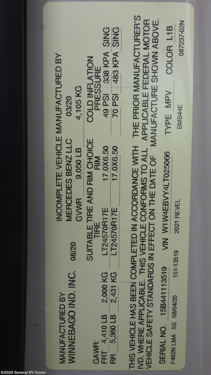 Request More Info on this 2021 Winnebago Revel 44E Offered for sale by General RV Center