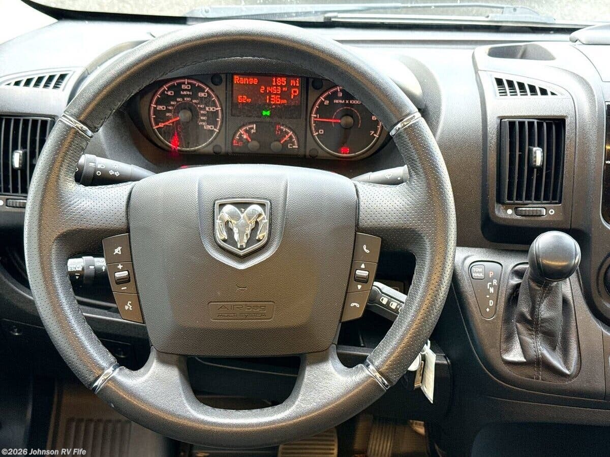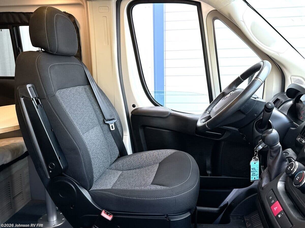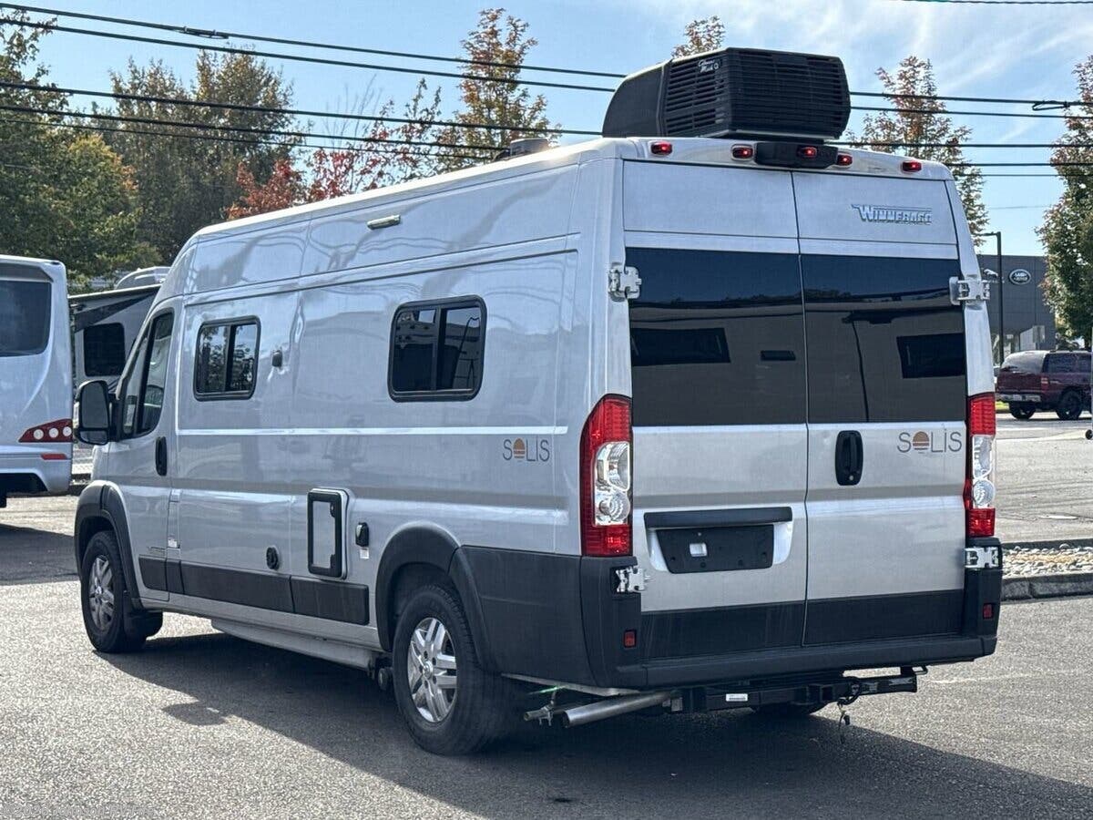 The 2021 Winnebago Solis is a versatile and compact Class B RV designed to offer both comfort and functionality for adventurous travelers. Built on the reliable Ram ProMaster chassis, this vehicle combines the power of a 3.6L V6 engine with 280 horsepower and an automatic transmission, ensuring a smooth and efficient drive. Its front-wheel-drive system enhances maneuverability, making it ideal for both city streets and winding country roads. Exterior features of the Winnebago Solis are designed with convenience and safety in mind. The vehicle is equipped with 4-wheel ABS brakes and a trailer hitch with a 4-pin connector, providing stability and towing capability. The crosswind assist feature adds an extra layer of safety during windy conditions. For easy access, the Solis includes an aluminum running board and an entry assist handle. A porch light enhances visibility during nighttime entry and exit. Inside the cab, the Solis offers a range of features to enhance the driving experience. Swivel cab seats provide flexibility and comfort, while power locks and windows add convenience. The radio rearview monitor and digital rearview mirror improve visibility and safety. Additional features such as cruise control and 12v powerpoints ensure a comfortable and connected journey. The living spaces within the Solis are thoughtfully designed to maximize comfort and utility. Heavy-duty vinyl flooring is both durable and easy to clean, while LED ceiling lights create a bright and inviting atmosphere. Tinted windows and zipped window coverings offer privacy and protection from the elements. Side and rear screen doors allow for ventilation without the intrusion of insects. The dining area is equipped with modern amenities to make meal preparation a breeze. A laminate countertop provides ample workspace, complemented by a stainless steel sink and a refrigerator for food storage. The 2-burner range top, complete with a glass range top cover, allows for versatile cooking options. A deluxe vent fan ensures proper ventilation during meal preparation. Electronics and mechanical systems in the Solis are designed to support off-grid adventures. The systems center and USB charge ports keep devices powered and connected. A solar panel and controller, along with a 30-amp service cord and 55-amp converter, provide reliable power management. The automatic dual battery charge control and battery disconnect switch ensure efficient energy use. The water center control panel and outdoor wash station add convenience for extended stays in nature. Overall, the 2021 Winnebago Solis is a well-equipped and thoughtfully designed RV that caters to the needs of modern travelers. Whether you're embarking on a weekend getaway or a cross-country adventure, the Solis offers the comfort and functionality to make every journey memorable. ??