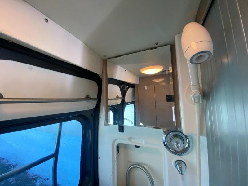 Efficiency meets comfort in the Travato Class B gas motorhome by Winnebago. The 215-watt solar panels and the energy management system allow you to go off-grid when the adventure calls for it, and the Coleman Mach 10 NDQ A/C will keep you comfortable during the hot summer months. If the weather is nice out, set up the power awning with LED lights or stay inside with the side and rear screen doors closed to keep the bugs out. Each model includes plenty of storage space, including RAM Tough-Track Mounts throughout, Anything Keepers, plus below floor storage for your outside gear. The Travato also includes a Corian countertop and a spice rack in the galley, a convenient medicine cabinet and mirror in the bath, plus LED ceiling lights throughout to keep everything bright and open!