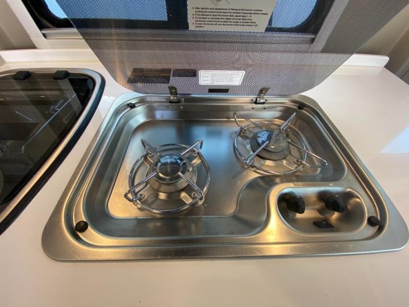 Pack your bags and head out across the country in this gas motorhome! The two twin beds can convert to a full-size bed if you're traveling with your friend or spouse, and there is a convenient rear wet bath to freshen up every day. Prepare breakfast on the two burner cooktop, or use the convection microwave, and the pull-out counter extension will give the chef more space to prep. The drivers seat can swivel to use this counter as a table, and the swivel passenger seat can use the additional pull-out/flip-out table for coffee. Spend your evening watching a movie on the 24" HDTV, or head outside to sit under the 13' power awning with LED lights!