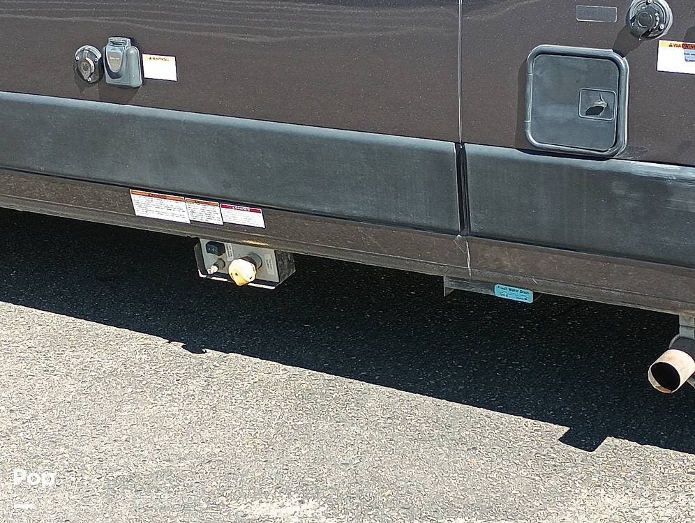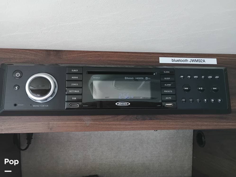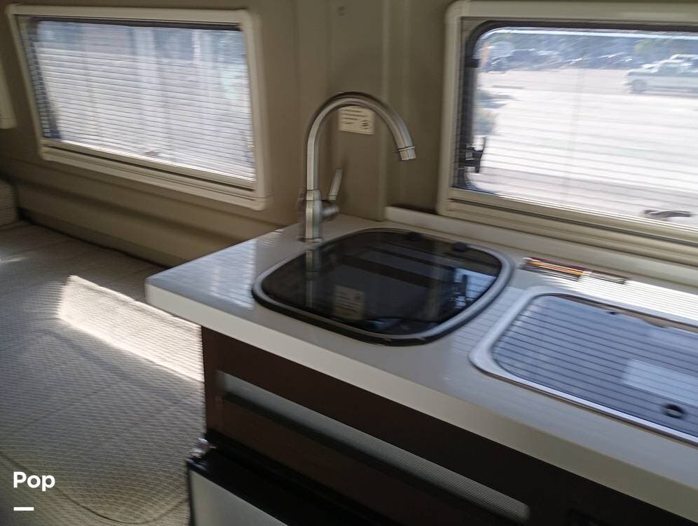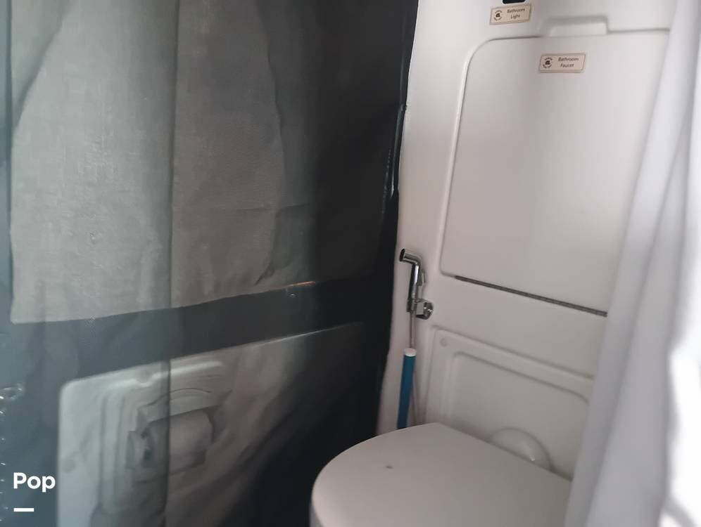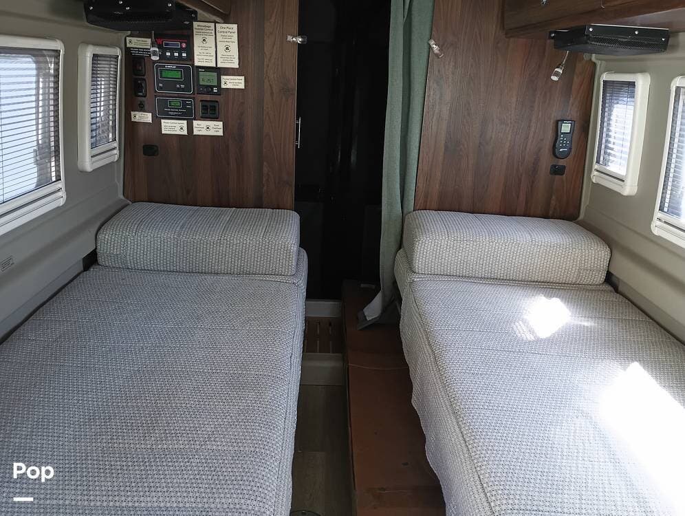 The sleeping area is located mid-rear, while the lavatory is situated at the full rear and features a full wet bath with a shower that can be used inside or outside. Behind a heavy privacy curtain lies your 54 x 76 flex-bed system.