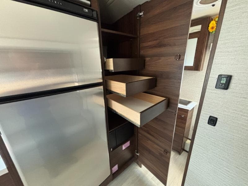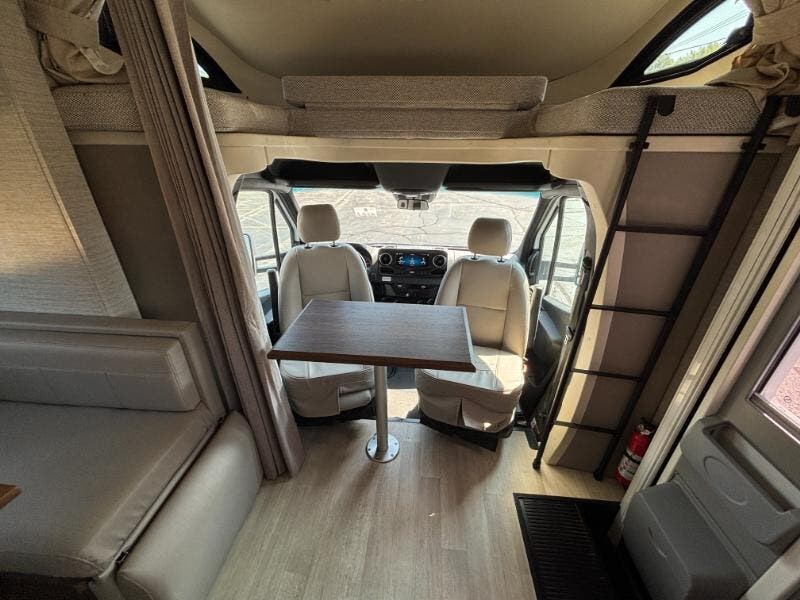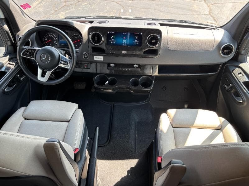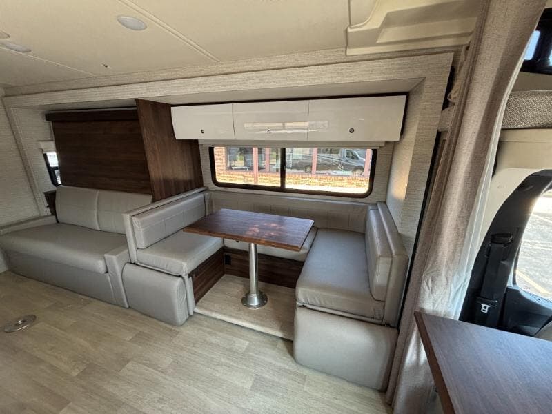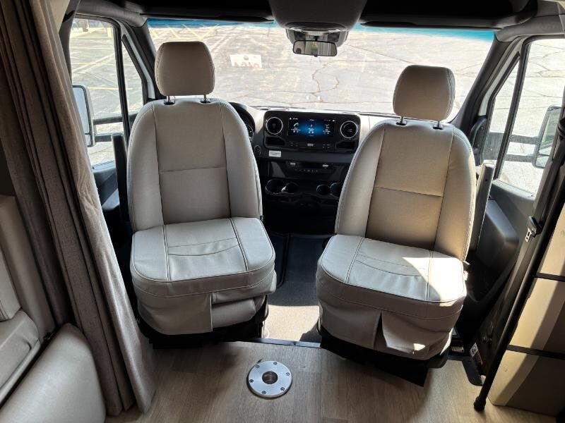 The 2021 Winnebago View 24D is a versatile and luxurious Class C RV, designed to offer comfort and convenience for travelers seeking adventure on the open road. Built on the reliable Mercedes-Benz Sprinter chassis, this RV combines performance with a host of modern amenities to ensure a memorable journey. Under the hood, the Winnebago View is powered by a robust 3.0L 6-cylinder turbo diesel engine, delivering 188 horsepower. It features a 220-amp alternator and a 5-speed Tip-Shift automatic transmission, providing smooth and efficient driving. The adaptive ESP technology and hydraulic brakes with ABS enhance safety and control, while the stainless steel wheel liners and Alcoa forged aluminum wheels add a touch of elegance. Additionally, the RV is equipped with a 5000-pound trailer hitch, making it capable of towing additional gear or vehicles. The cab of the Winnebago View is designed with comfort and functionality in mind. It includes: - SuperShell sleeper deck - Cabover bunk with a privacy curtain - Fully adjustable seats that recline, swivel, and slide - 3-point seat belts - Driver and passenger airbags - Auxiliary start switch - Color touch screen with a handheld remote - Color rear camera - Power windows and mirrors - LED headlights - Adaptive cruise control - Lane keeping assist and braking assist Inside, the living spaces are thoughtfully designed to maximize comfort and usability. Features include: - Power patio awning with LED lighting - LED porch light with indoor switch - Running board and automatic entry steps - Stepwell light - Vinyl flooring and soft vinyl ceiling - Tinted coach windows with MCD solar blackout roller shades - Galley mini blinds - Handcrafted furniture with curved overhead cabinets - Power ceiling fan with rain cover The dining area is both stylish and functional, featuring: - Sprung cushion dinette seats - Full extension drawer guides - Laminate countertops with a frosted galley backsplash - Lighted galley drawers - Stainless steel sink with cold water filtration - Two-door refrigerator - 2-burner range with glass cover - Hybrid gas induction cooktop - Convection microwave oven For entertainment and connectivity, the Winnebago View is equipped with: - USB charger - LP CO smoke detectors - TrueLevel tank monitoring - Portable satellite dish hookup - Cable TV input - Amplified digital HDTV antenna - LED HDTV - AM/FM/CD/DVD/Bluetooth stereo with two speakers and subwoofer - Outdoor speakers Sleeping arrangements vary by floorplan, but privacy and comfort are prioritized with features like: - Privacy curtain - MCD blackout roller shades The bathroom is well-appointed with: - Medicine cabinet - Stainless steel vanity sink - Shower light and skylight - Retractable shower screen - Flexible shower head - Foot pedal toilet - Power vent Mechanically, the RV is equipped with: - 200w total solar power (two 100w panels) - Group 24 or 31 batteries - Coach battery disconnect switch - 30-amp service cord - 45-amp 12v converter - 3.6 MicroQuiet LP generator - 1000w pure sine inverter - 15k AC and 20k low profile furnace - Lighted service center - QuickPort service connection hatch - Lockable water fill - 12v on-demand water pump The coach build features a premium high-gloss exterior, fiberglass roof, front and rear mud flaps, and lighted cargo compartments, ensuring durability and style. Overall, the 2021 Winnebago View 24D is a well-rounded RV that offers a perfect blend of luxury, functionality, and performance, making it an ideal choice for those looking to explore the great outdoors with all the comforts of home. ??