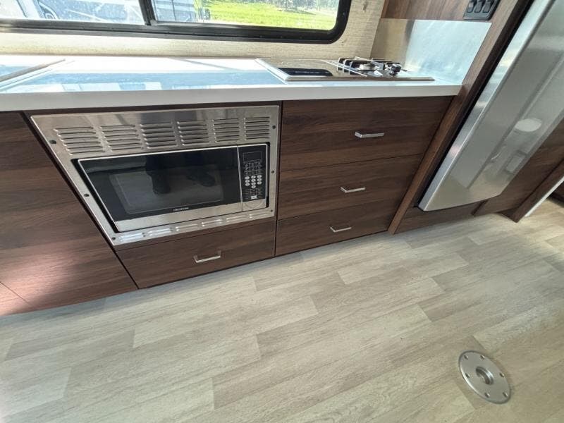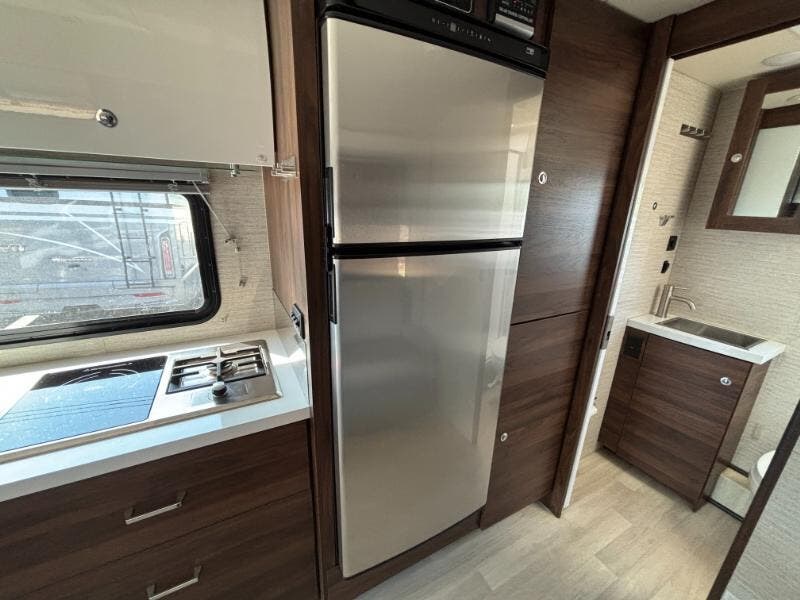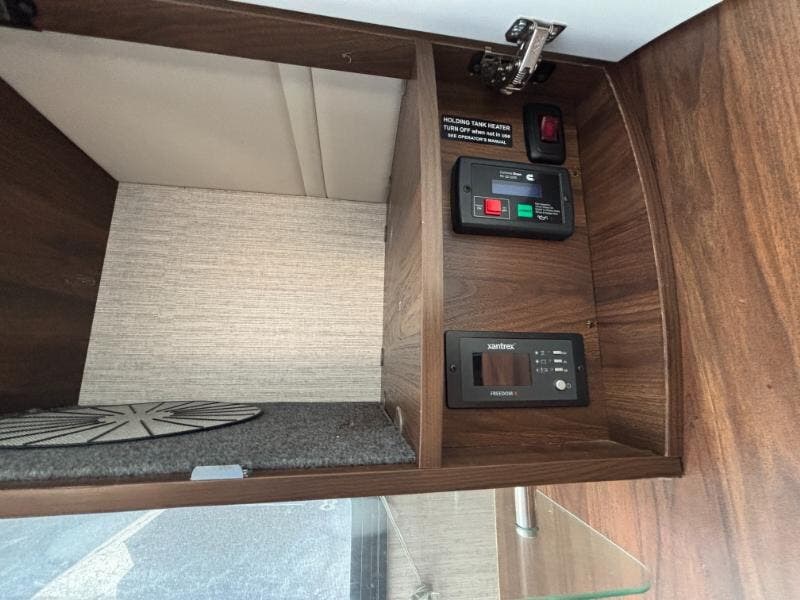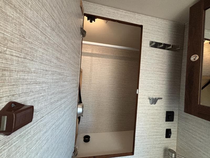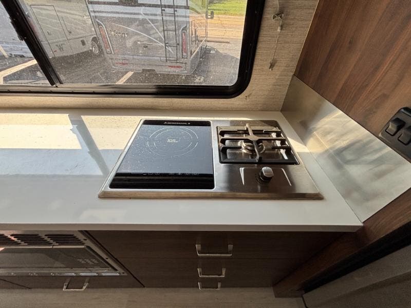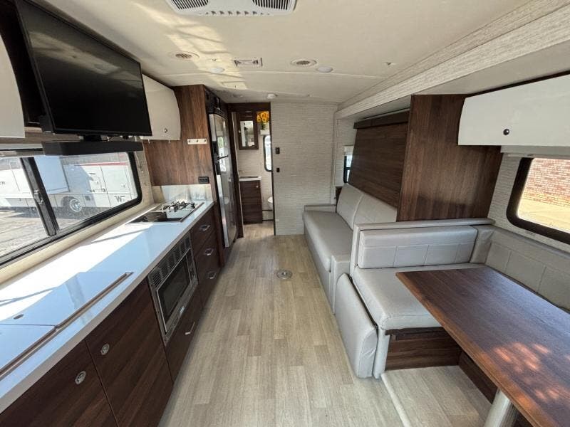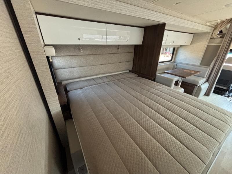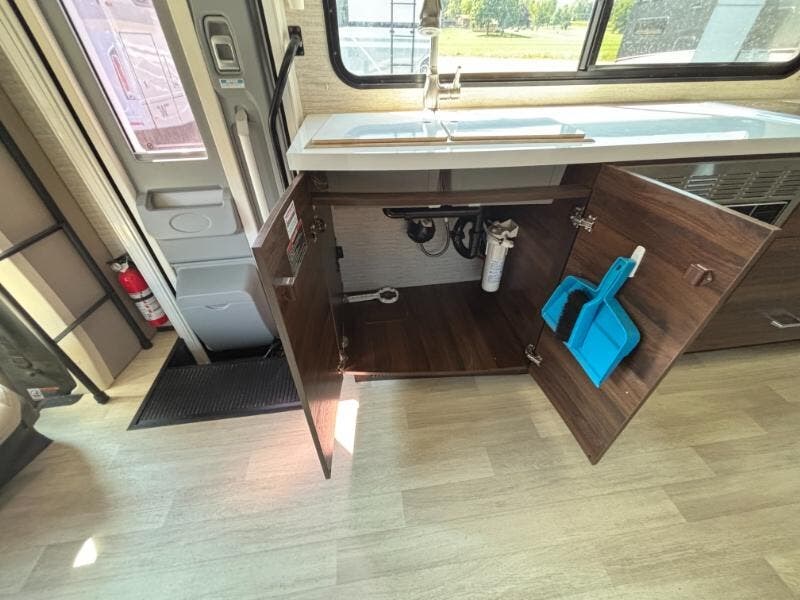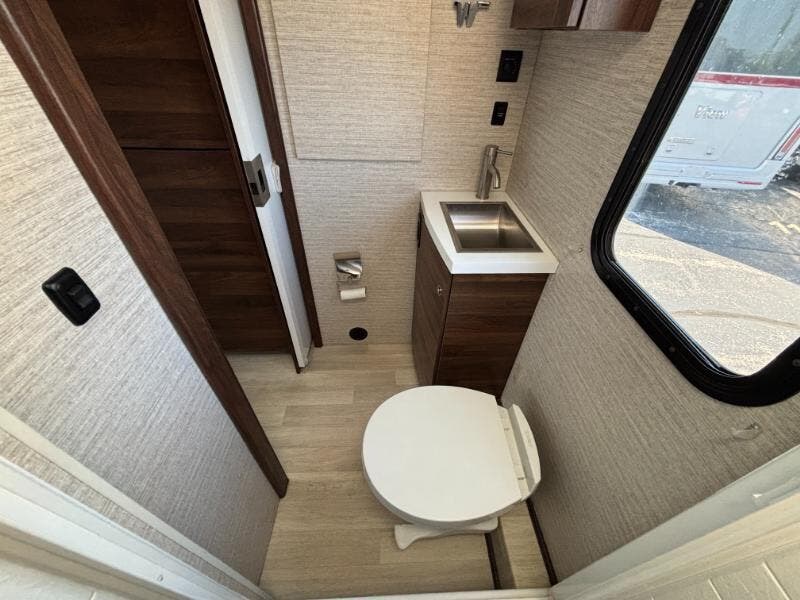 Features Include: 188 HP, 220-Amp Alternator, 3-Point Seat Belts, Color Touch Screen, Handheld Remote, Color Rear Camera, Power Windows, Power Mirrors, LED Headlights, Lane Keeping Assist, Running Board, Stepwell Light, Vinyl Flooring, Soft Vinyl Ceiling, Tinted Coach Windows, Galley Mini Blinds, Laminate Countertops, Stainless Steel Sink, USB Charger, Cable TV Input, LED HDTV, Privacy Curtain, Medicine Cabinet, Flexible Shower Head, Foot Pedal Toilet, 30-Amp Service Cord, 45-Amp 12v Converter, 15k AC, Lockable Water Fill, Fiberglass Roof