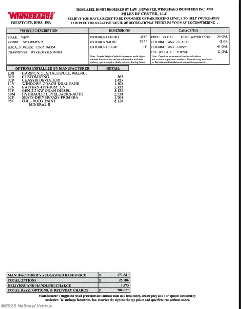 Request More Info on this 2021 Winnebago View 24D Offered for sale by National Vehicle