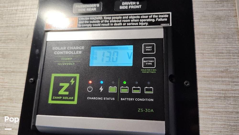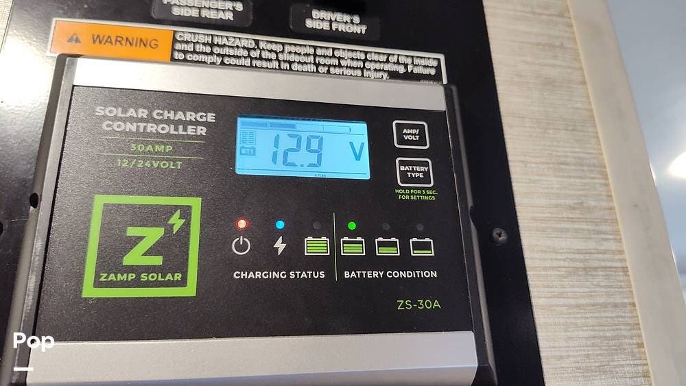 The solar panel on the roof is another feature this coach has. The solar panel keeps the house batteries charged.