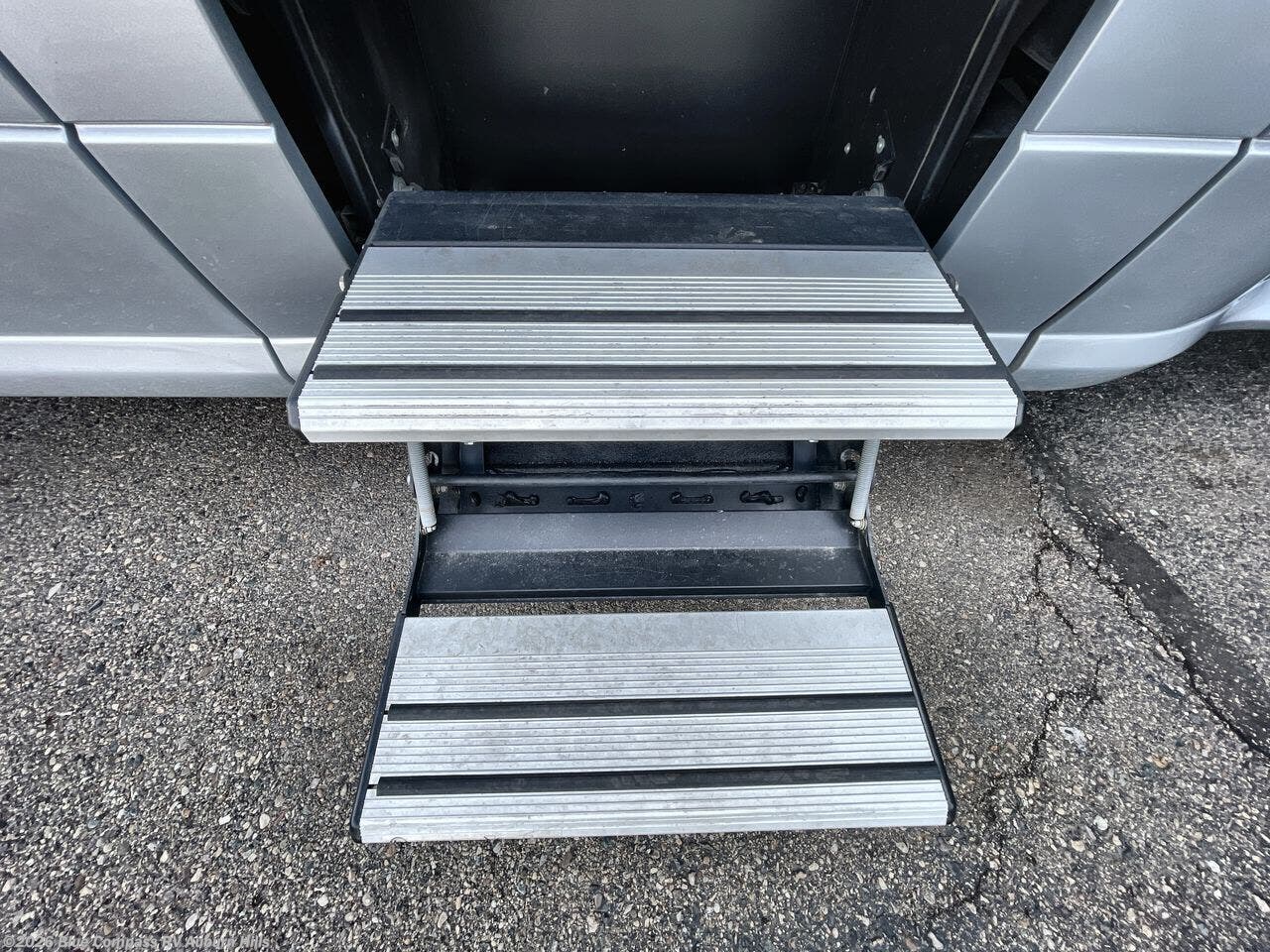 Get ready to explore, unwind and "glamp" where ever you decide! This coach brings you everything you will need, plus much much more! The power slide offers a Murphy suite that retracts and fits seamlessly with the luxury automotive body style. With a touch of a button on the multiplex control panel, you will have more floor space to relax on the reclining sofa that includes two seatbelts or pull down the Murphy bed at night. There is more seating on the captain's chairs that swivel around to face the interior, and there are two tables that adjust to different heights for your needs. The kitchen provides a two-burner gas stove and large stainless steel Kohler sink and faucet, and there is a convection microwave, a slide-out pantry and a refrigerator with freezer a few steps away.