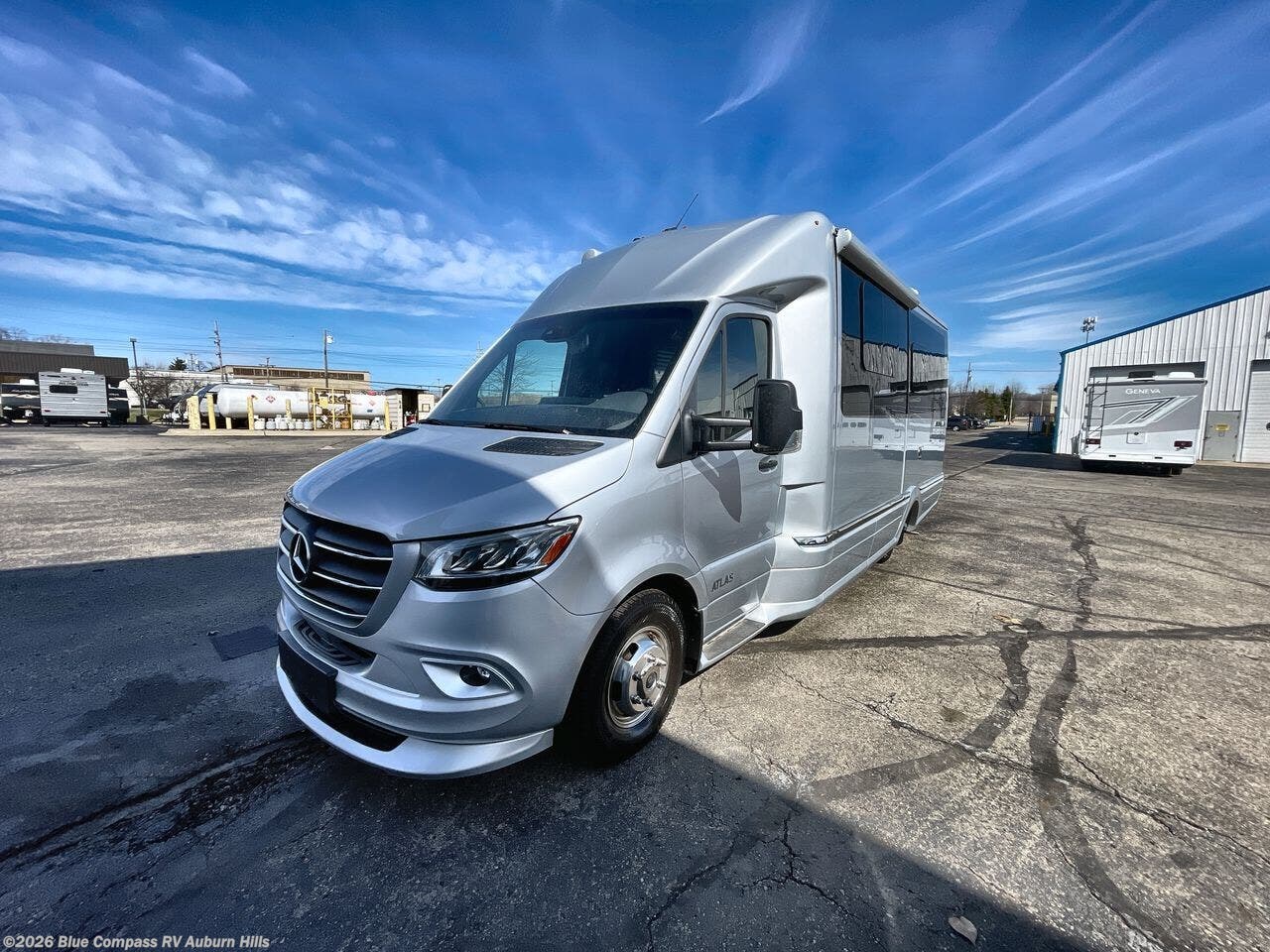 With the Atlas Class B+ diesel motorhome by Airstream, you not only get an enduring Airstream design, conveniences and luxury features, you also get the proven Mercedes-Benz safety systems and performance. The coach is built with Azdel composite roof, floor, and wall material, a vacuum-bonded aluminum framed floor, radius walls, a fiberglass crowned roof for extra headroom, trimless smooth fiberglass body seams, and molded fiberglass front and rear caps. The main cabin offers adjustable LED lighting, flush-mount cabinet hardware and soft close doors, a Froli ergonomic bed support system for a good night's sleep, Ultraleather seating, USB charging ports for your electronics, marine woven synthetic flooring, and matte finish laminate cabinetry to mention a few highlights. When you are wanting quality and craftmanship, and a well-traveled life, choose the Atlas and never turn back!