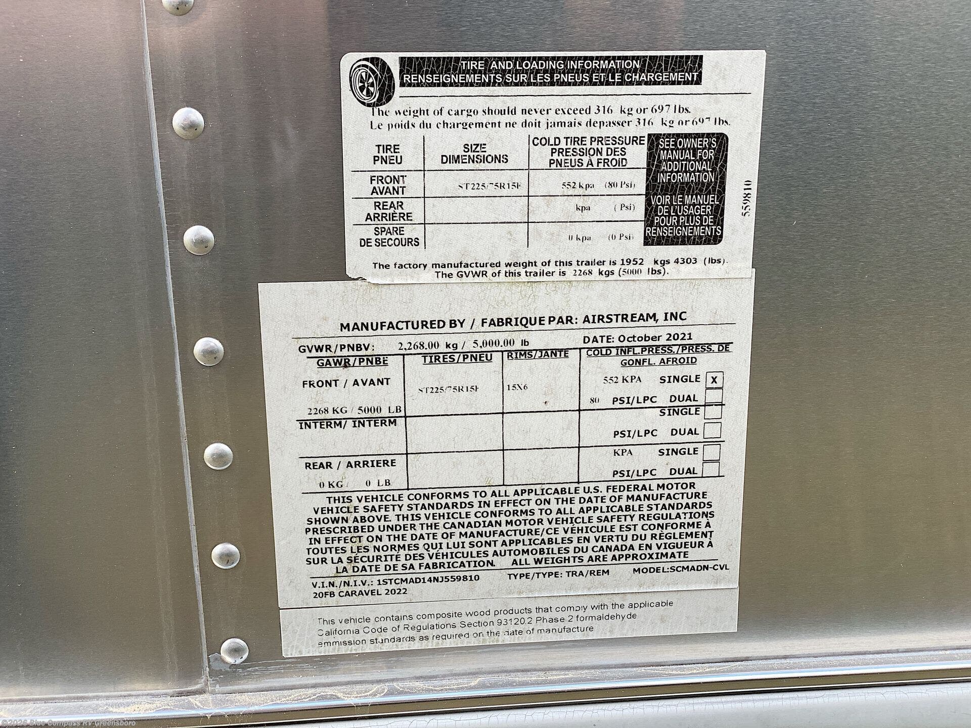 2022 Airstream Caravel 20FB Specifications