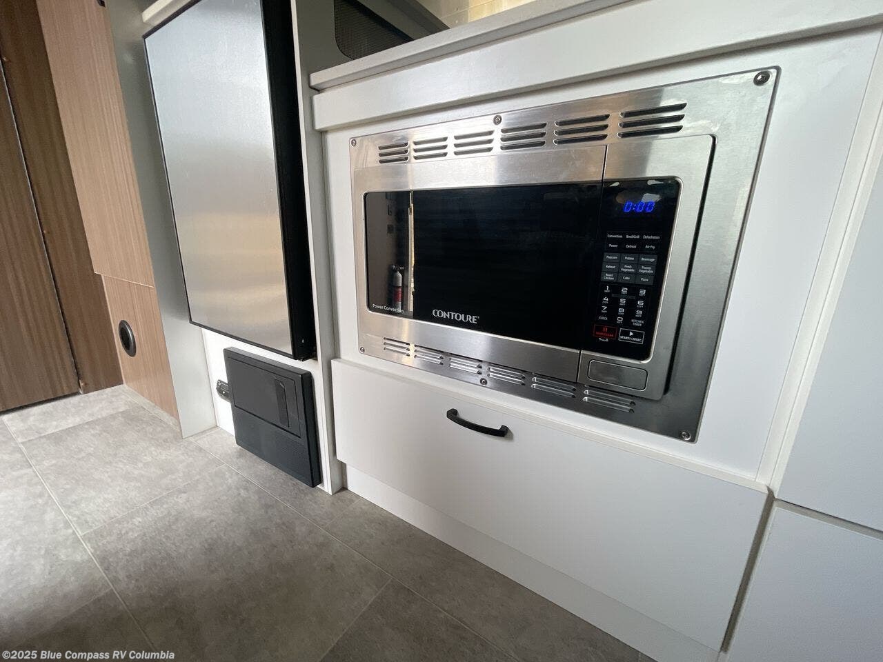 You'll always have a stylish and comfortable place to stay with the Airstream Caravel travel trailer! The manual Zip Dee patio awning is made of a performance Sunbrella fabric, and there are matching optional window awnings that can help keep the interior cool and private. The rear bumper storage will help you keep your tools, cords, and more hidden away in a bonus storage space, and the JL stereo with Bluetooth, surround sound, and subwoofer will play your music throughout the trailer. If you add the optional 90W rooftop solar package, you can stay powered while off the grid, and the blackout curtains will let you have privacy when you head to bed. The stainless steel front stone guard protection will prevent damage to the body of your trailer while towing, and the panoramic windows will make the interior fresh and bright with natural sunlight.