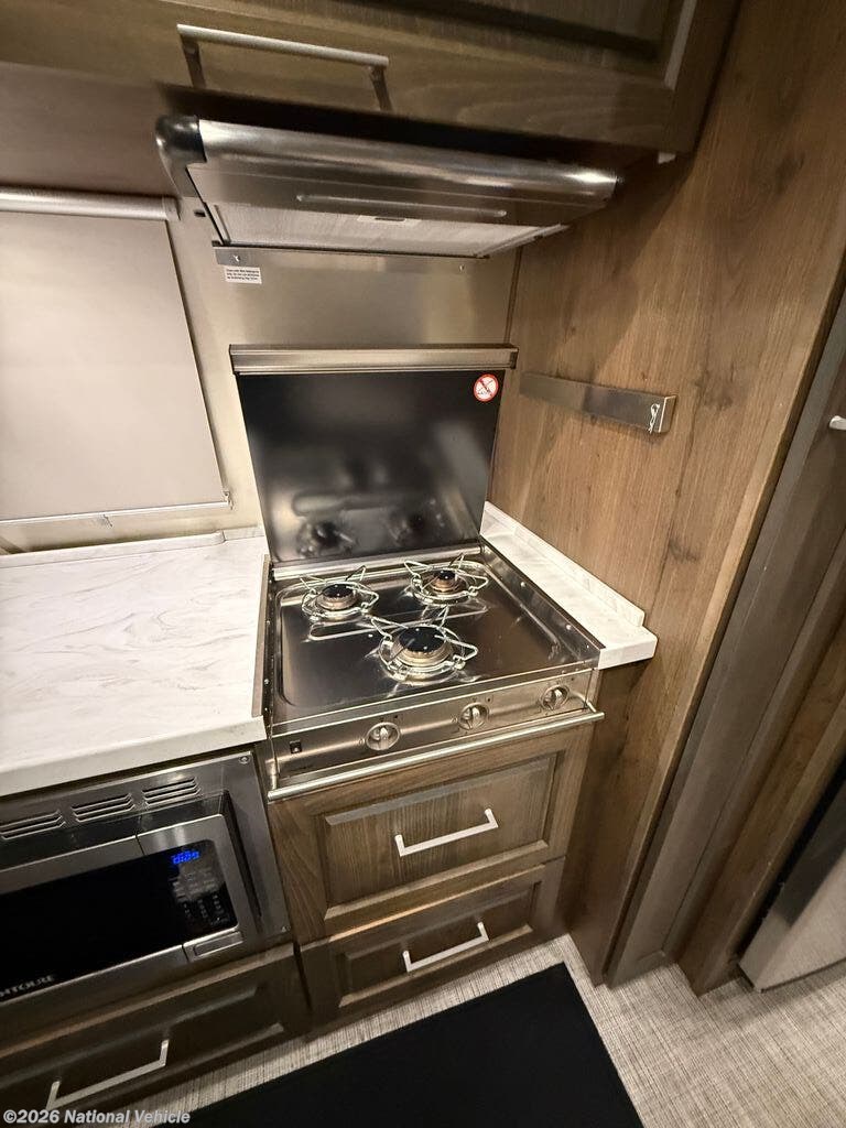 3-burner stainless cooktop/oven and a convection microwave.